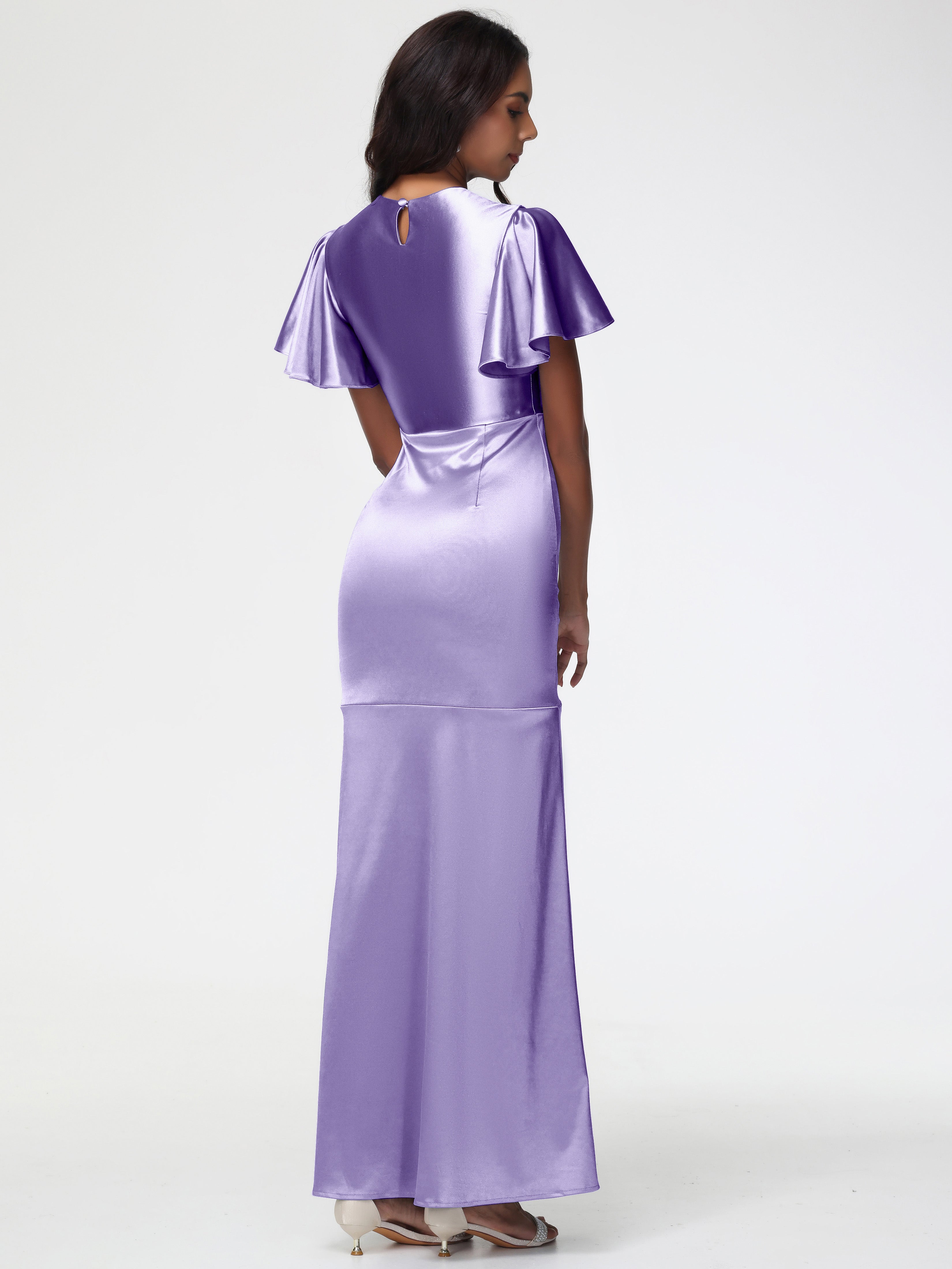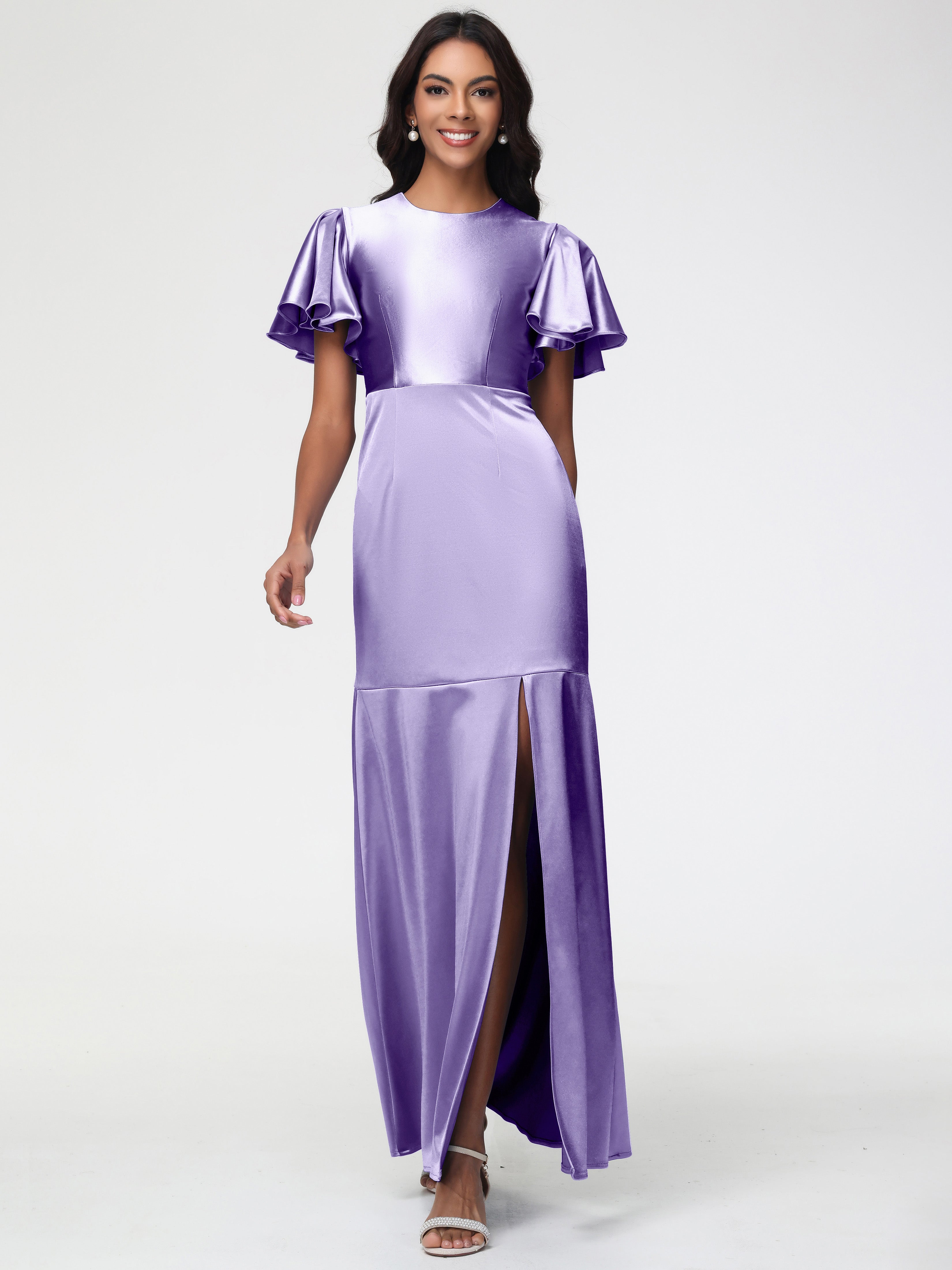 Tahiti Bridesmaid Dress Short Sleeves Trumpet/Mermaid Zipper Split Long Stretch Satin Bridesmaid Dresses