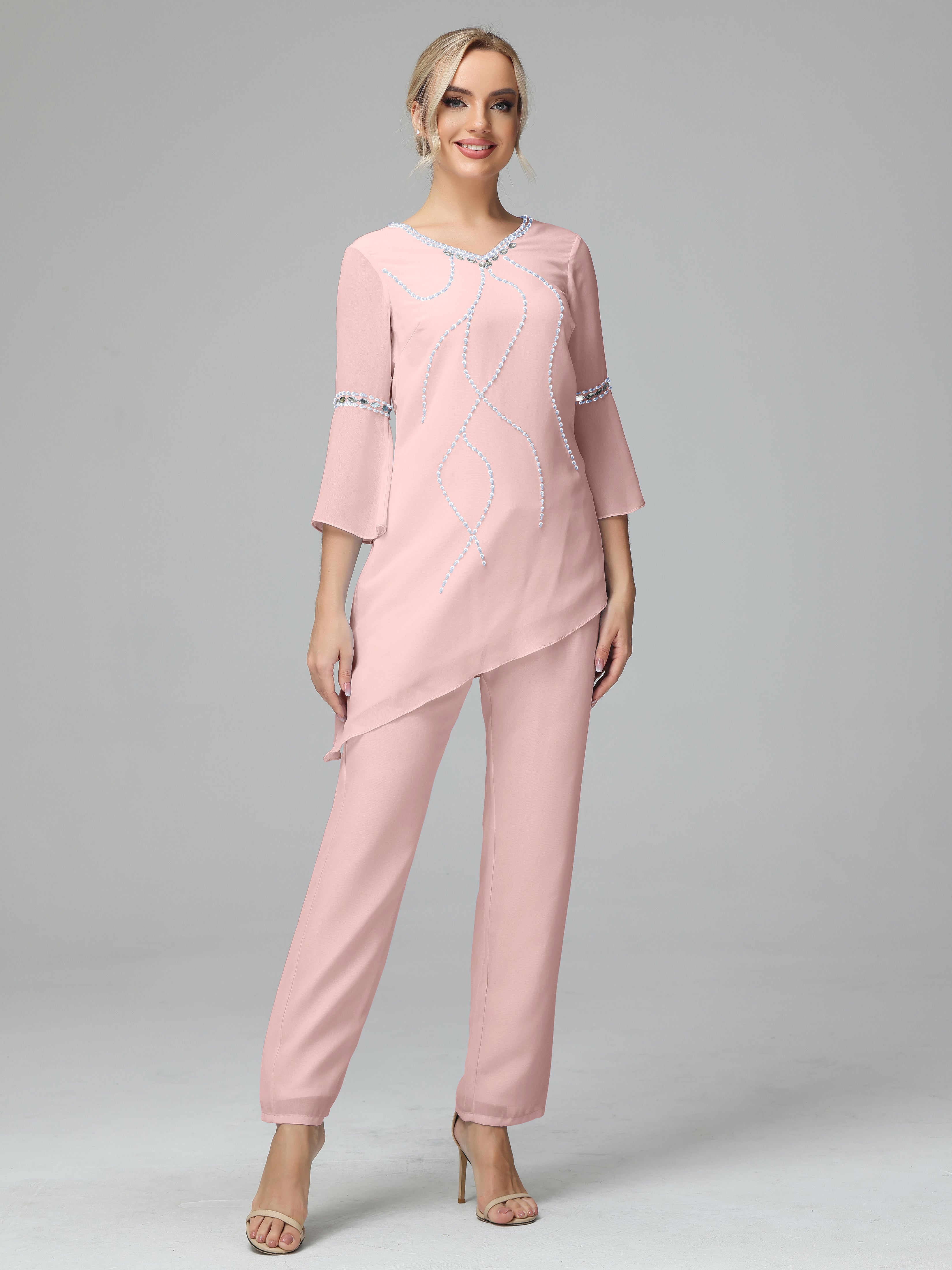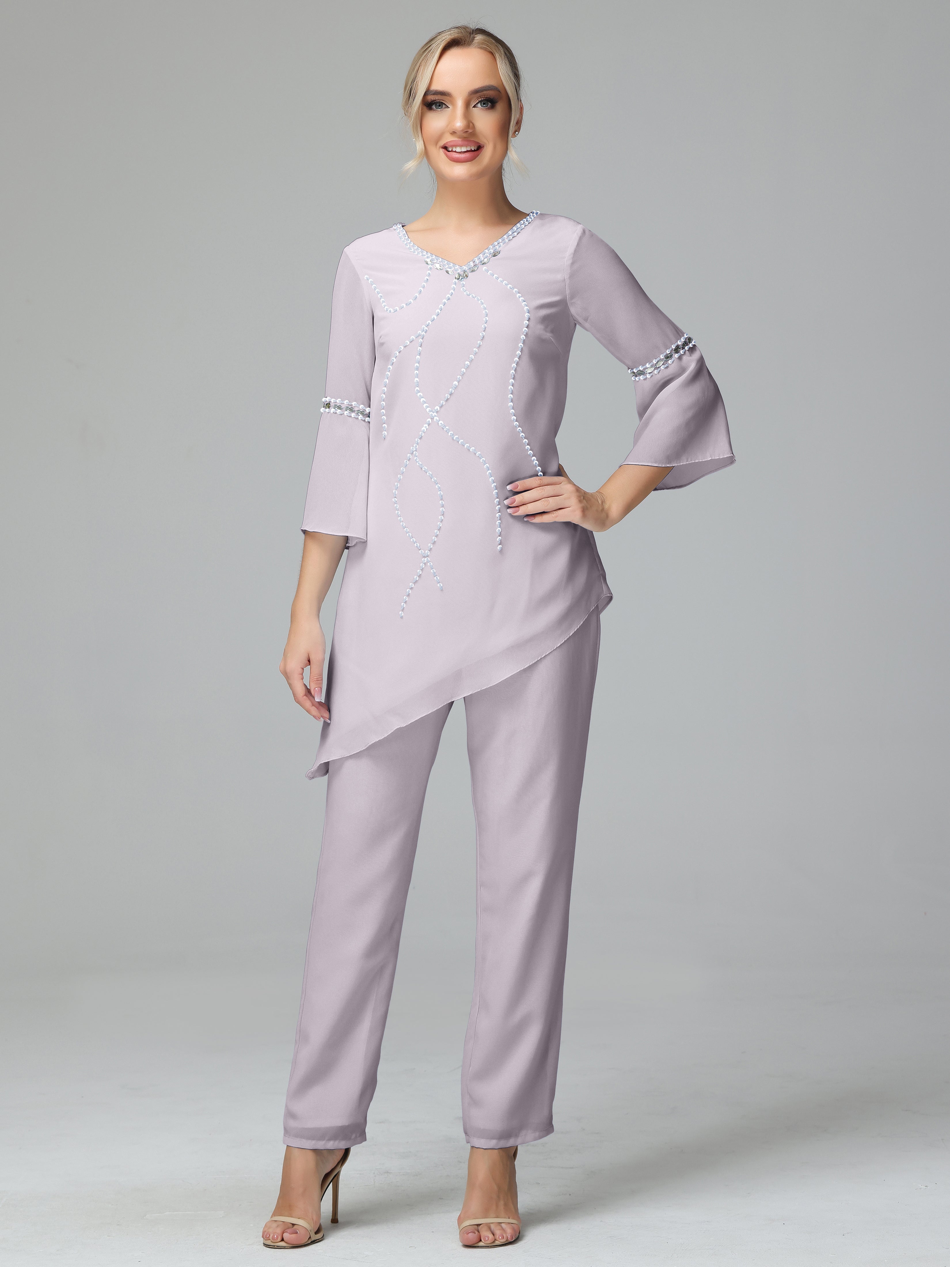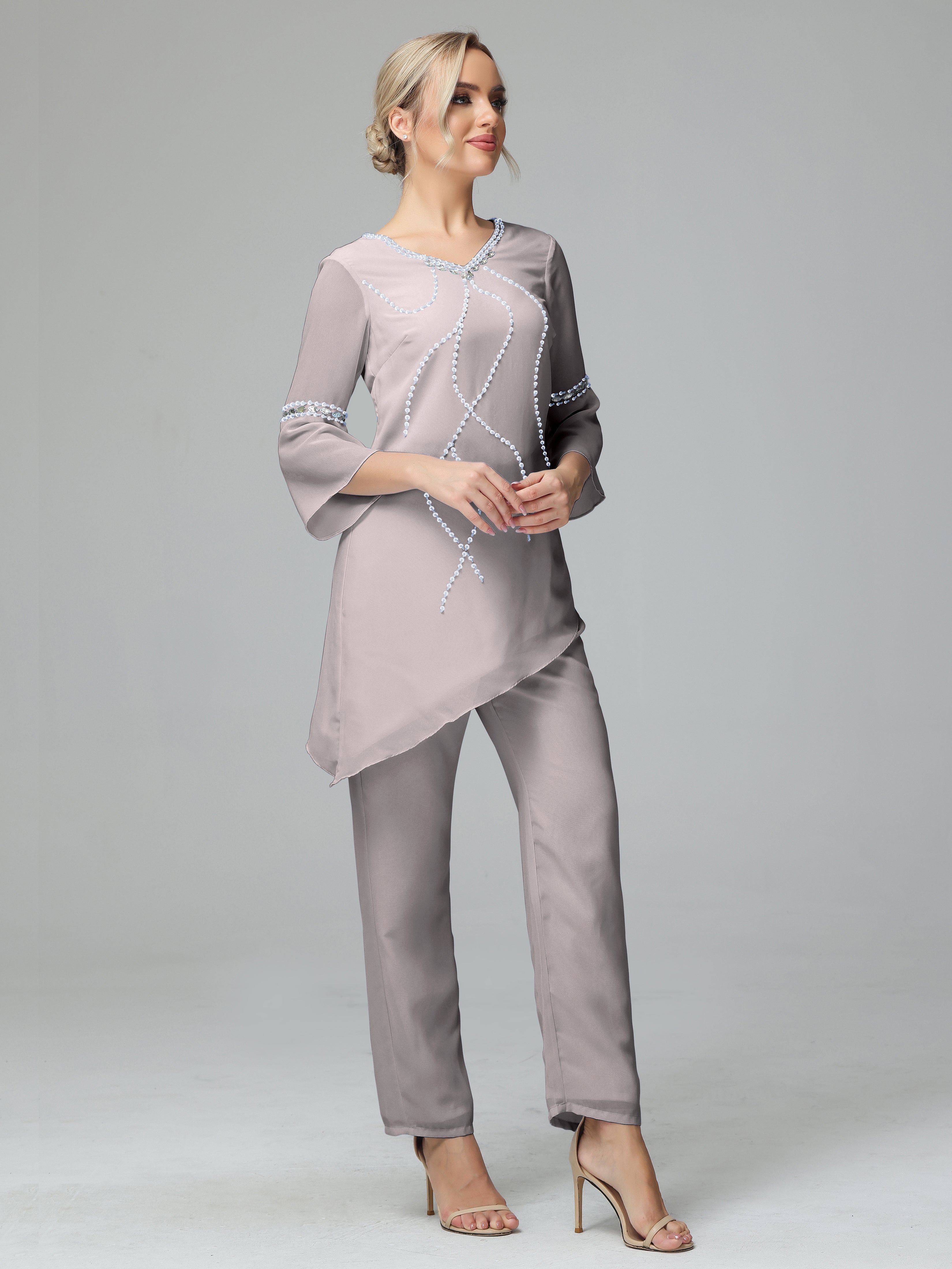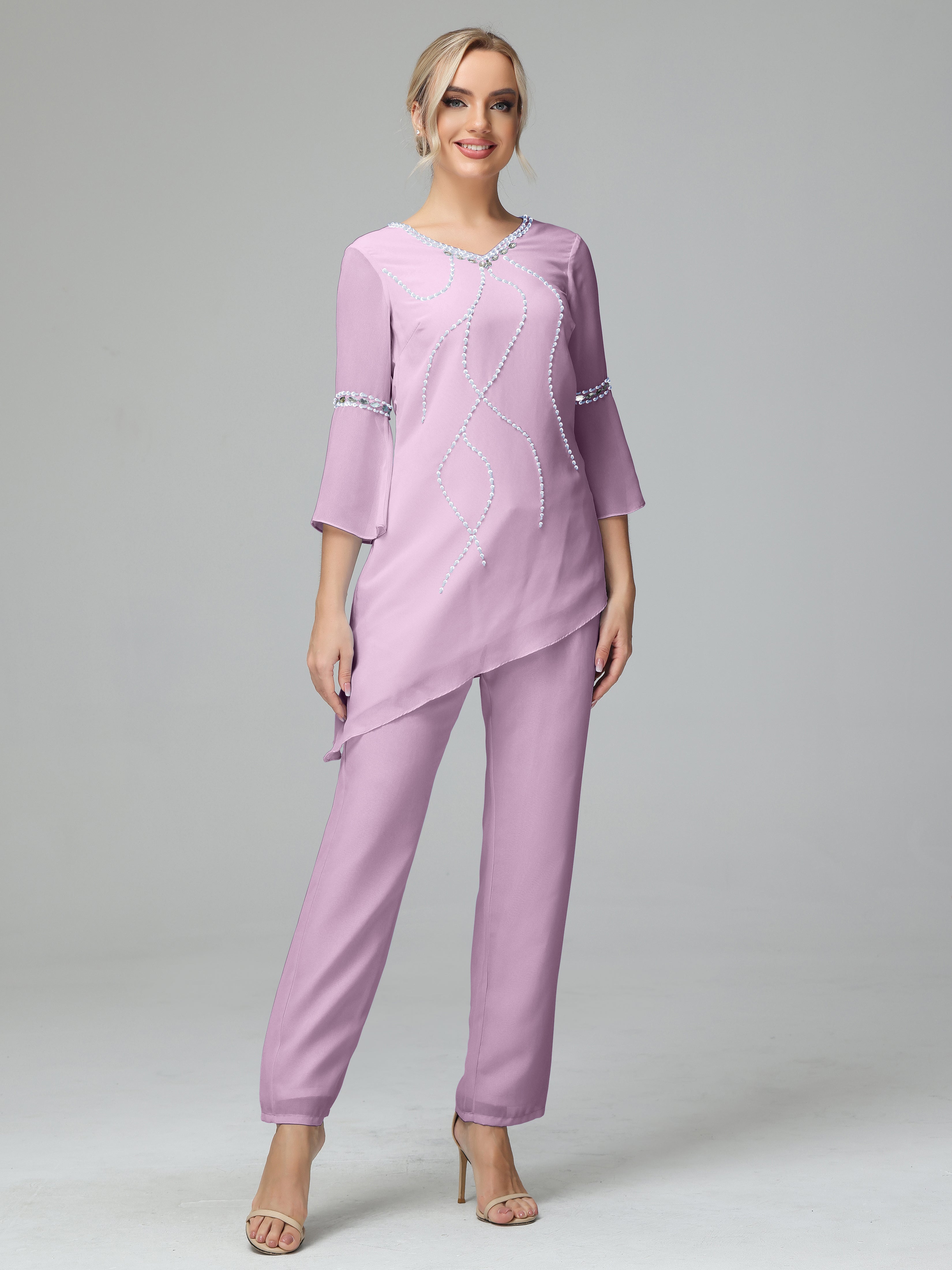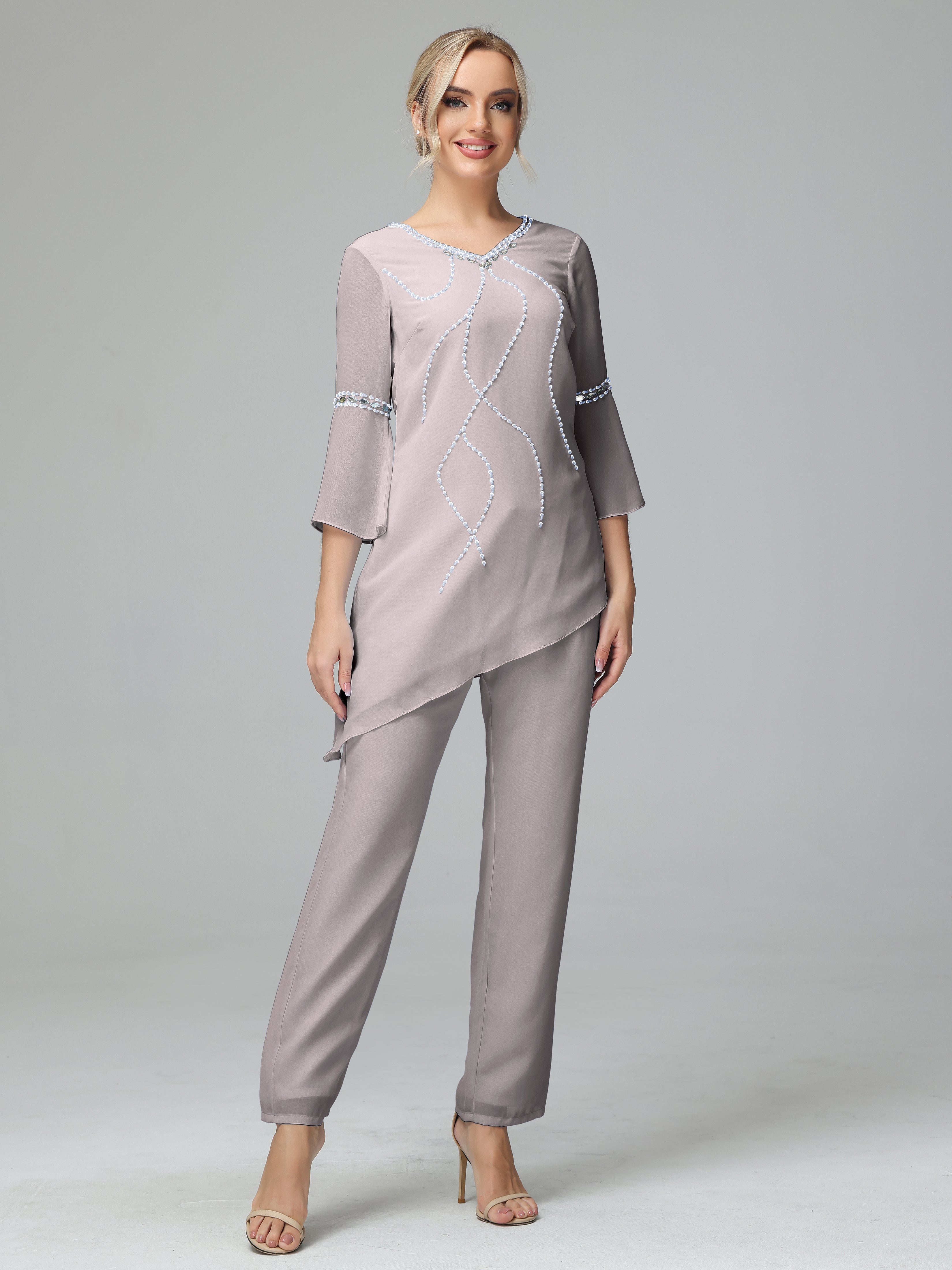 V-Neck Chiffon Mother of the Bride Dress With Beading