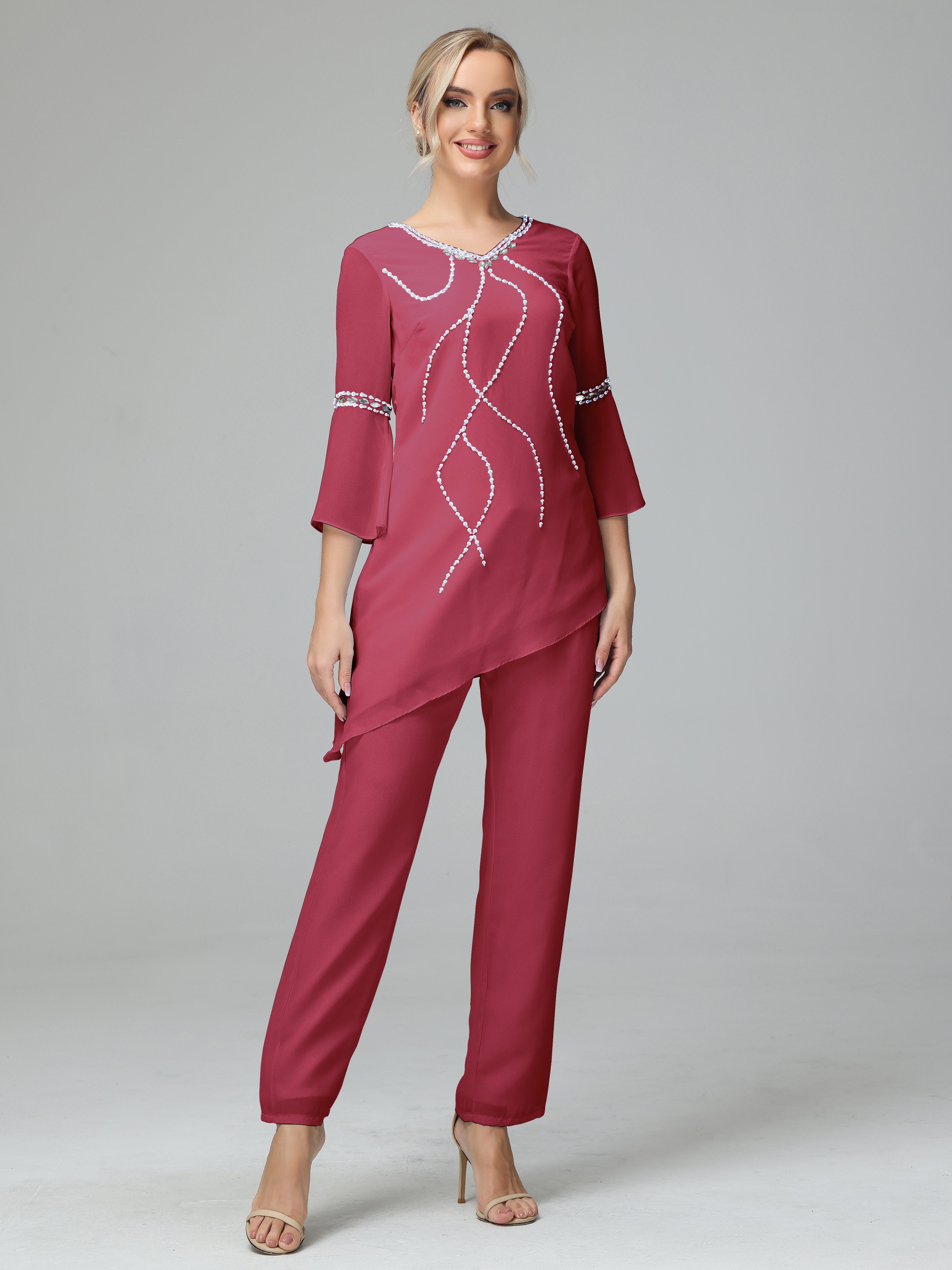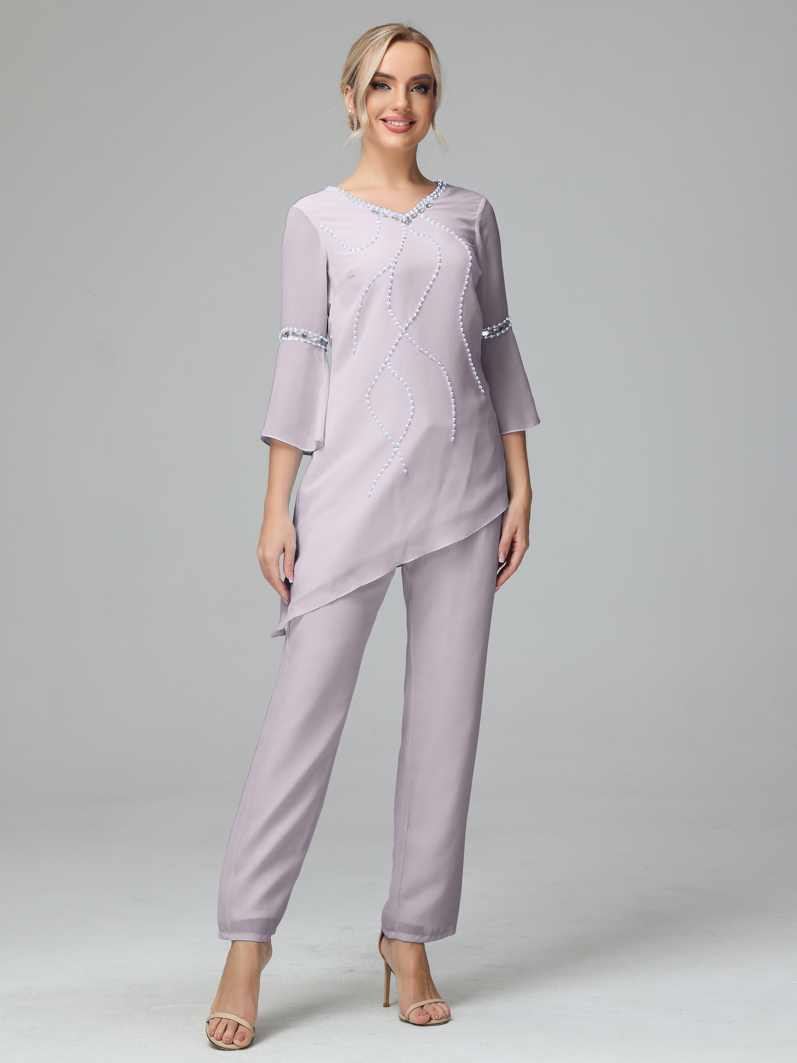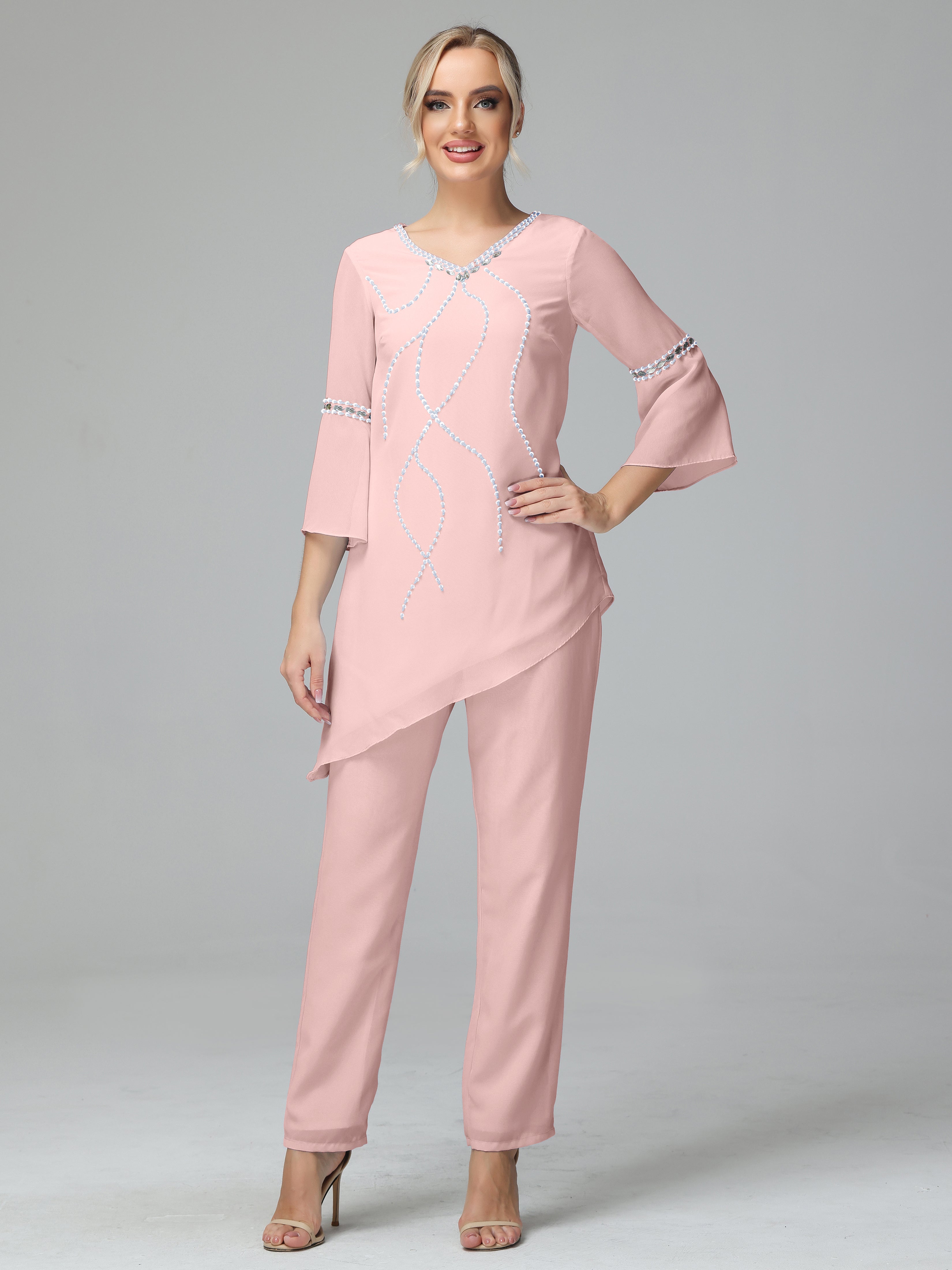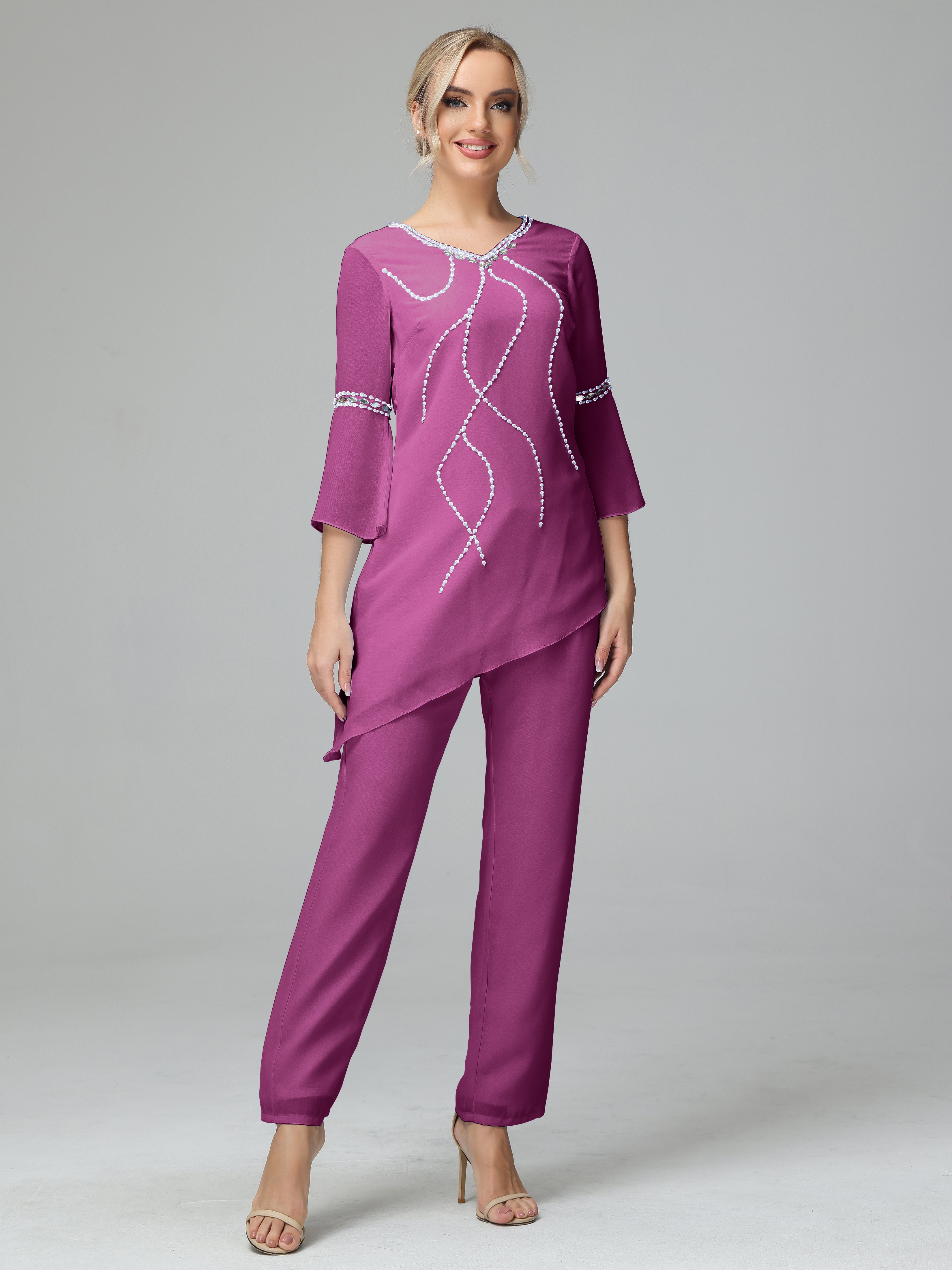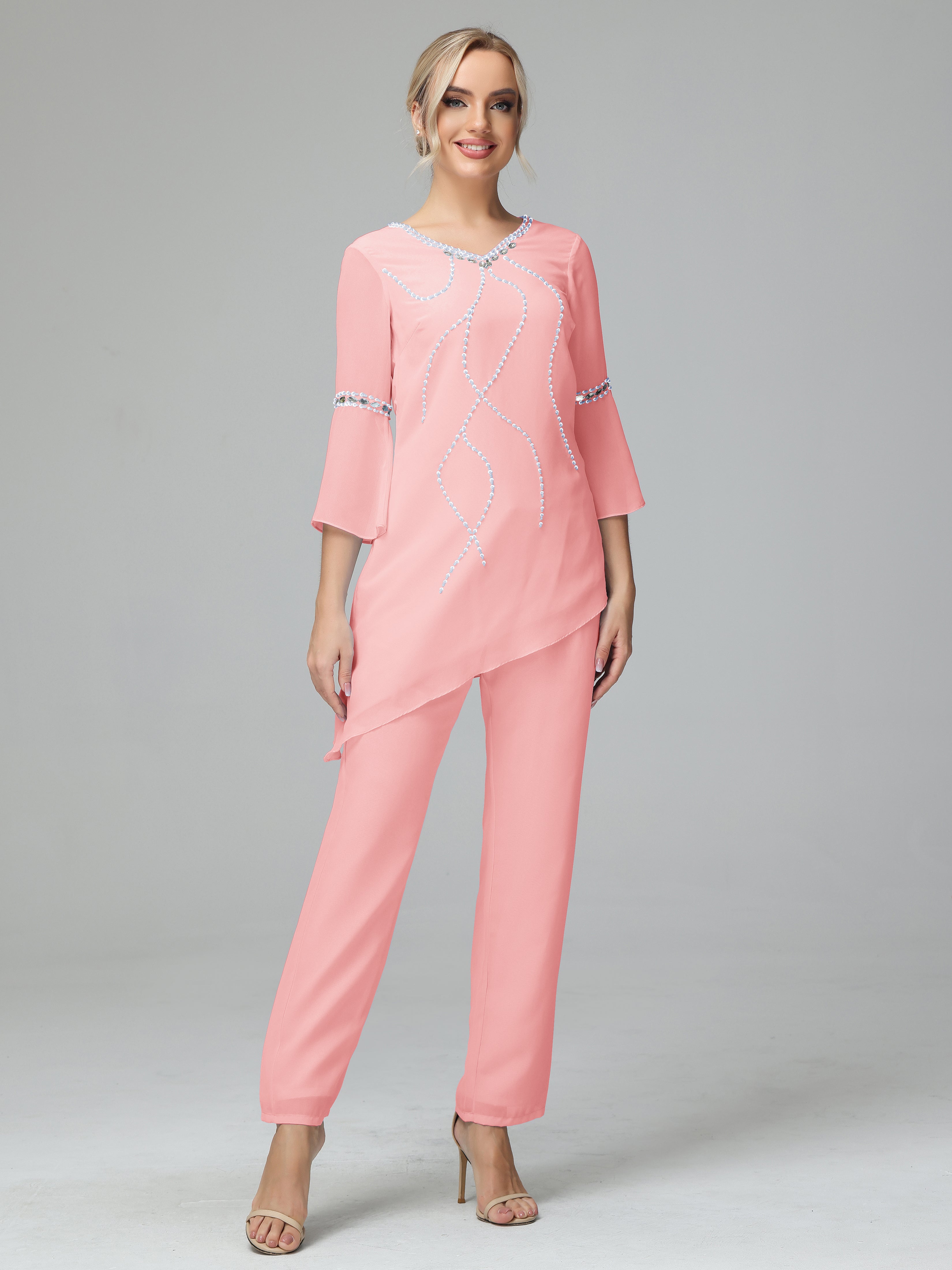 V-Neck Chiffon Mother of the Bride Dress With Beading