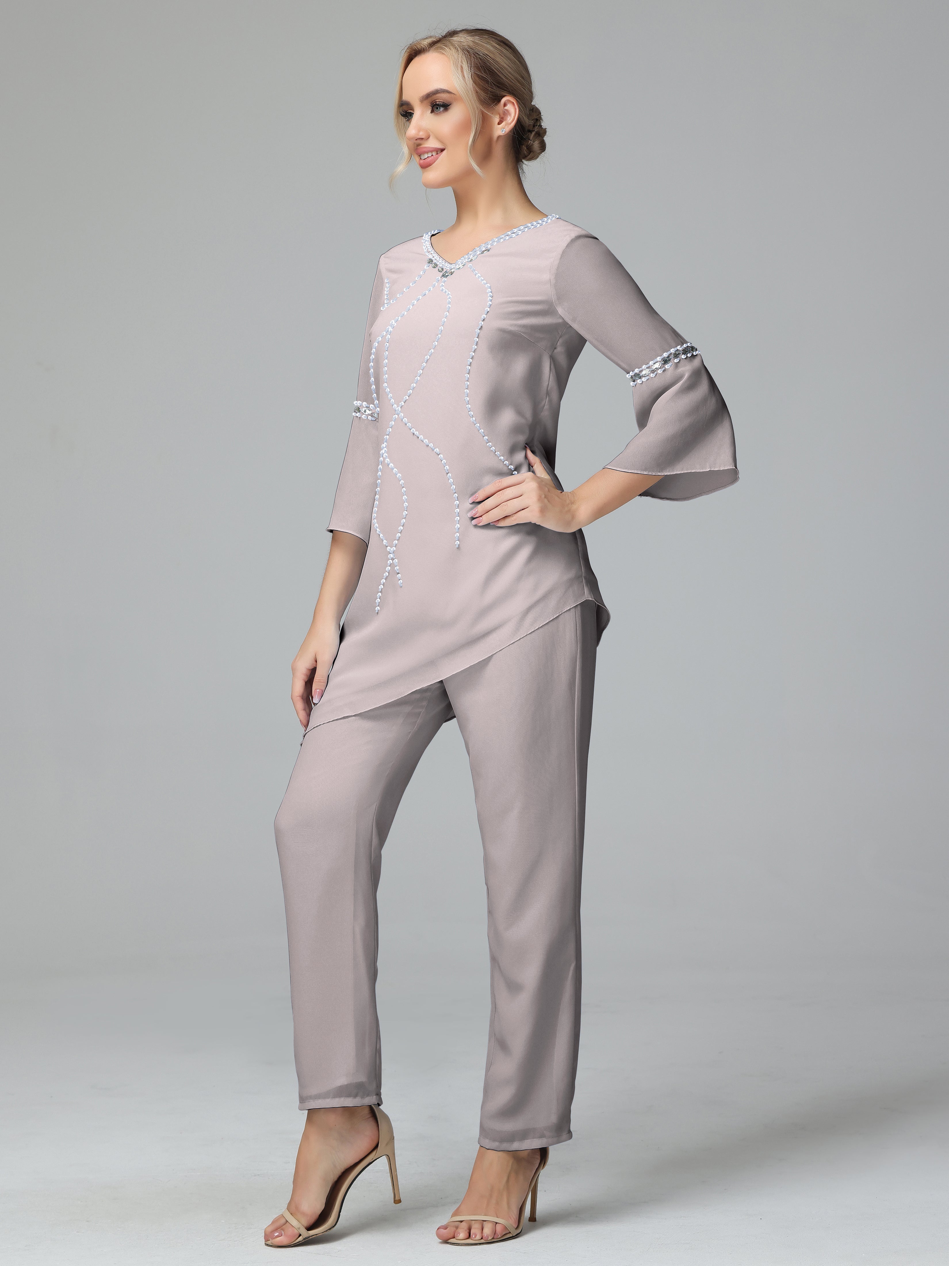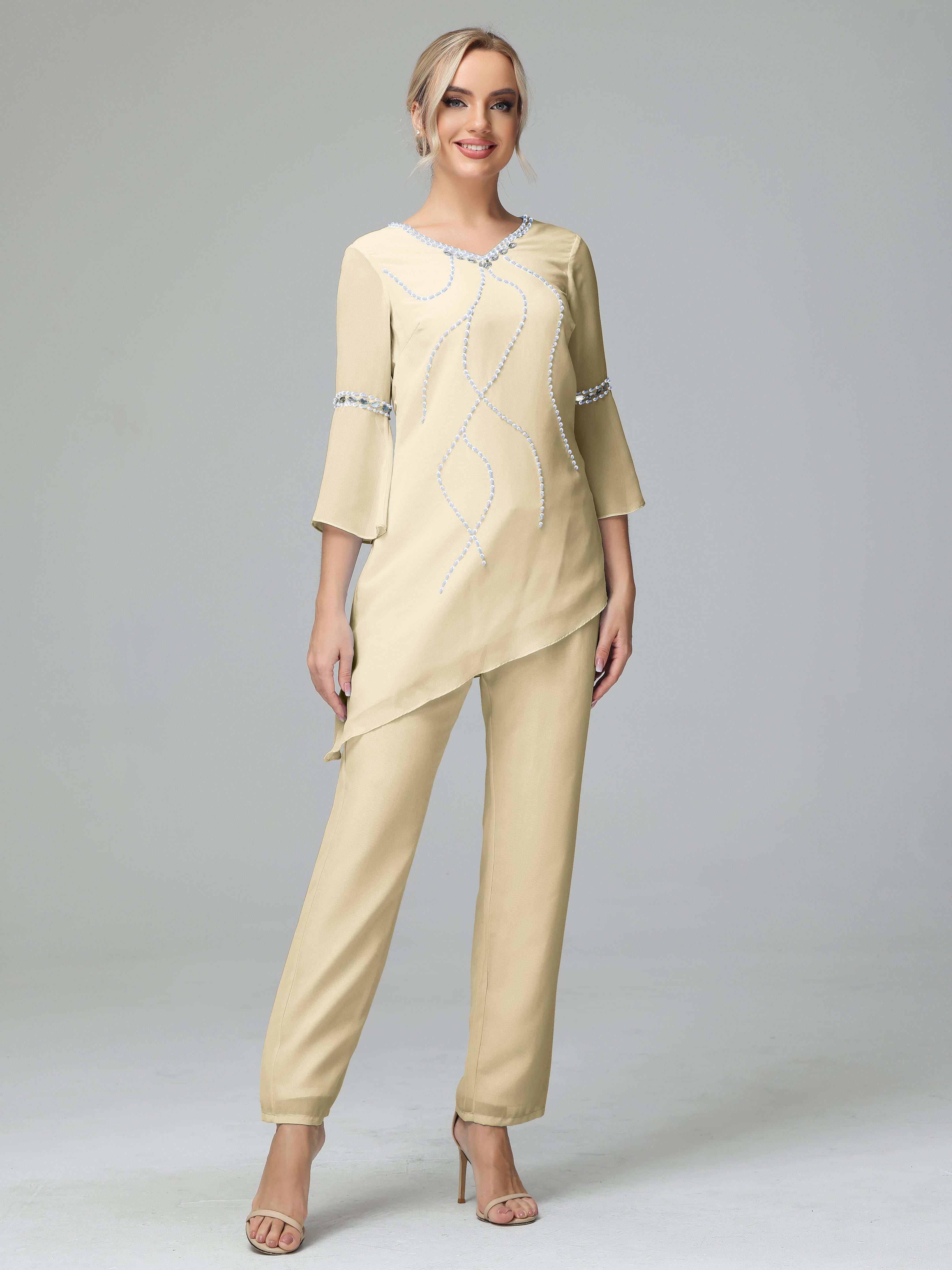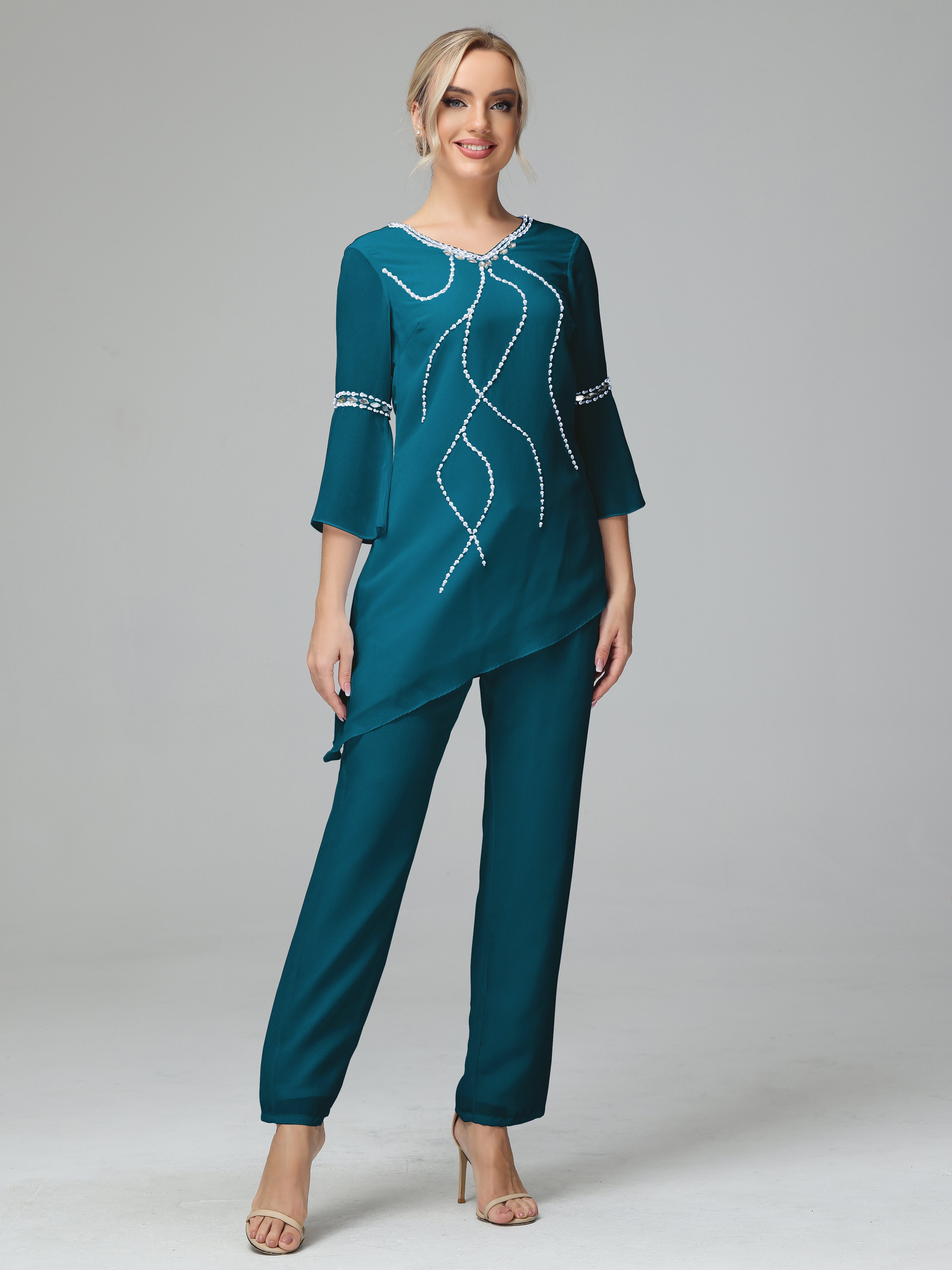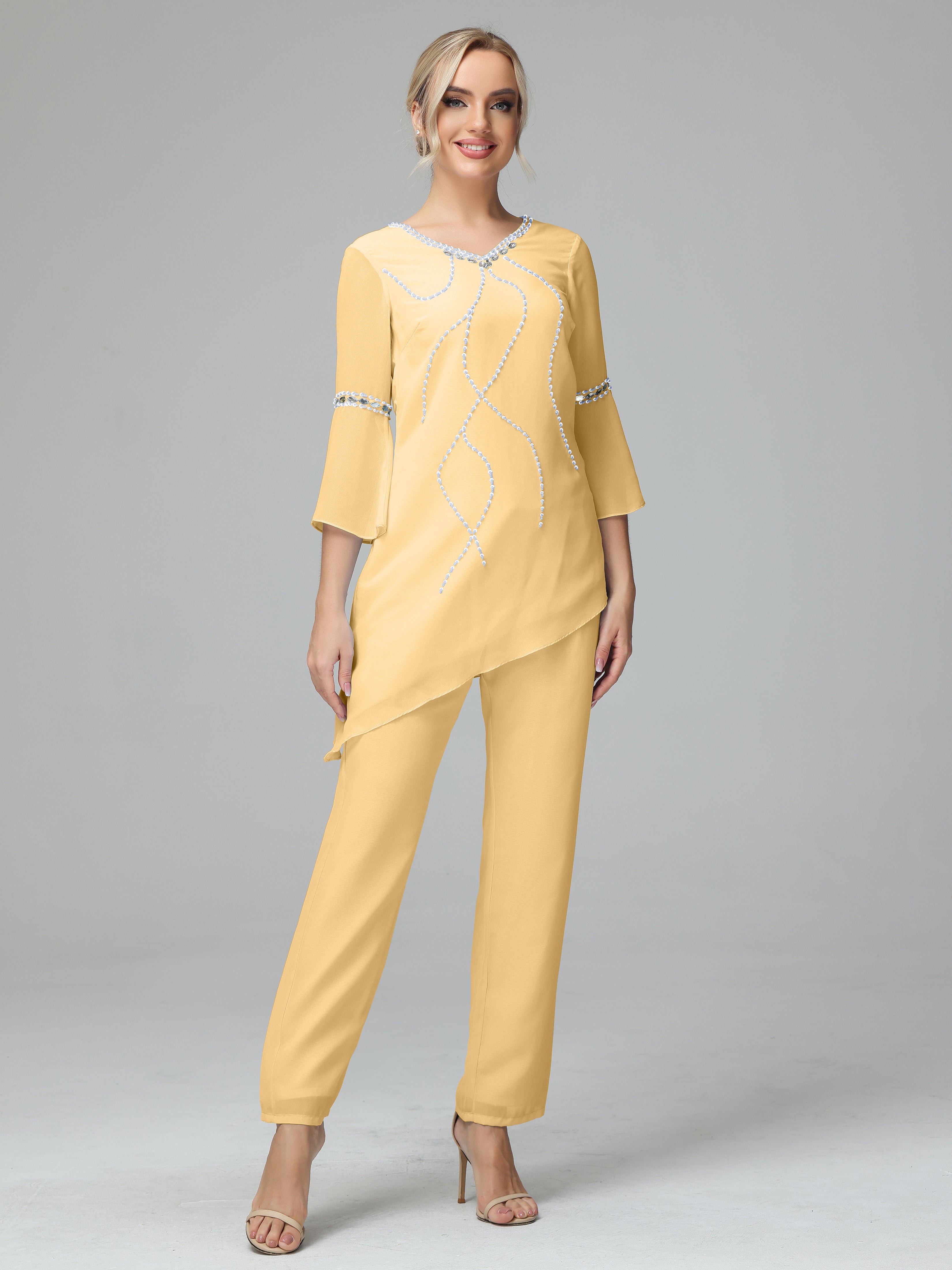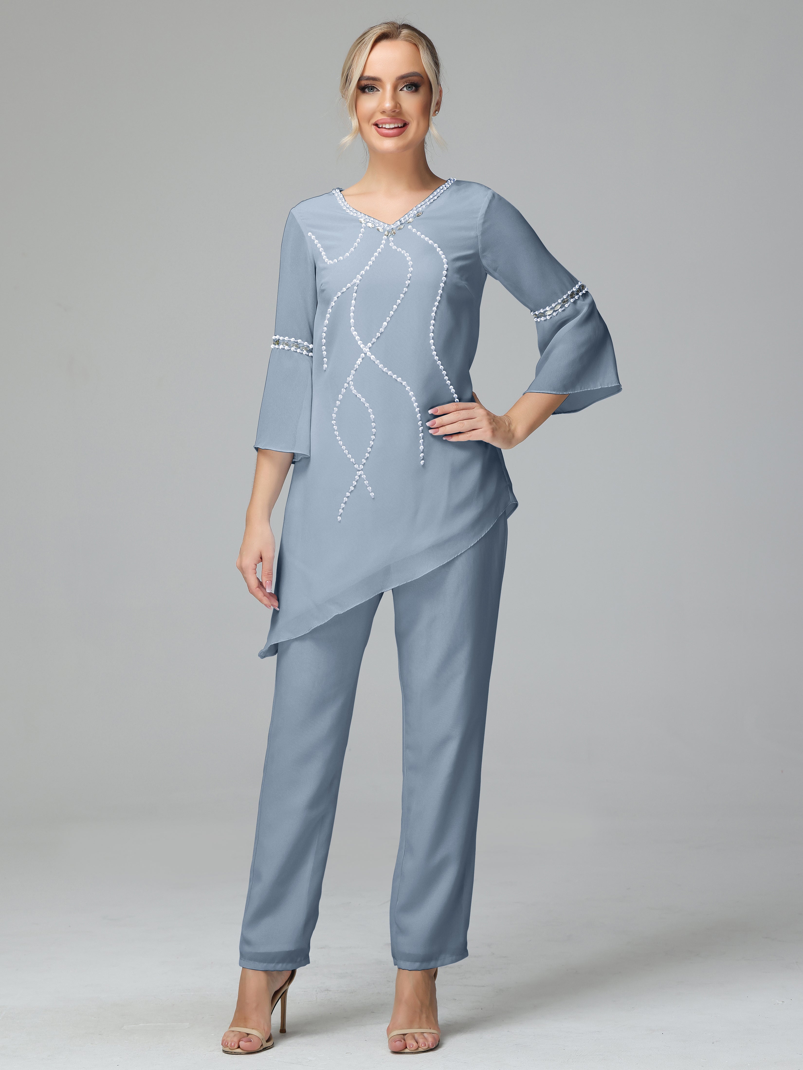 V-Neck Chiffon Mother of the Bride Dress With Beading