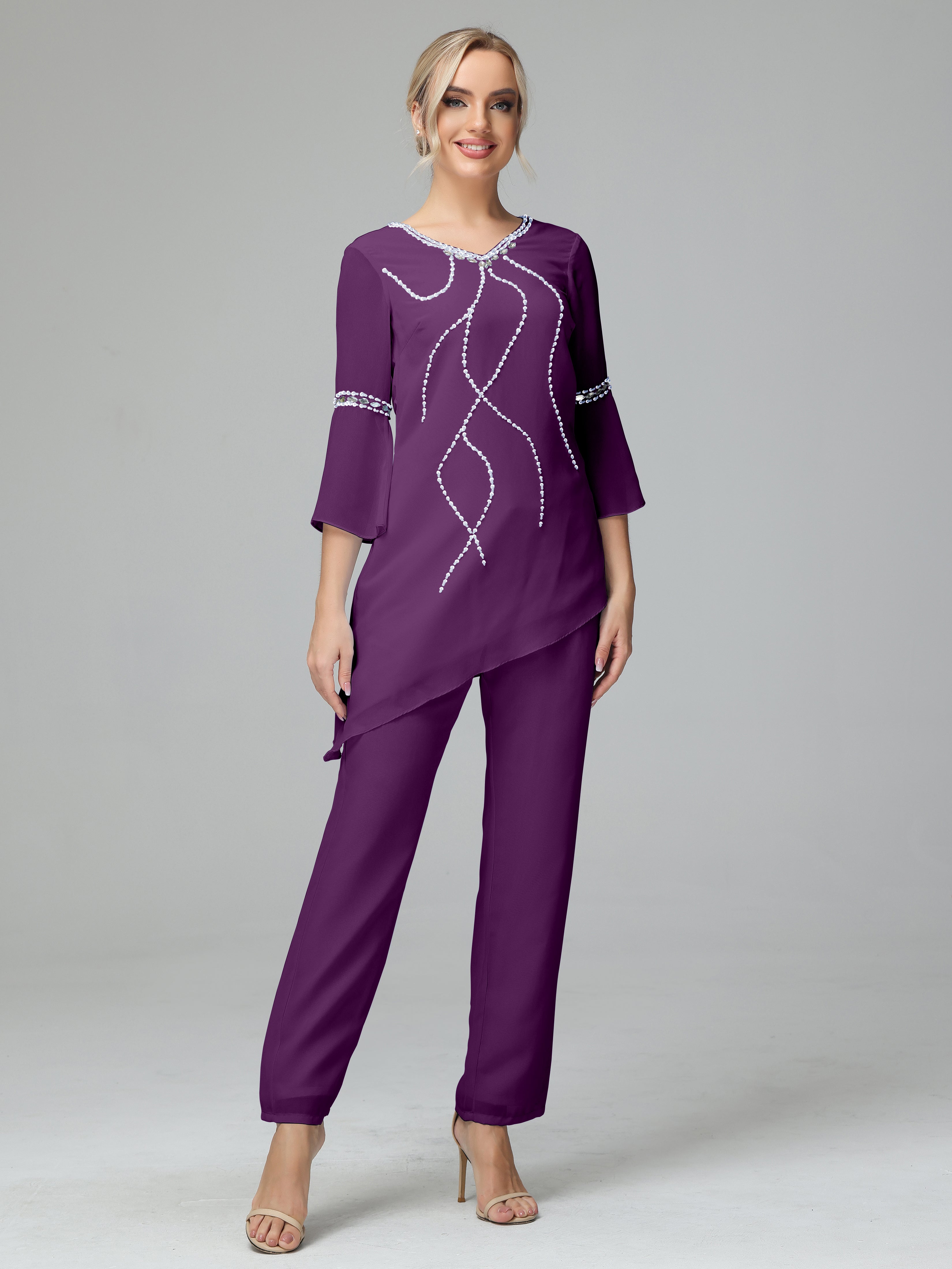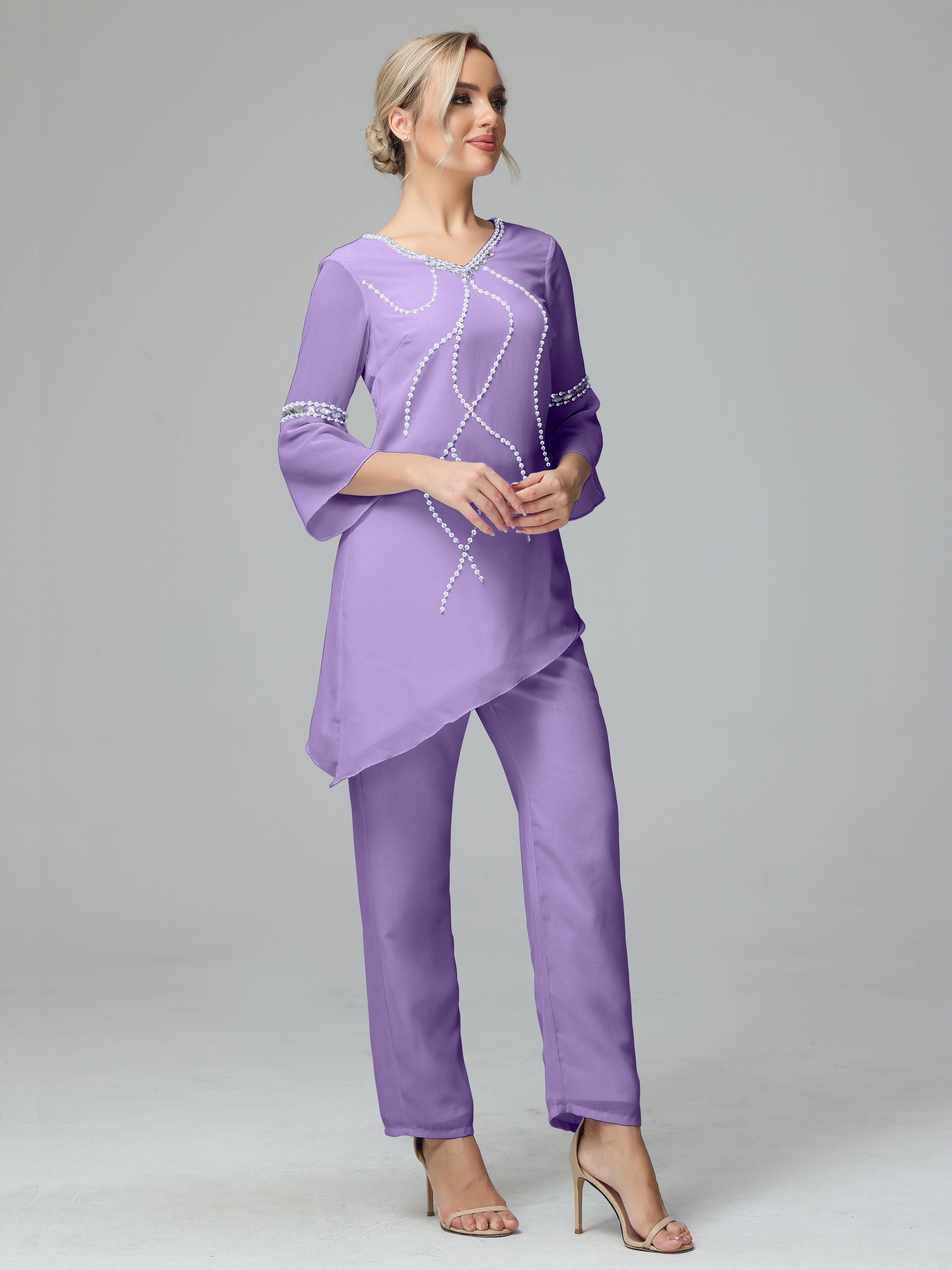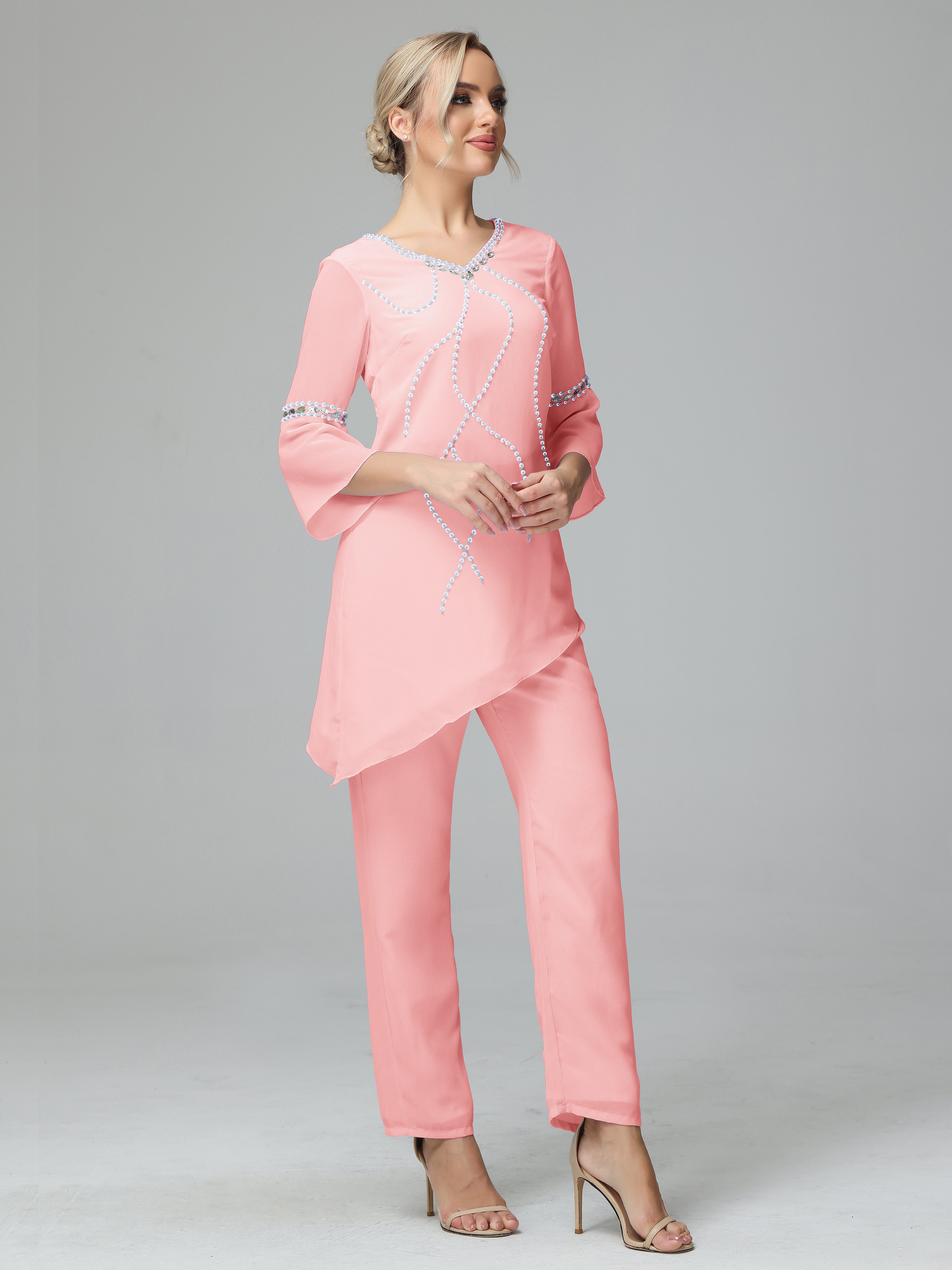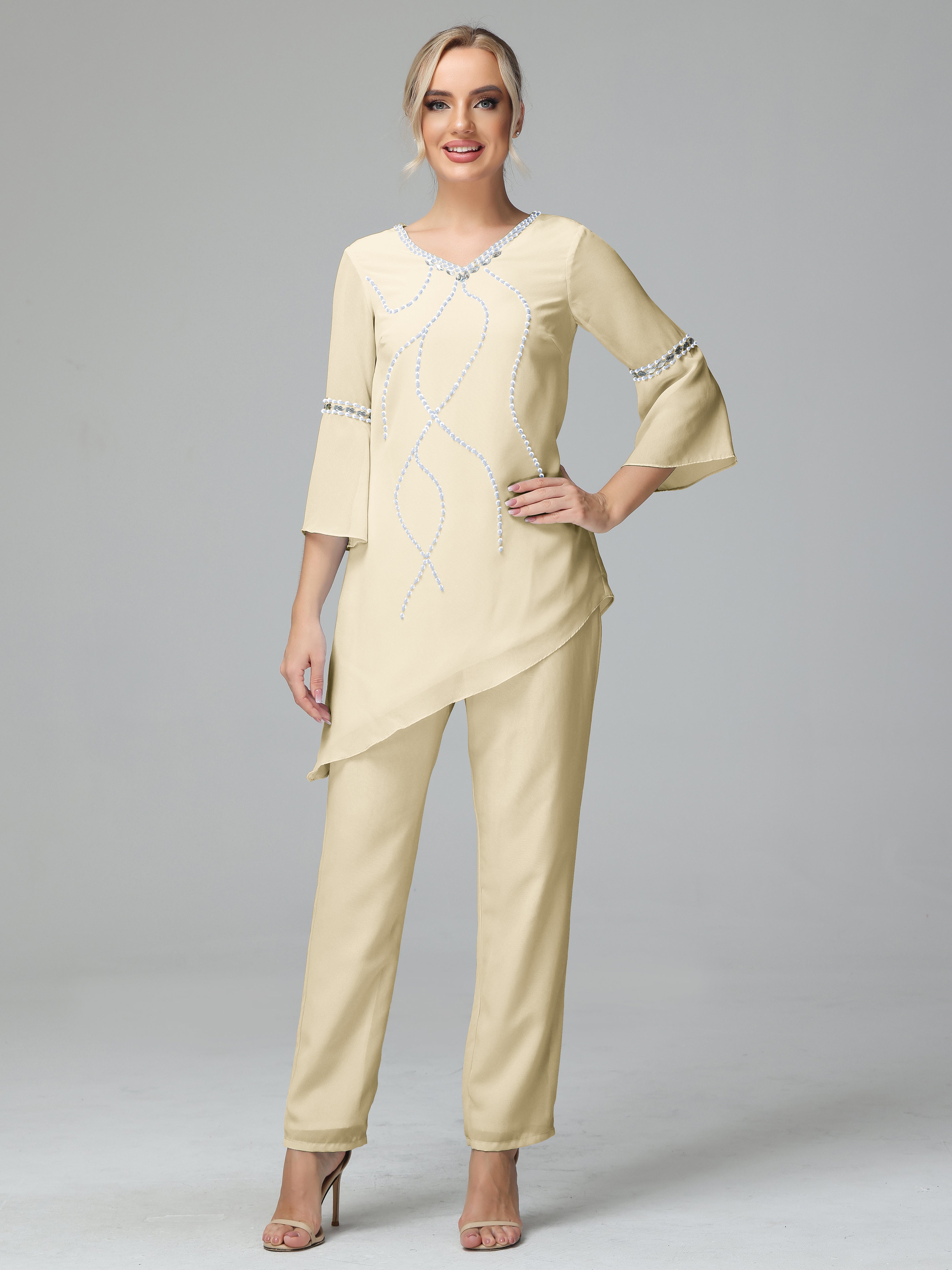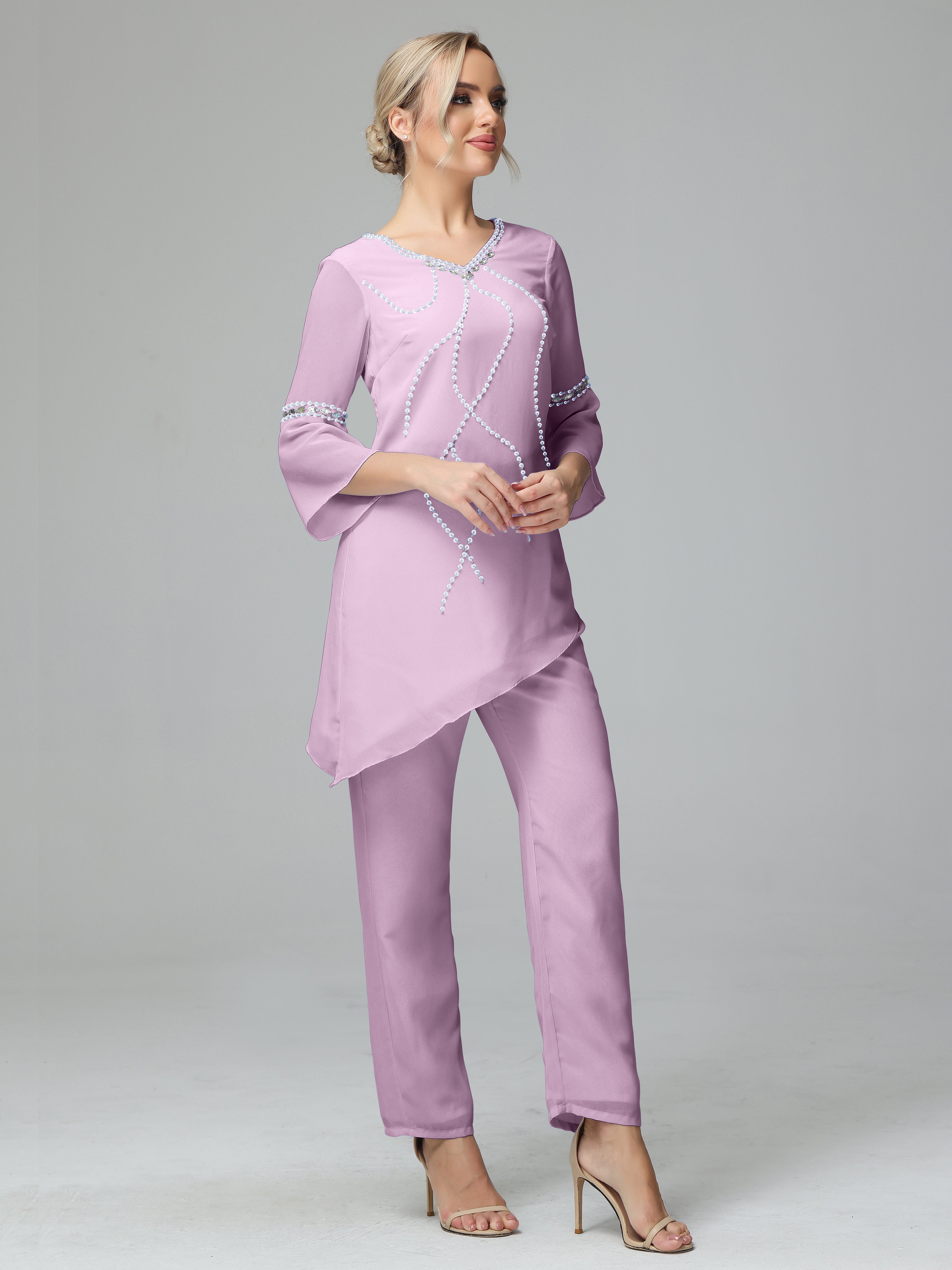 V-Neck Chiffon Mother of the Bride Dress With Beading