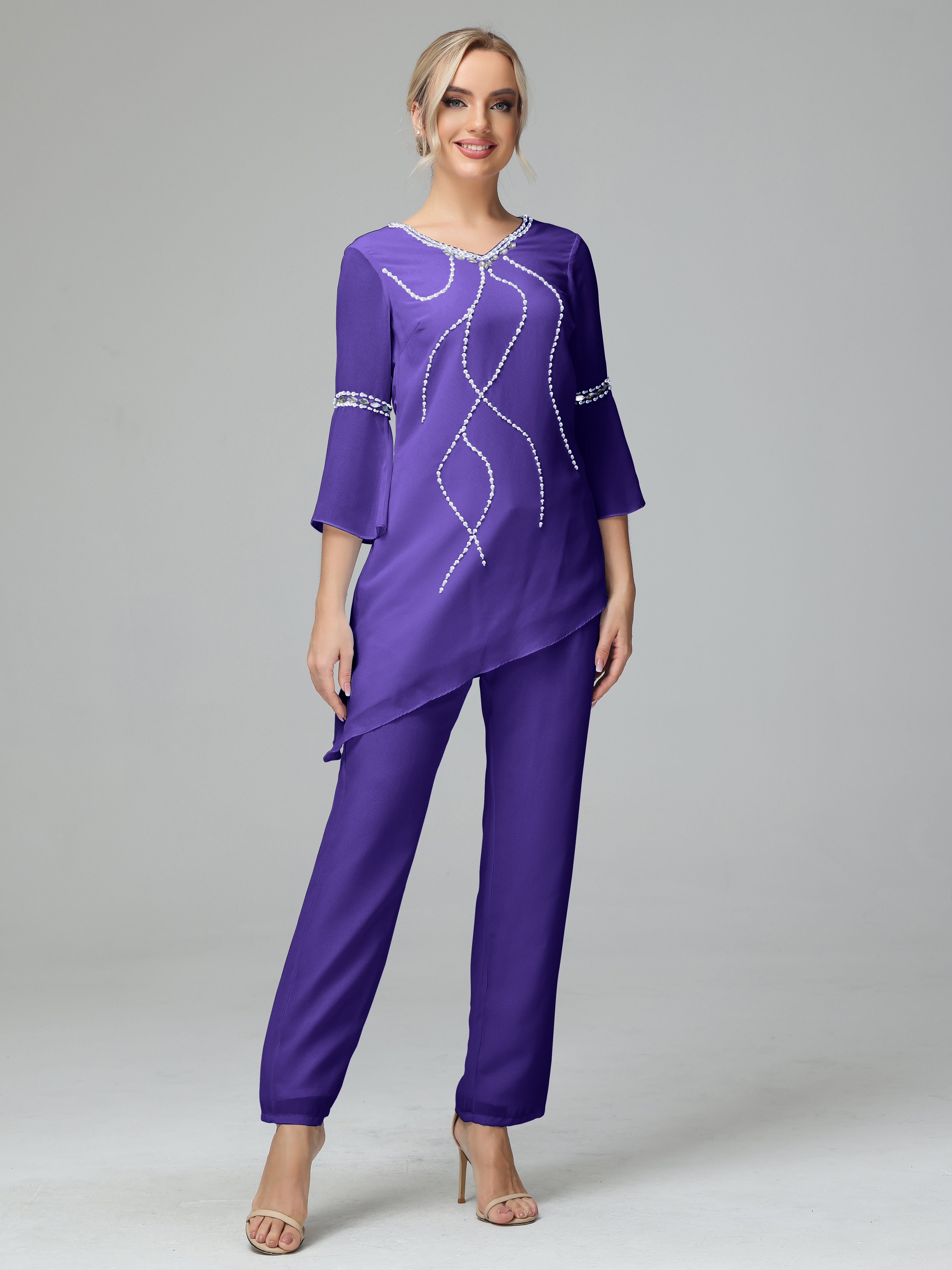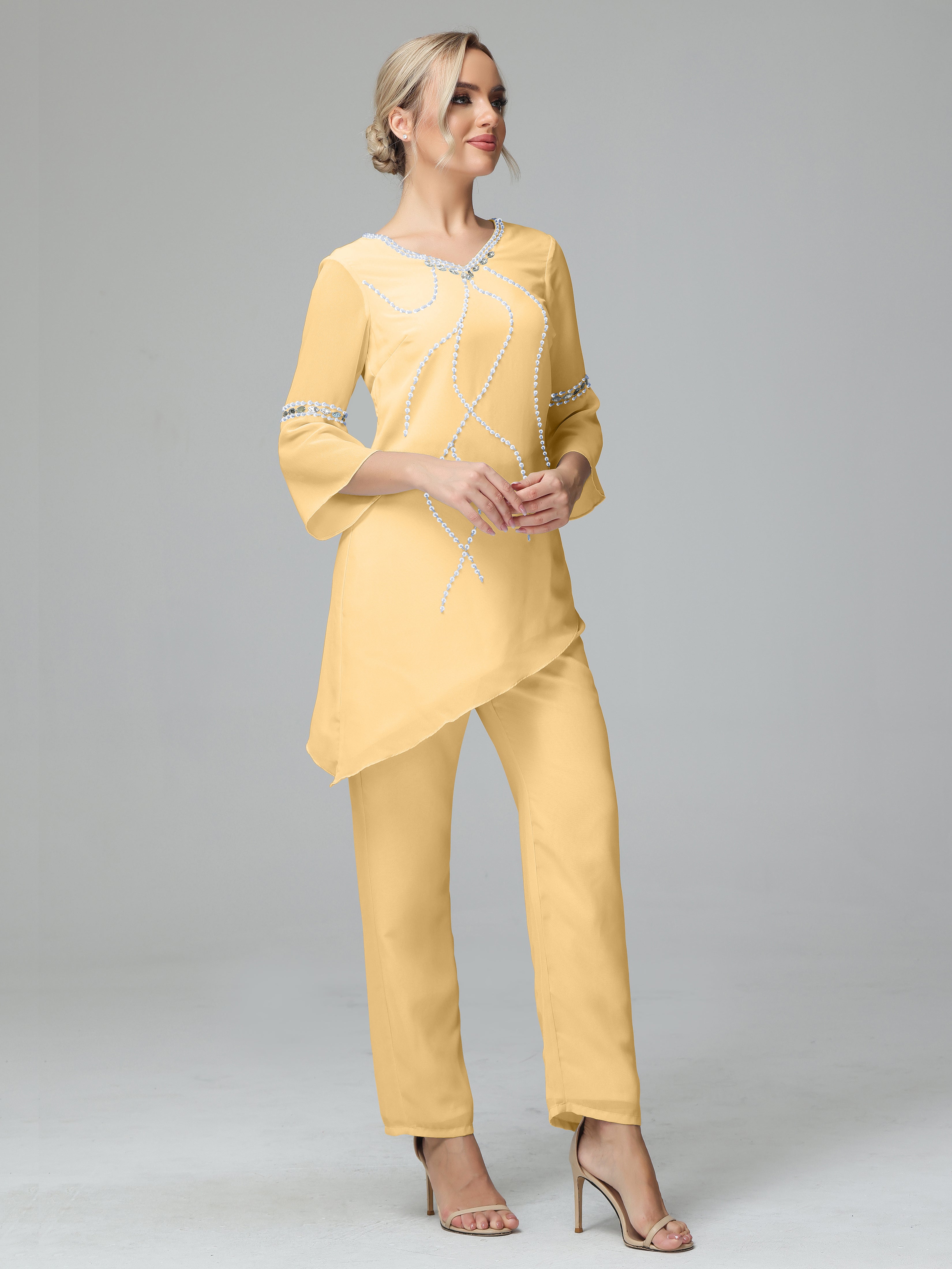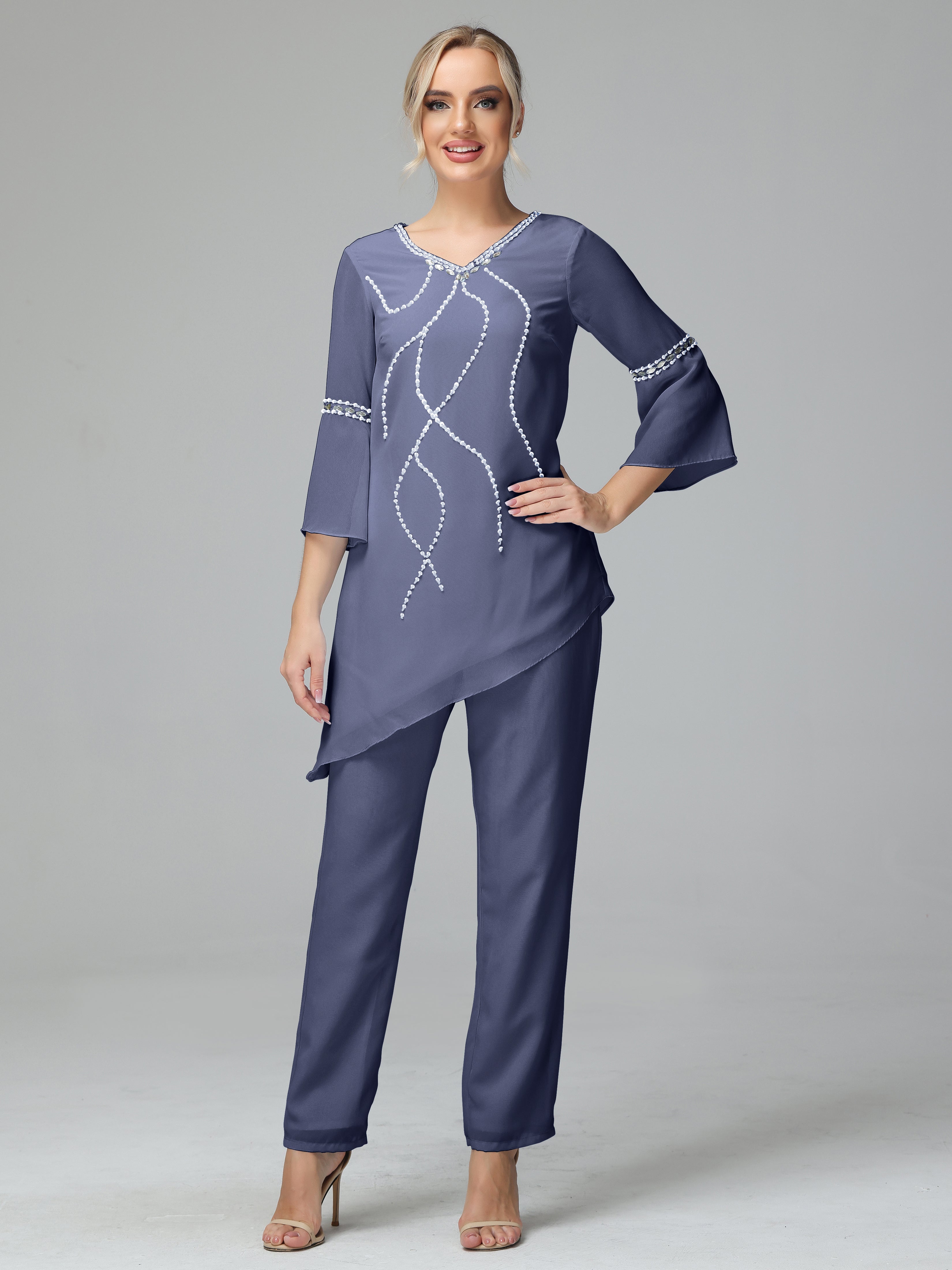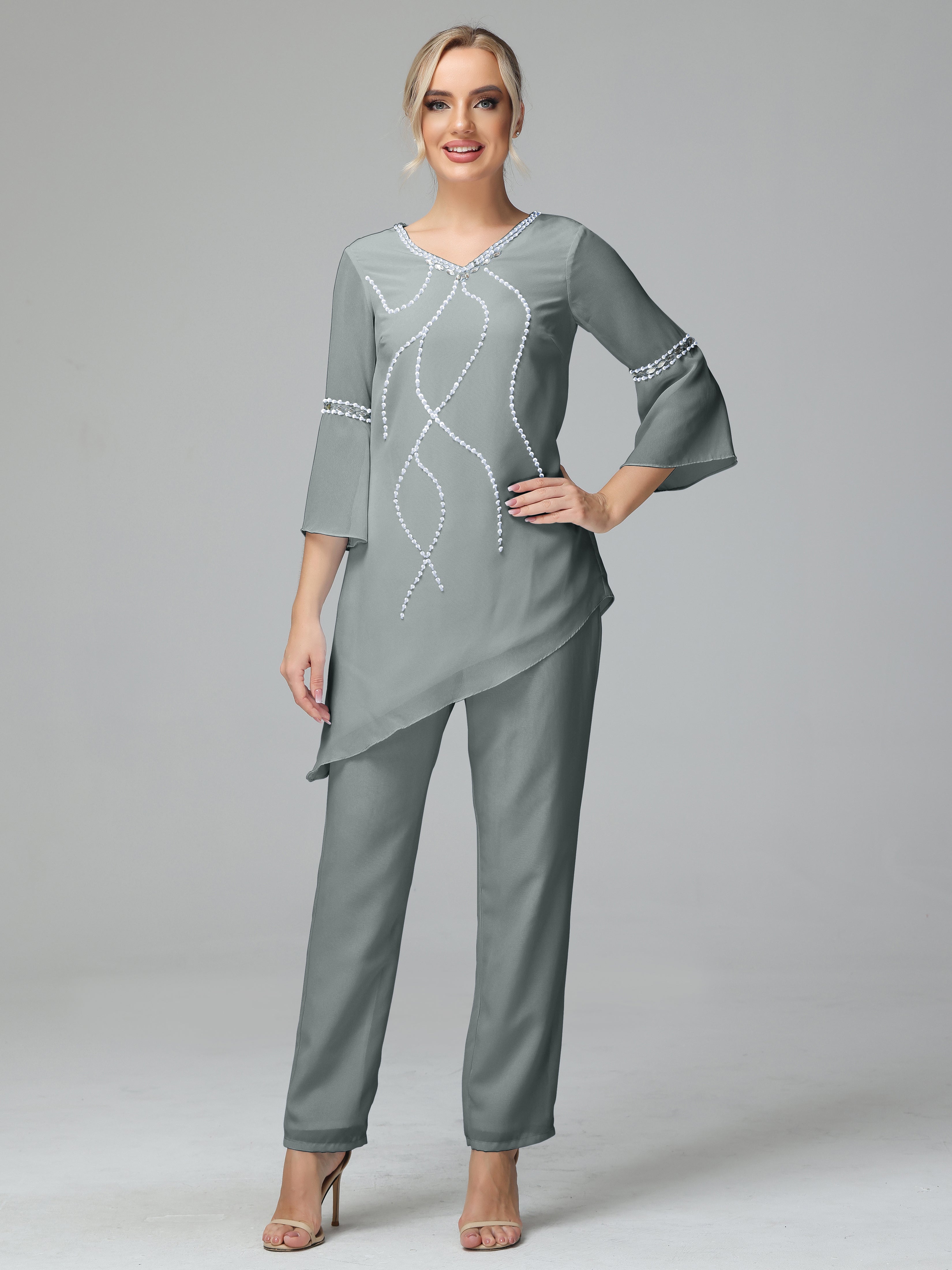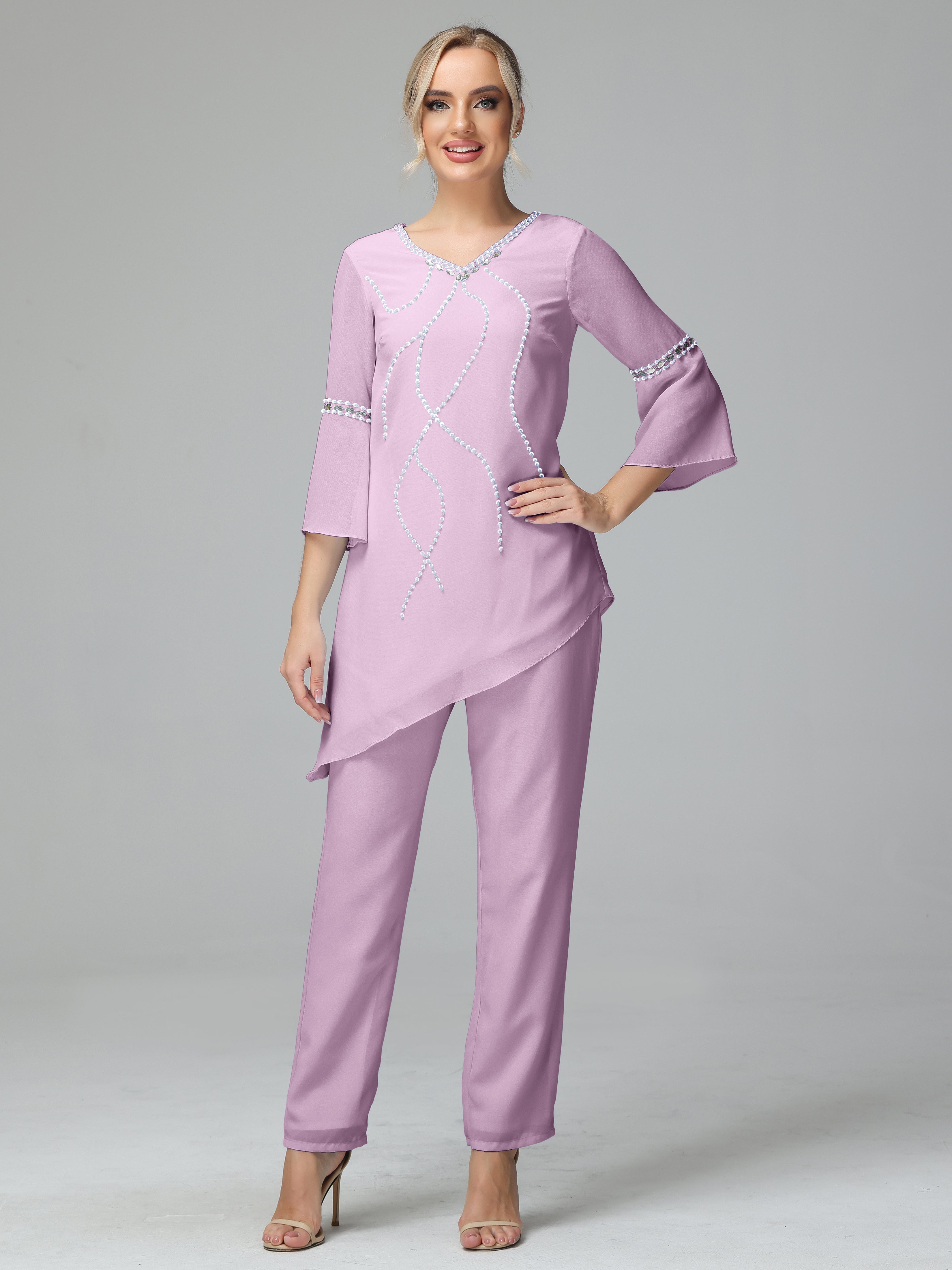 V-Neck Chiffon Mother of the Bride Dress With Beading