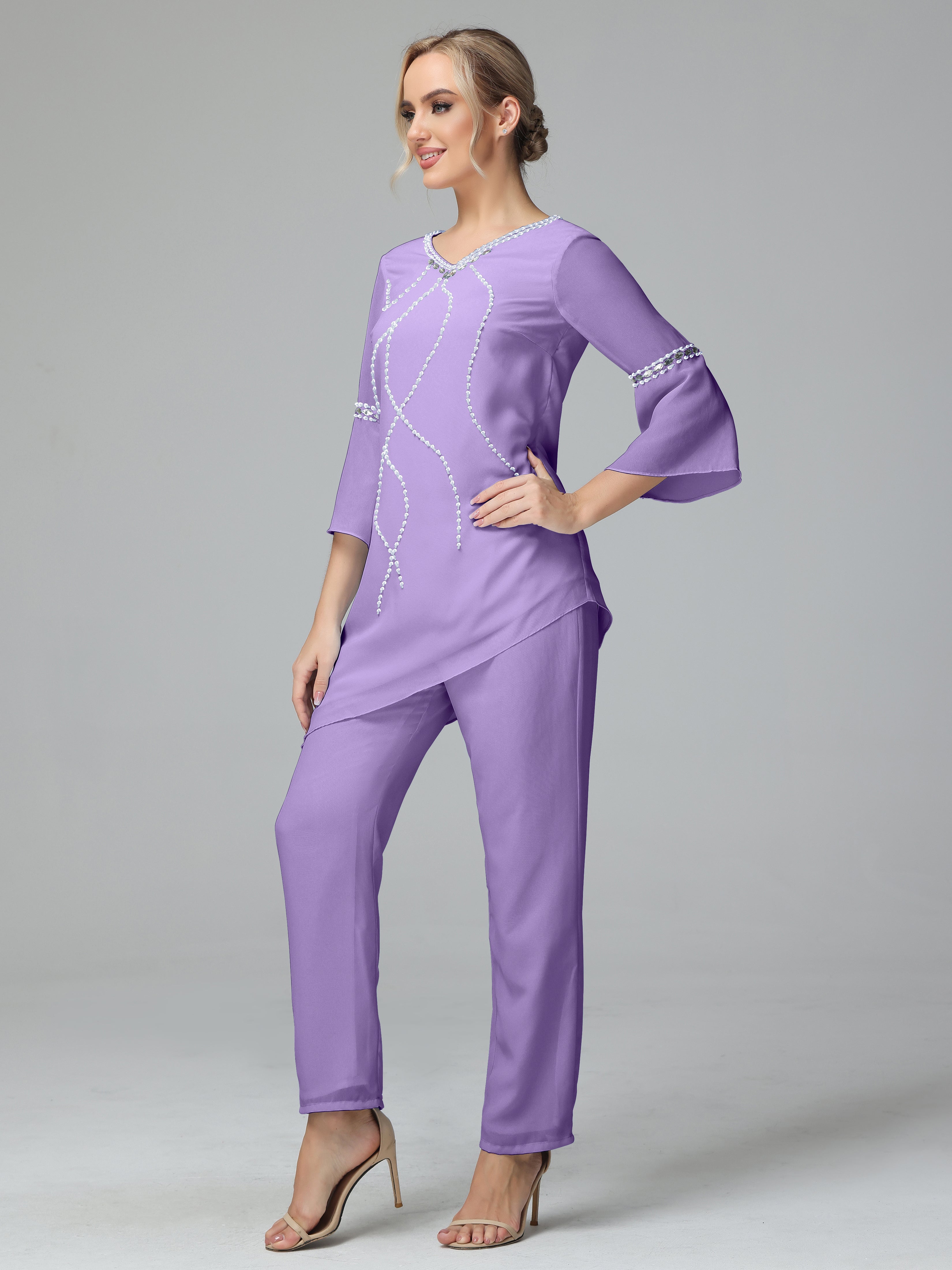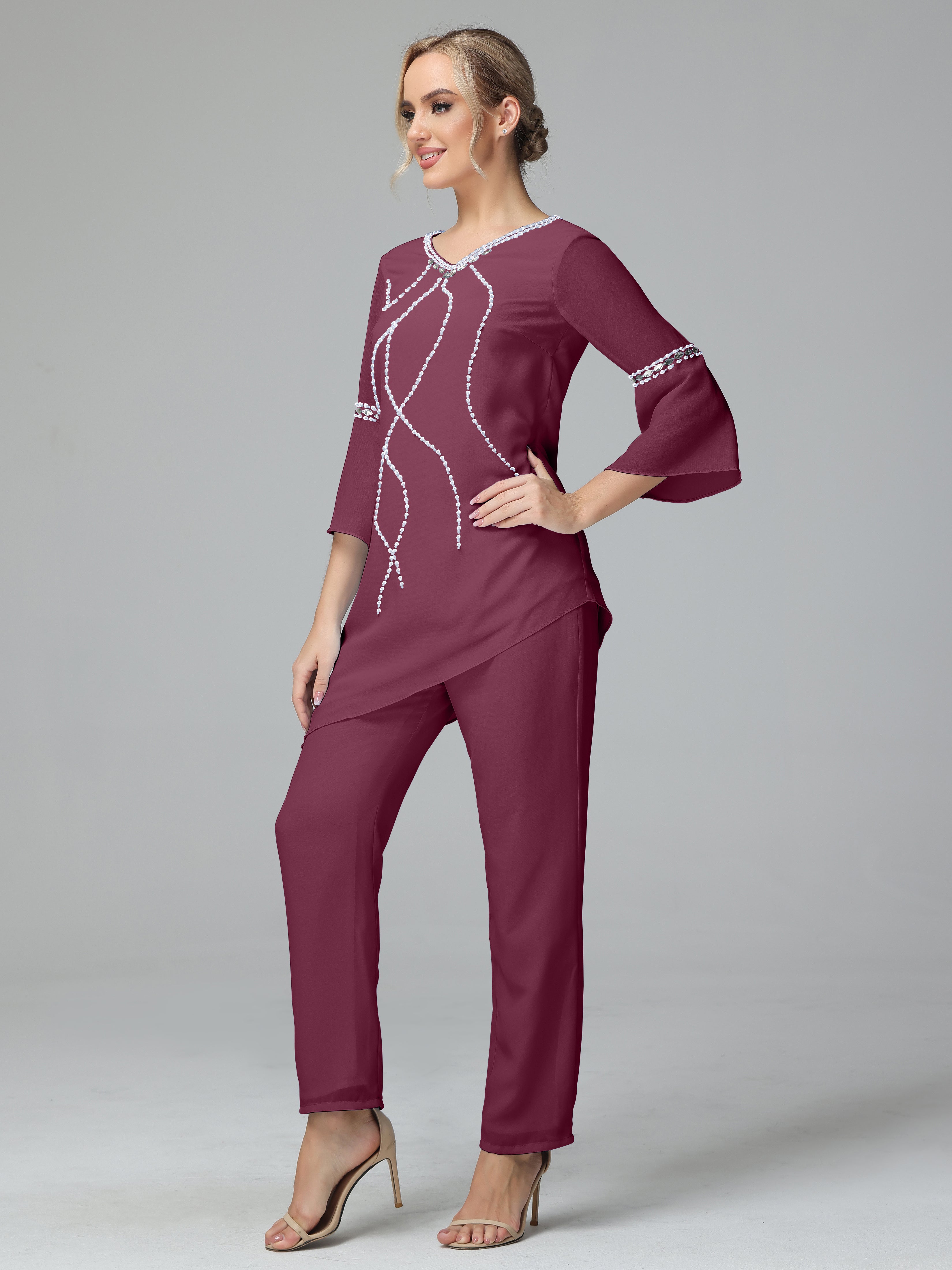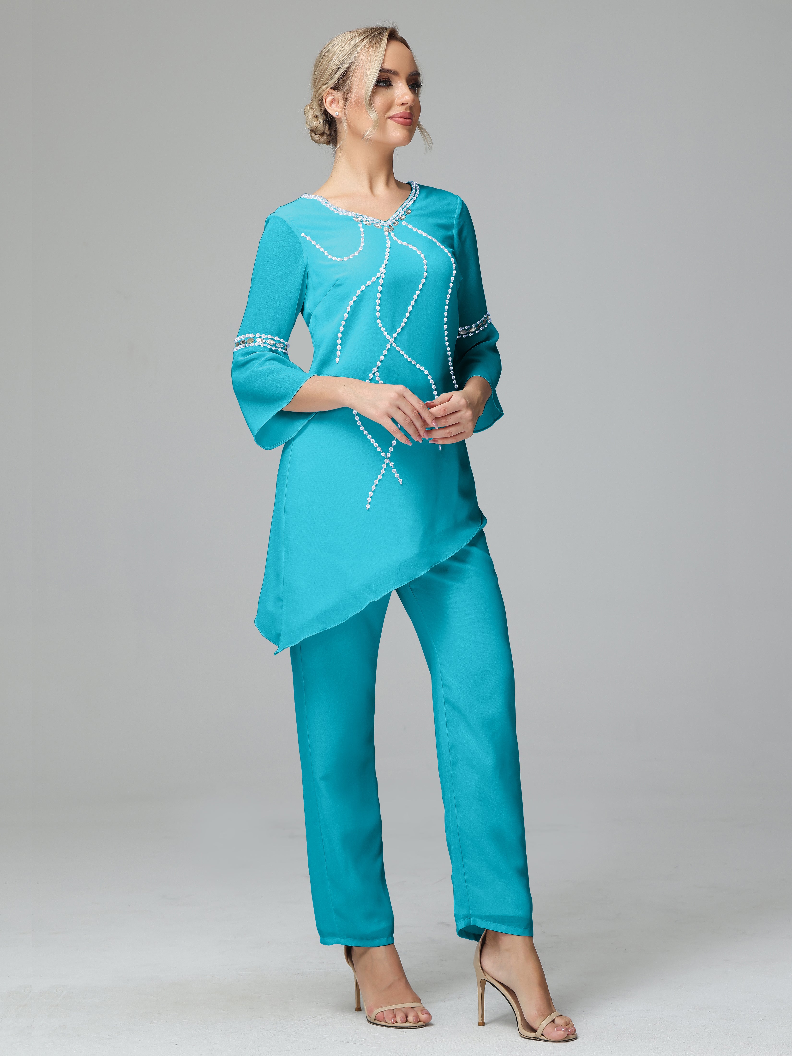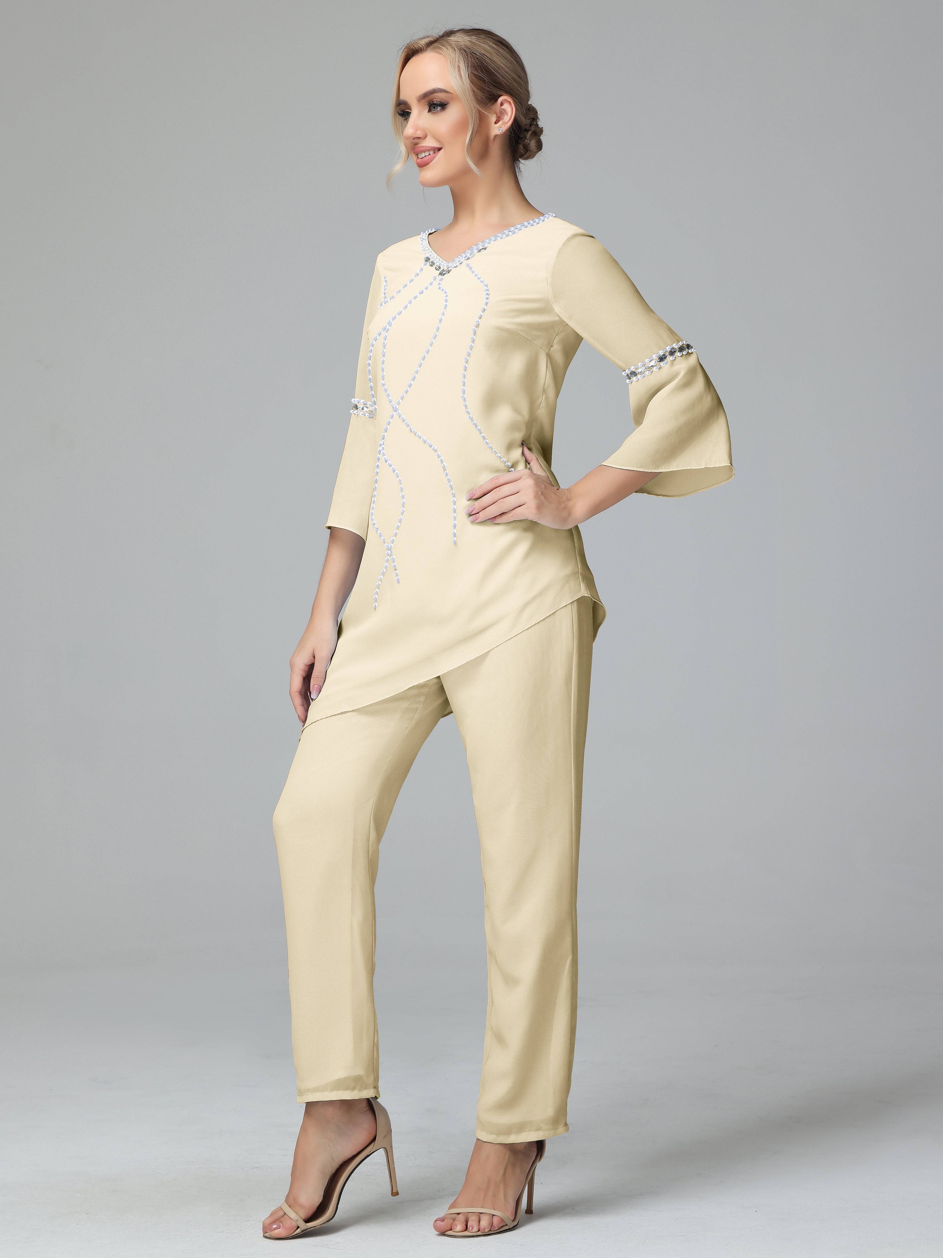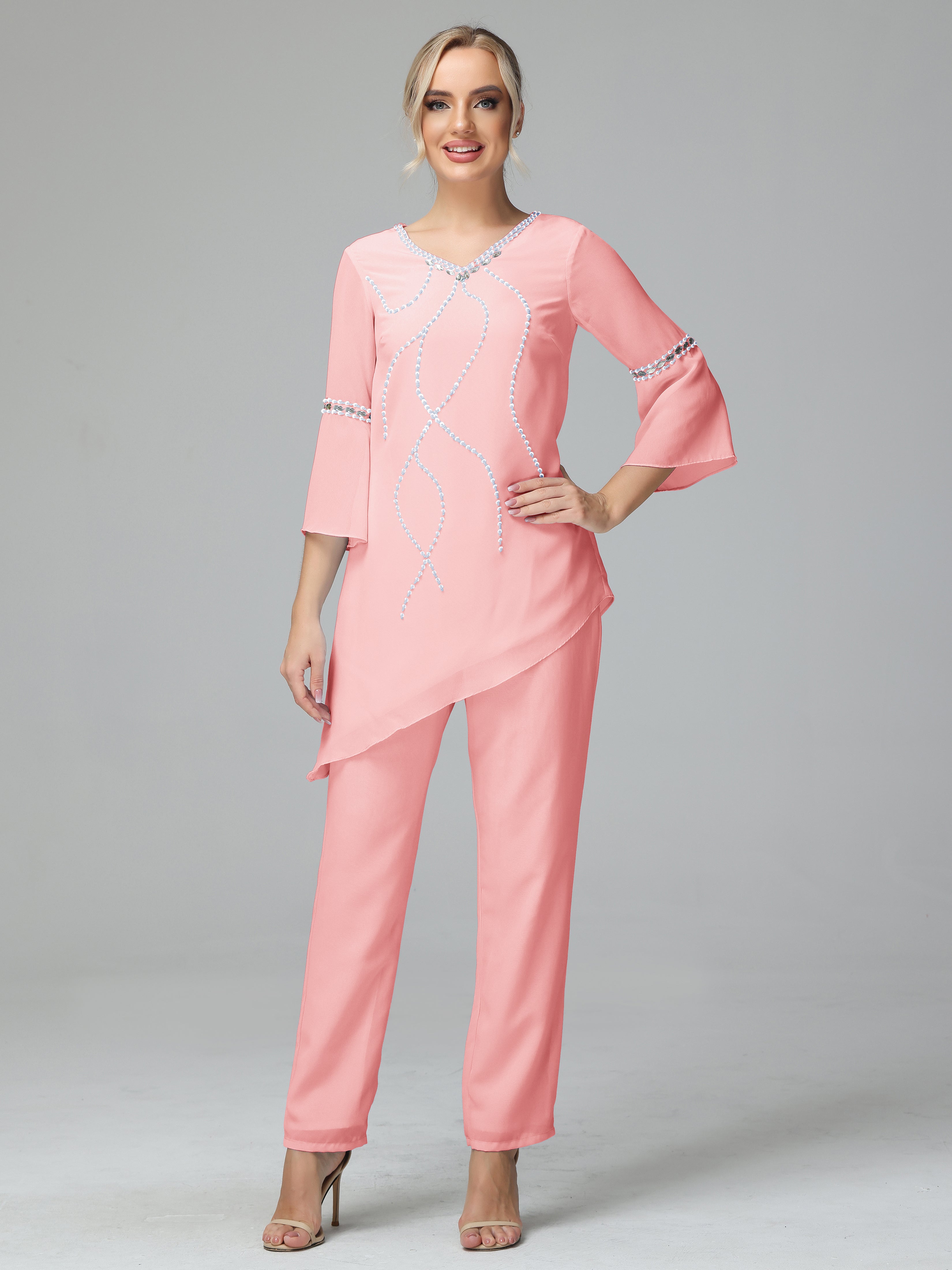 V-Neck Chiffon Mother of the Bride Dress With Beading