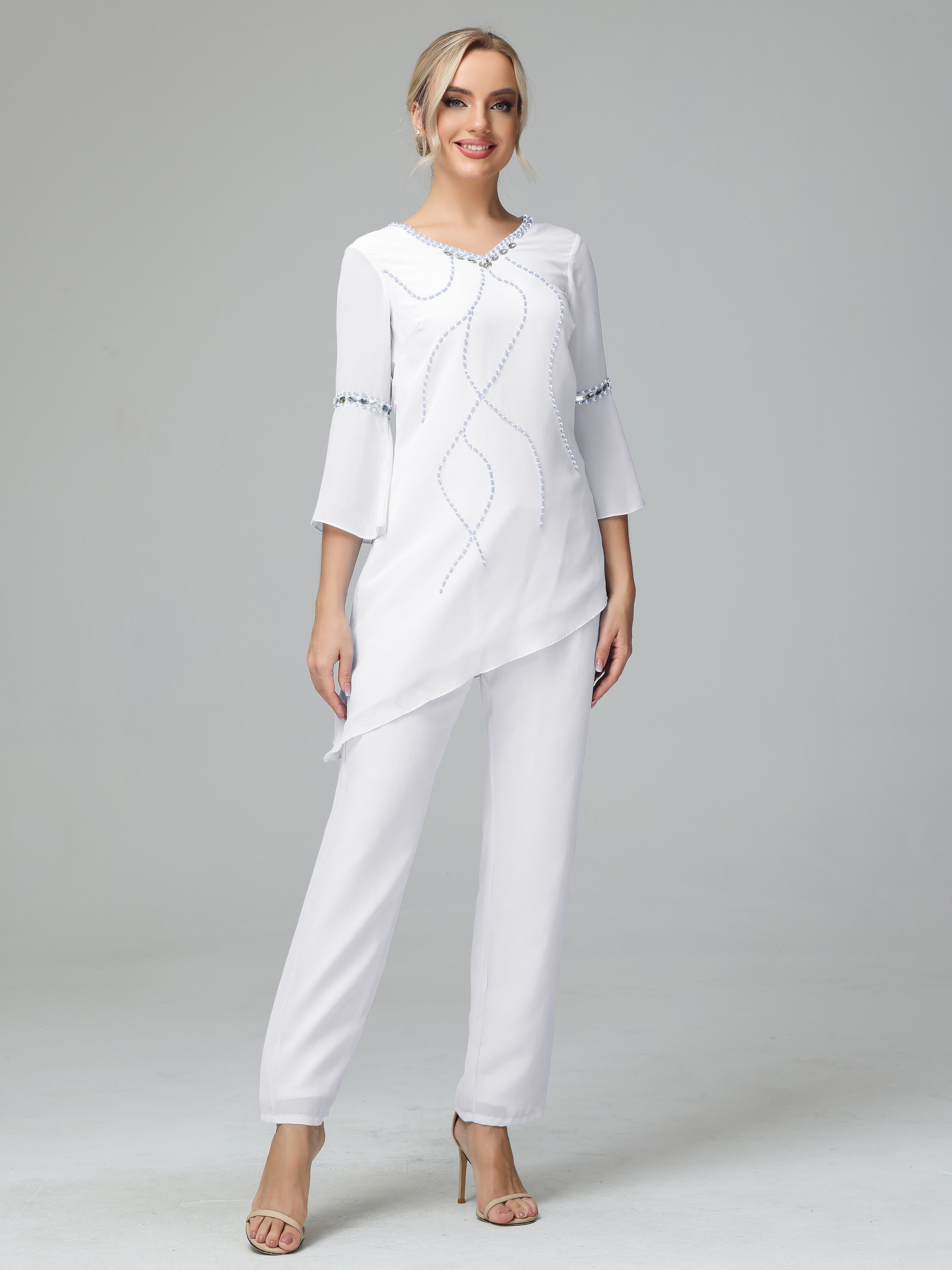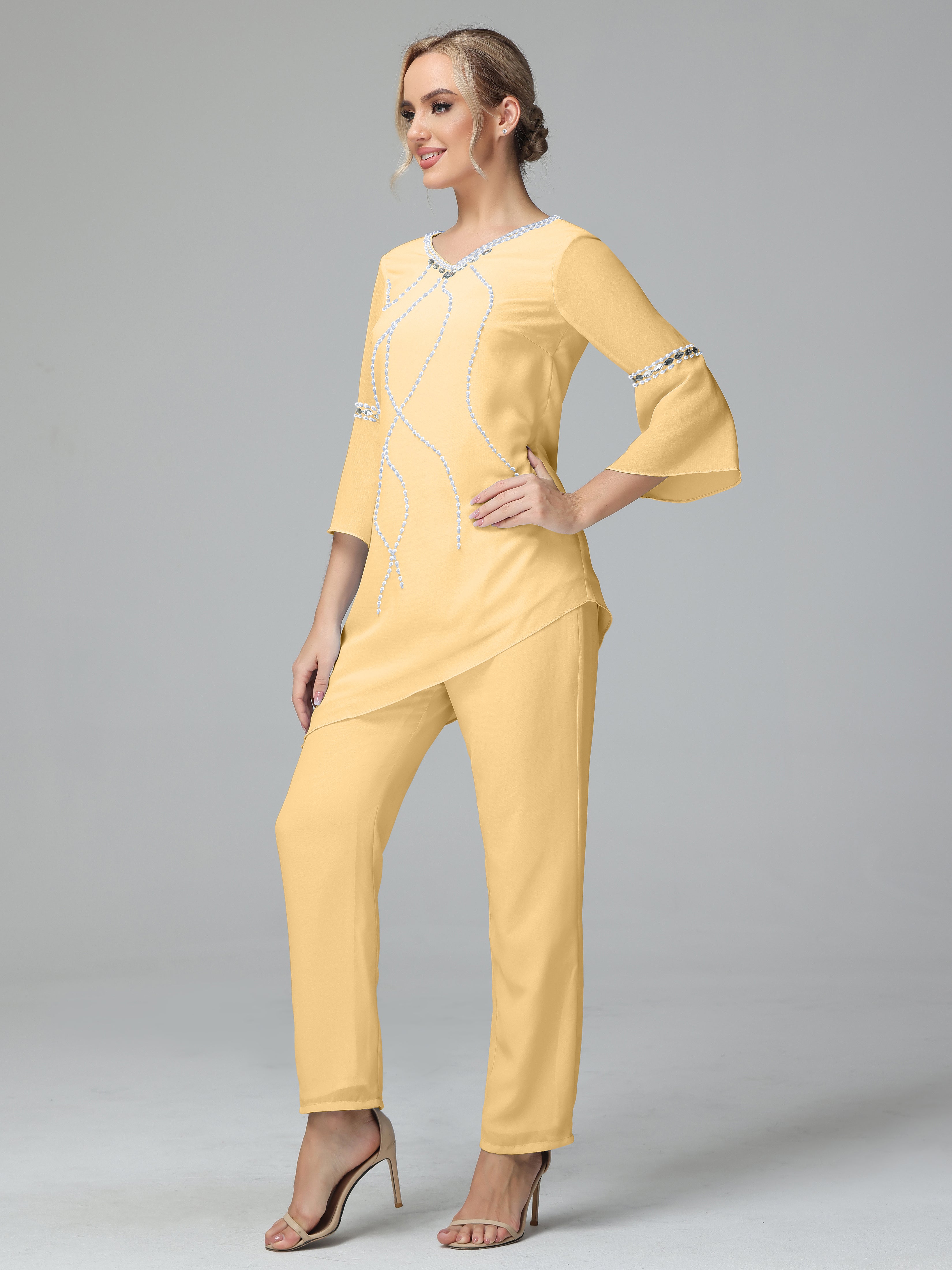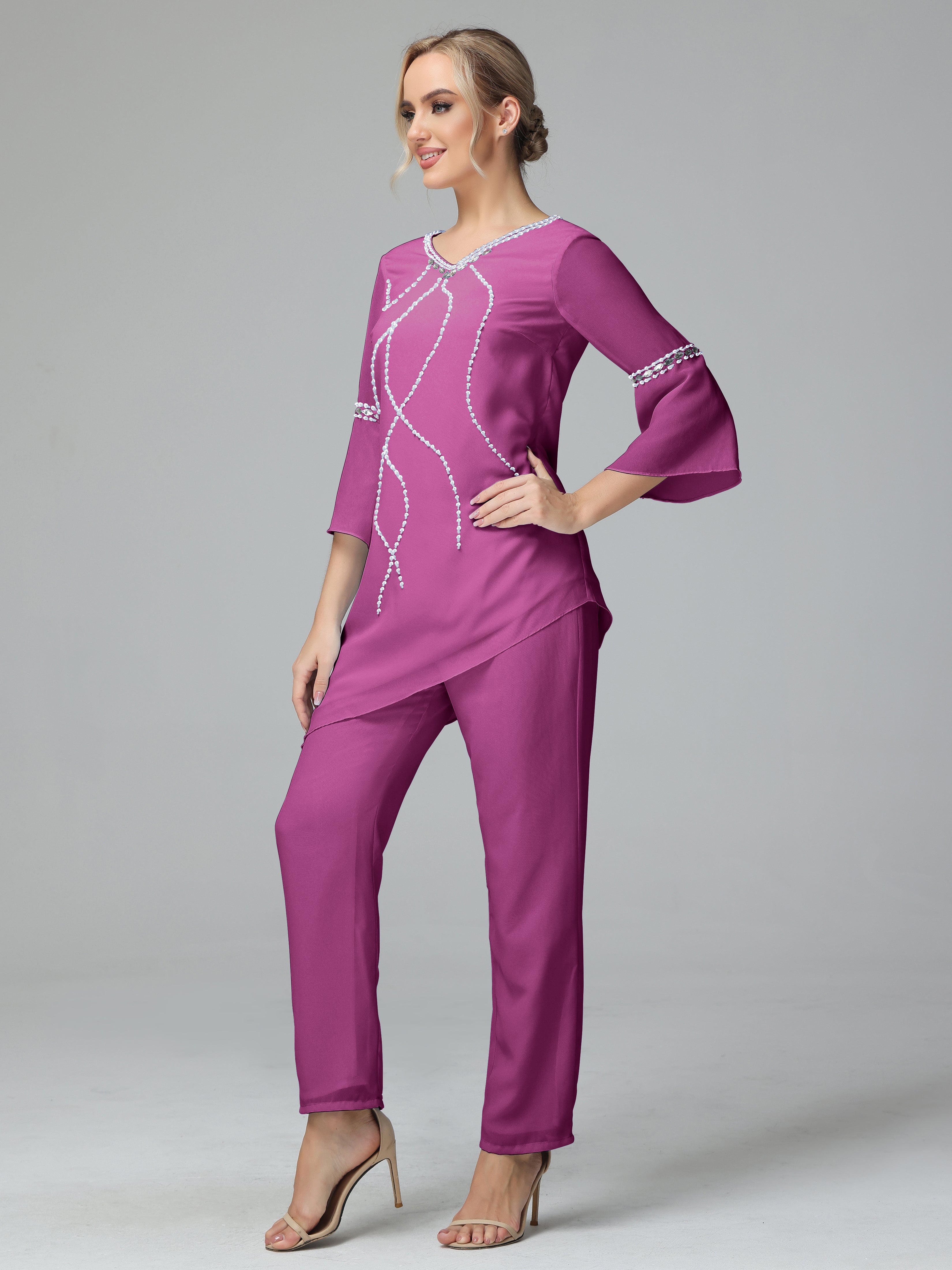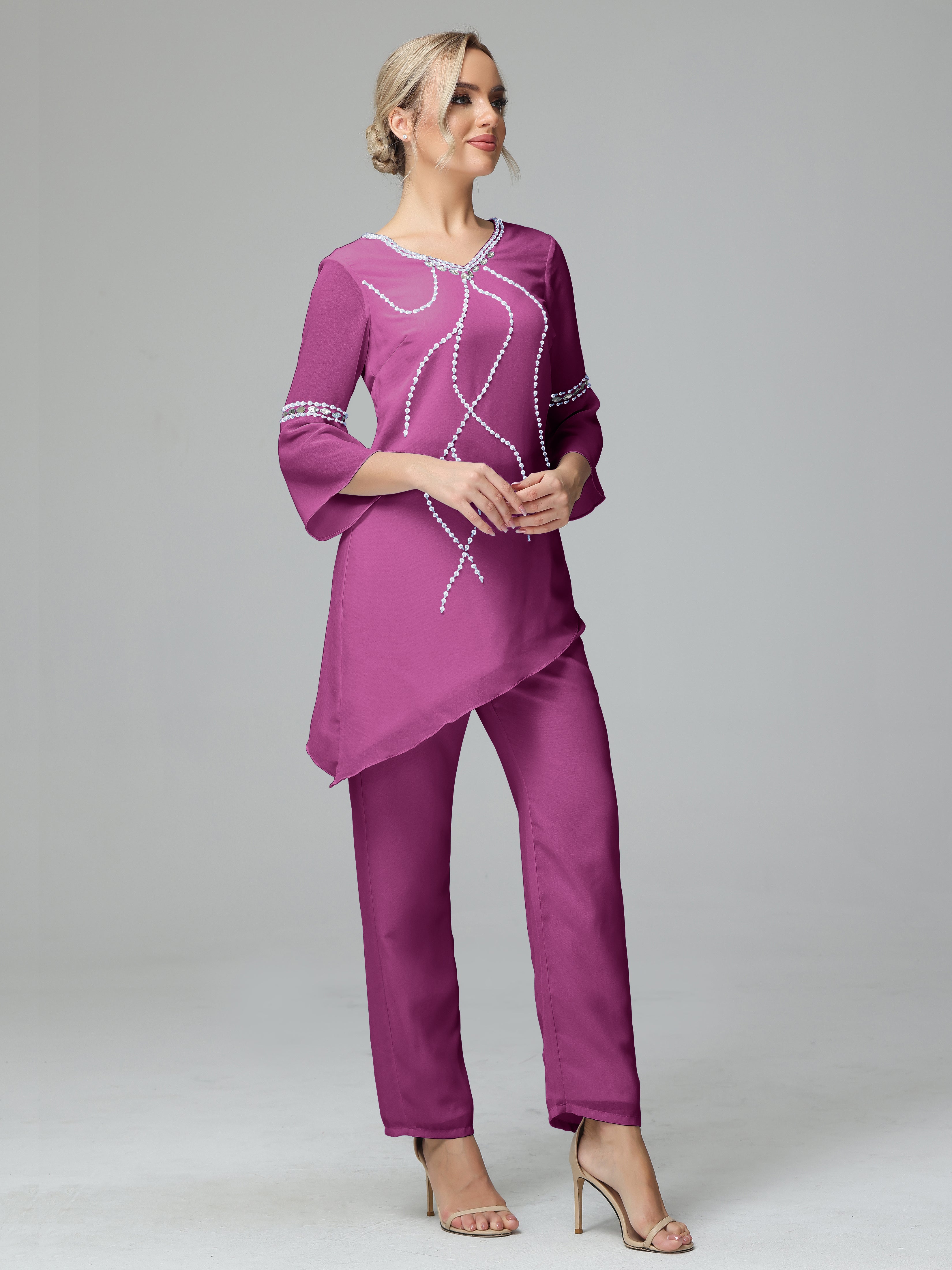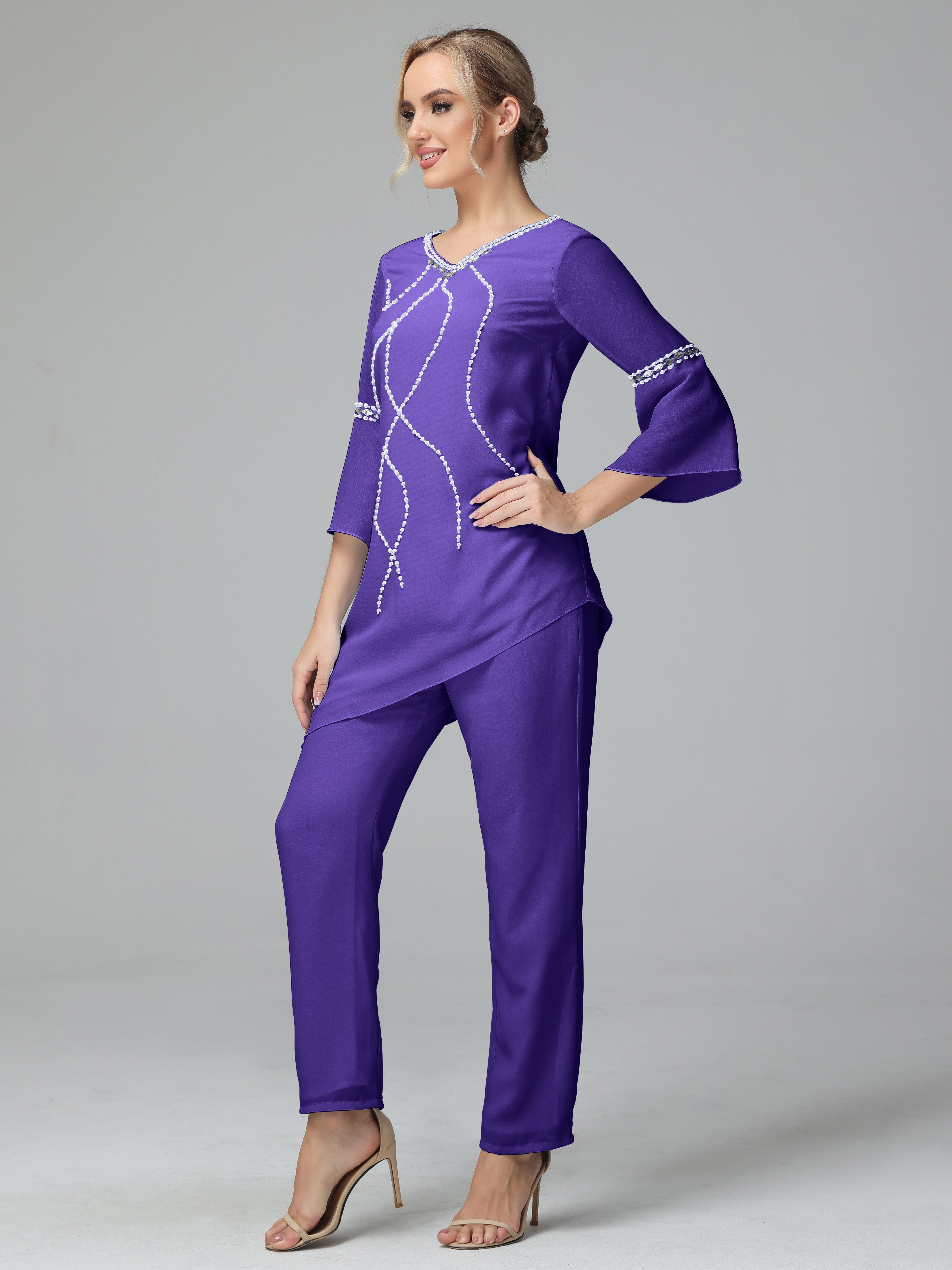 V-Neck Chiffon Mother of the Bride Dress With Beading