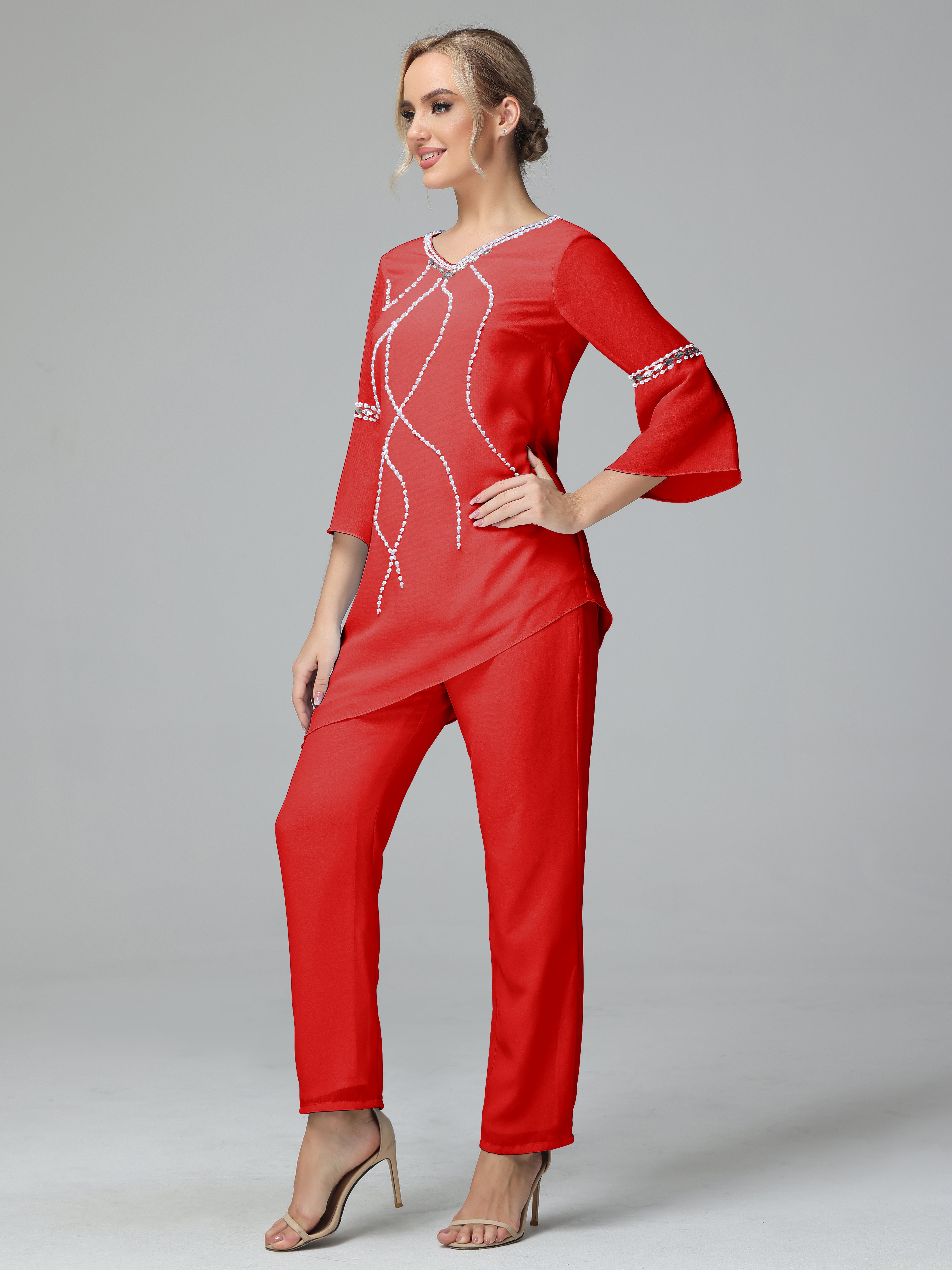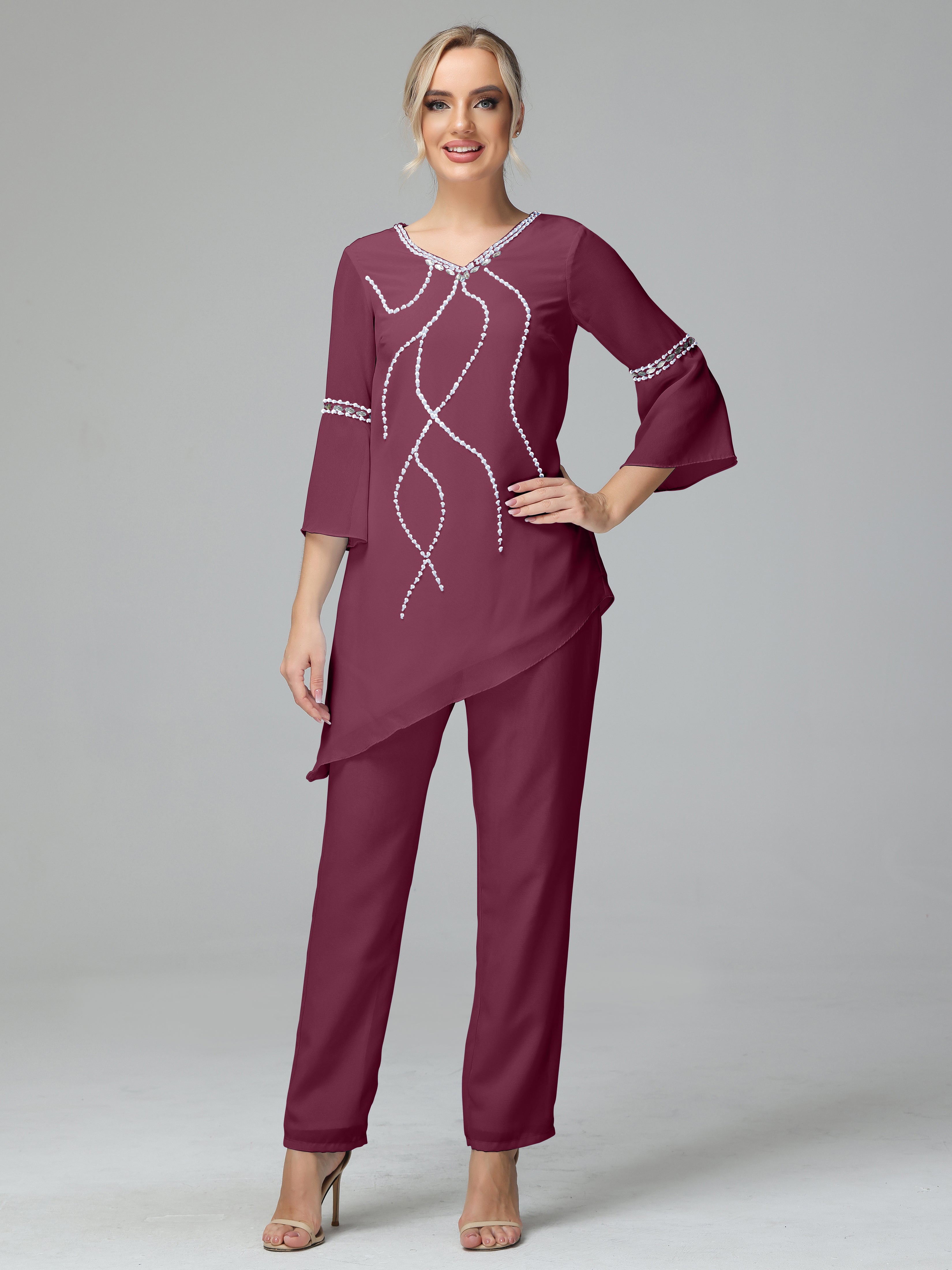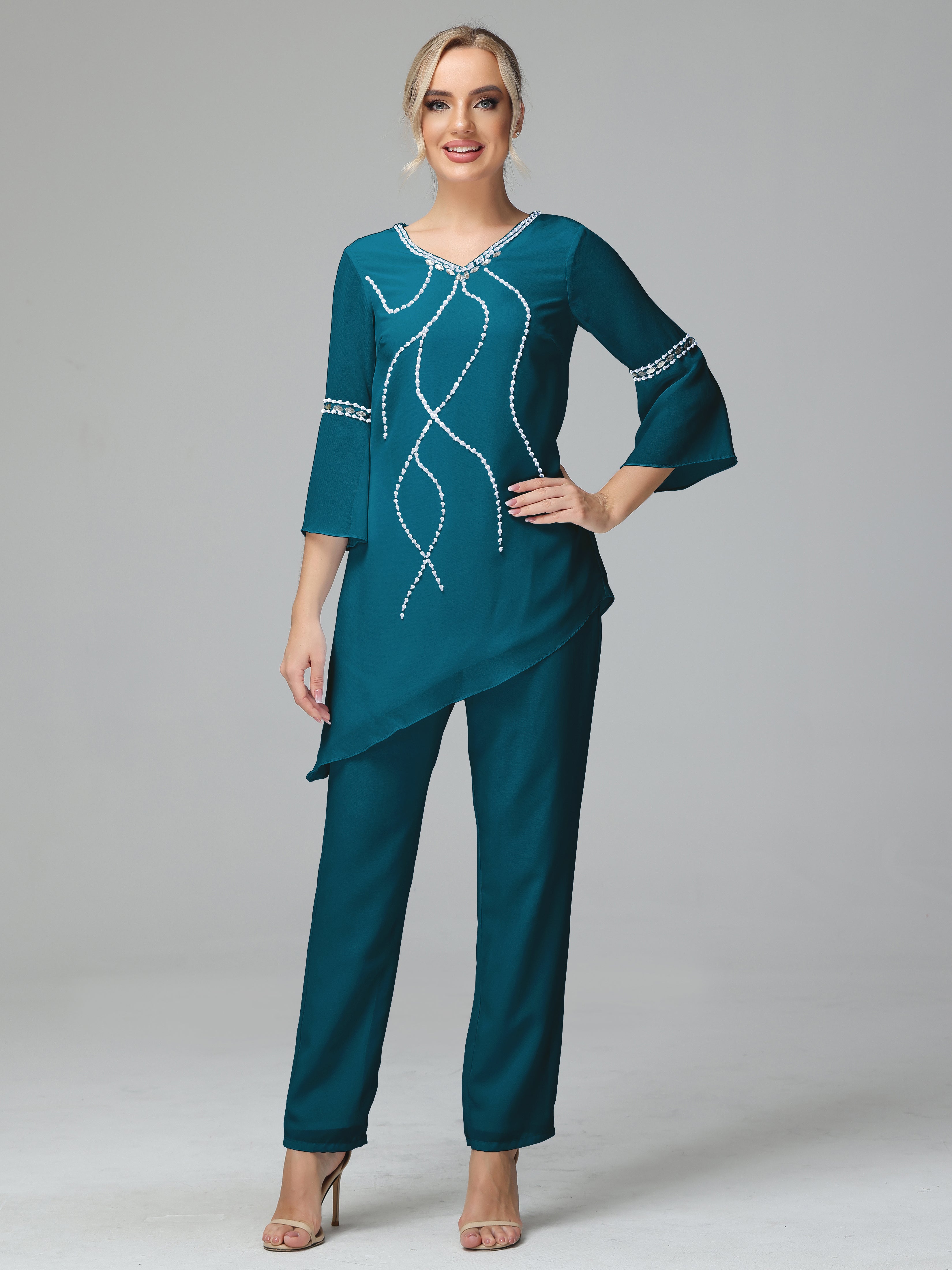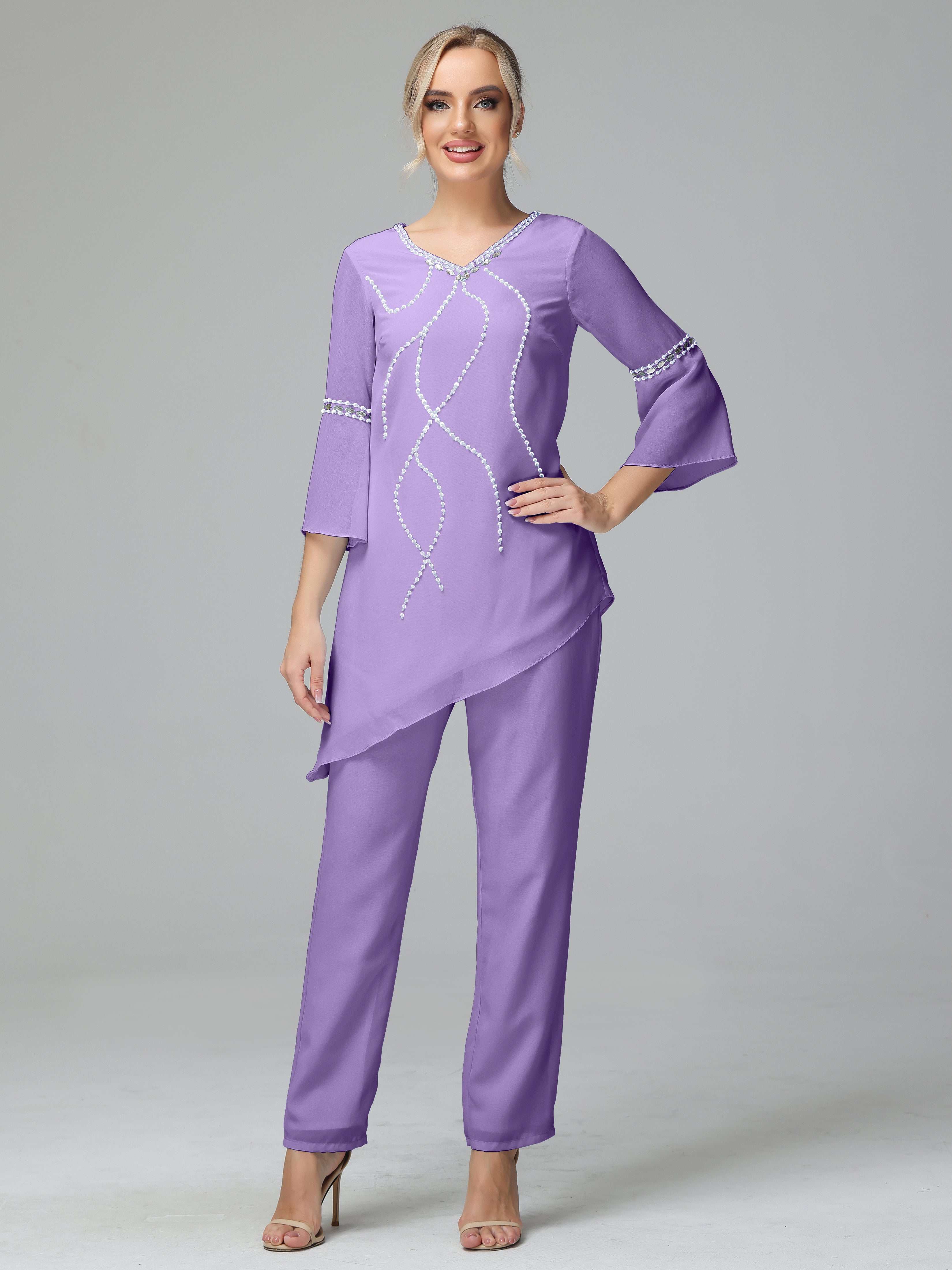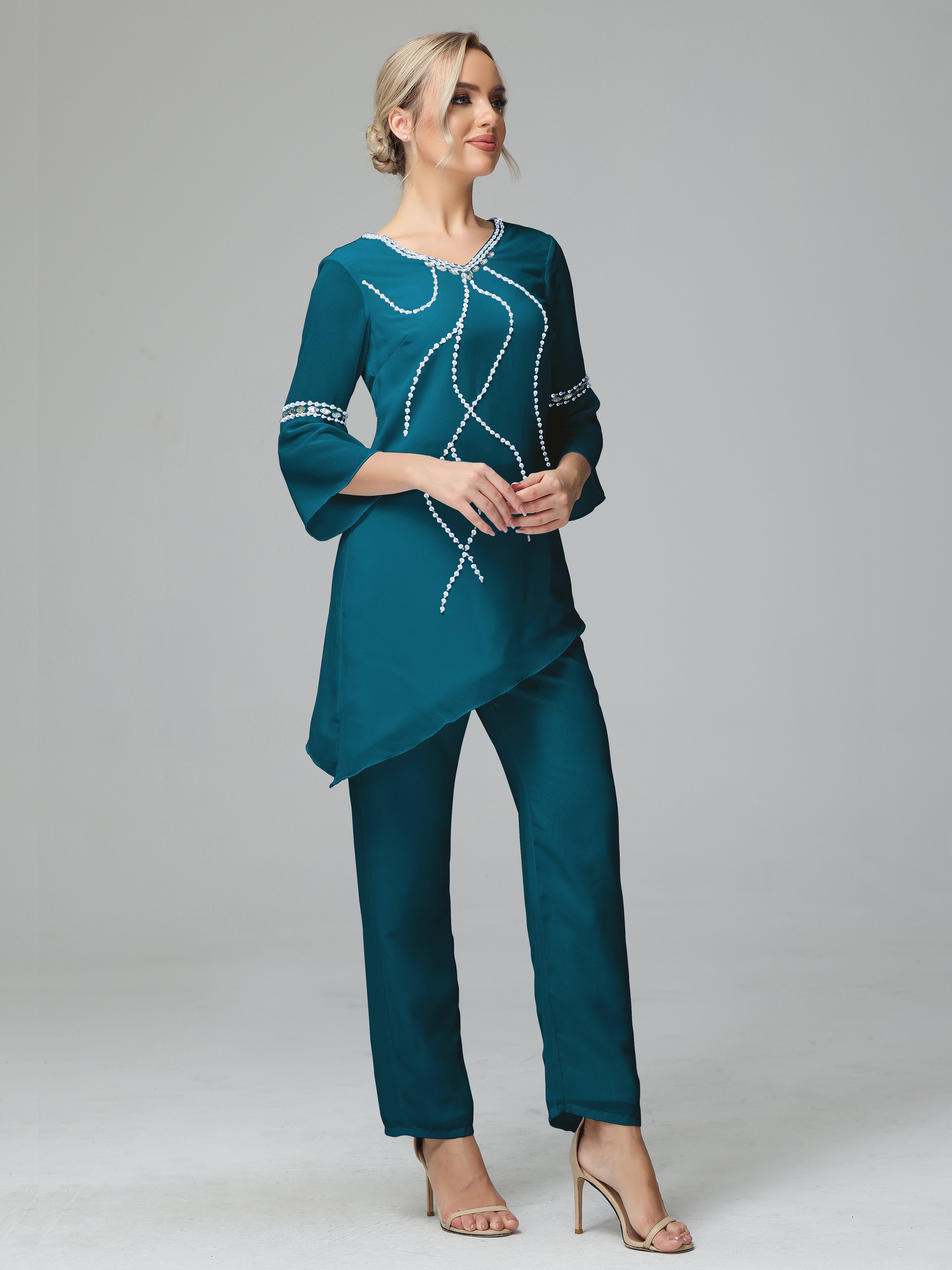 V-Neck Chiffon Mother of the Bride Dress With Beading