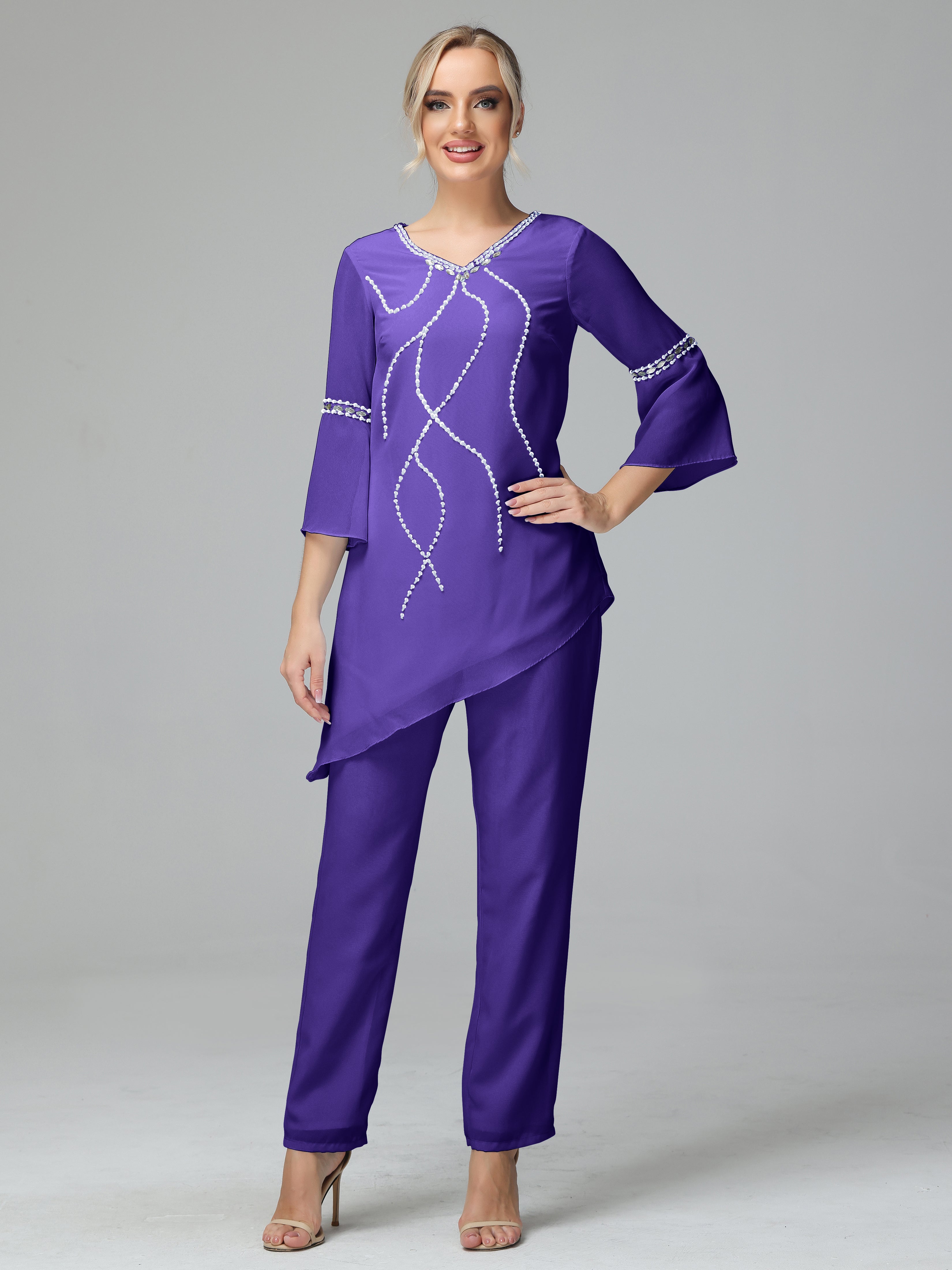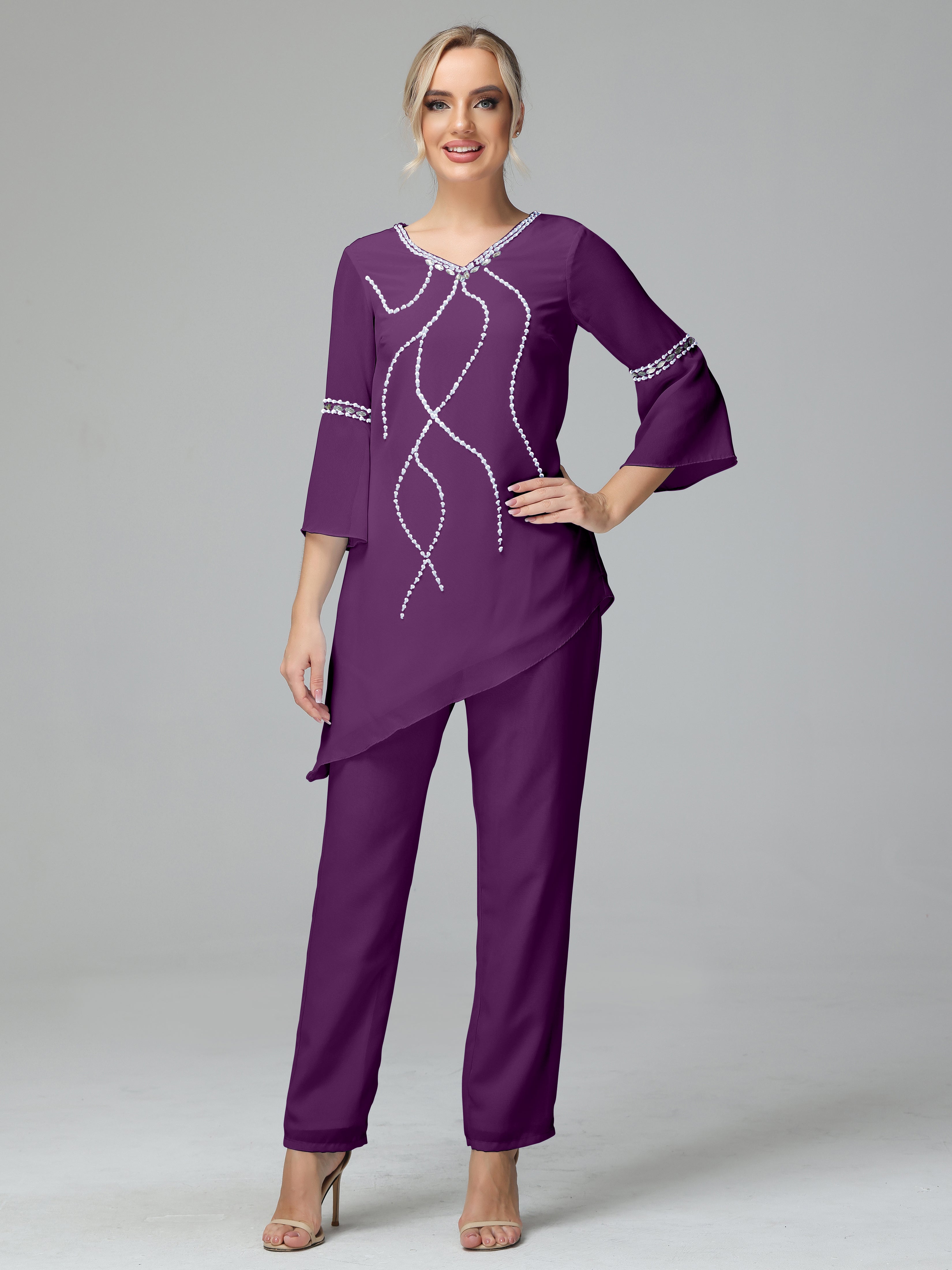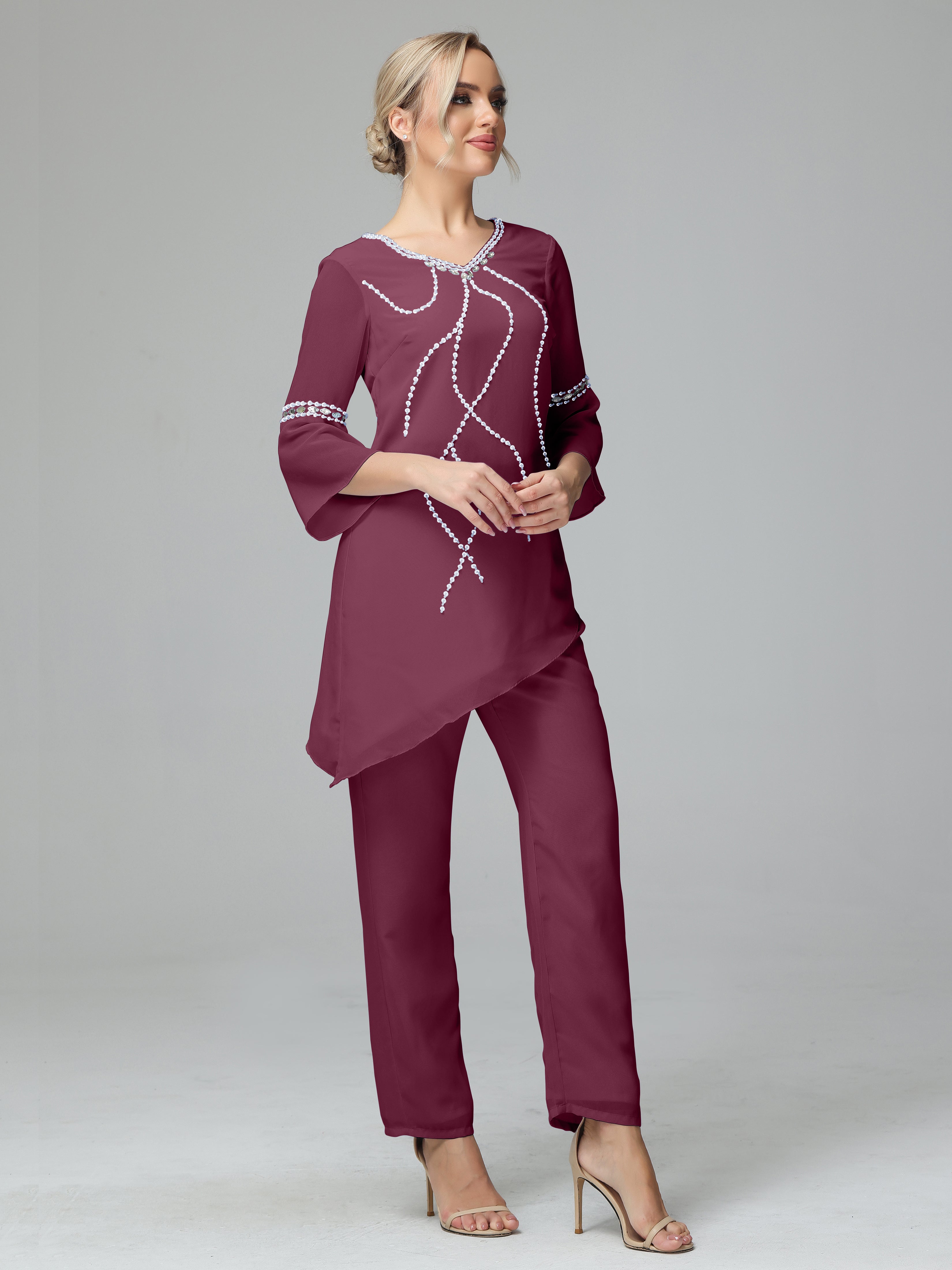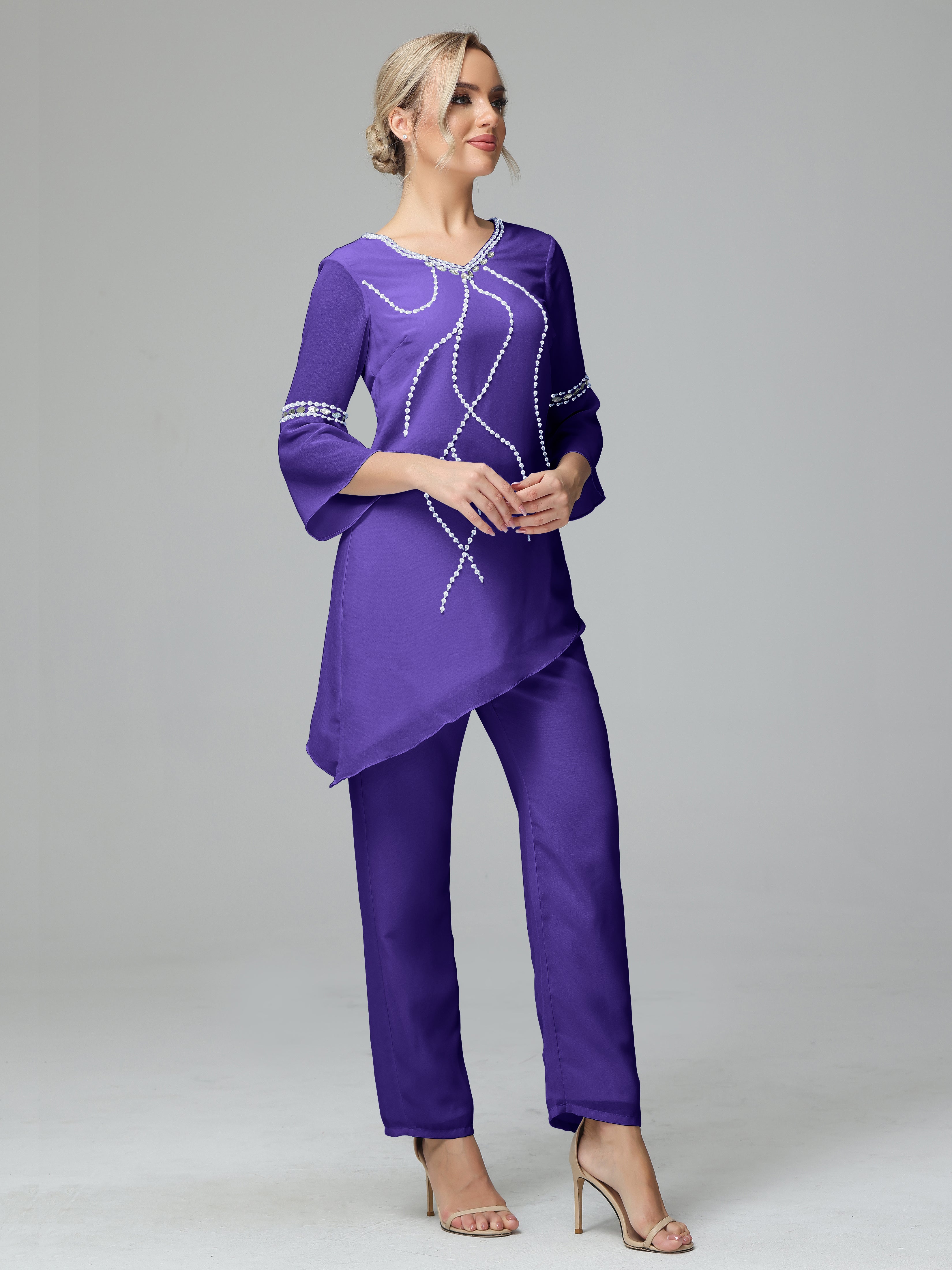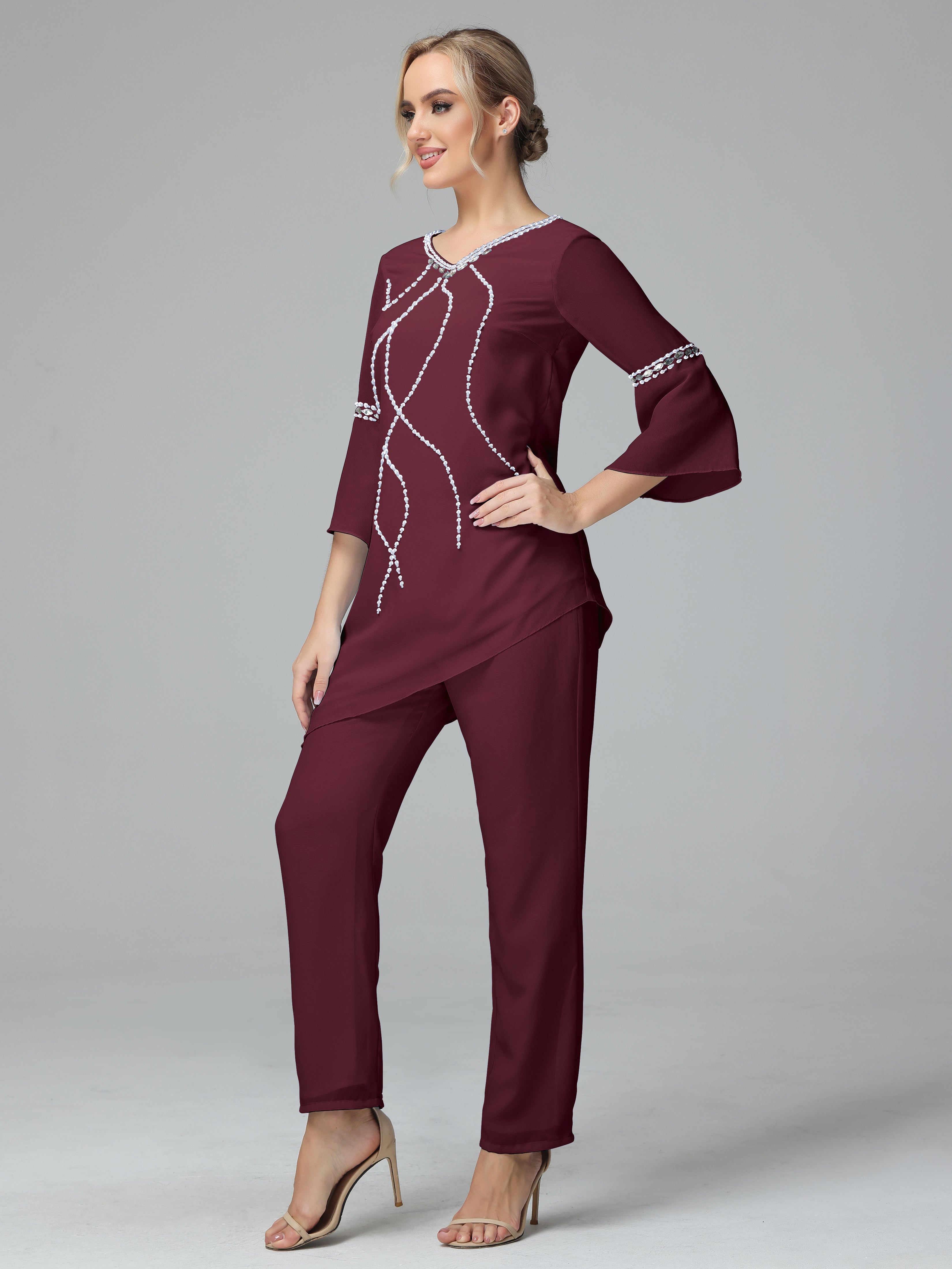 V-Neck Chiffon Mother of the Bride Dress With Beading