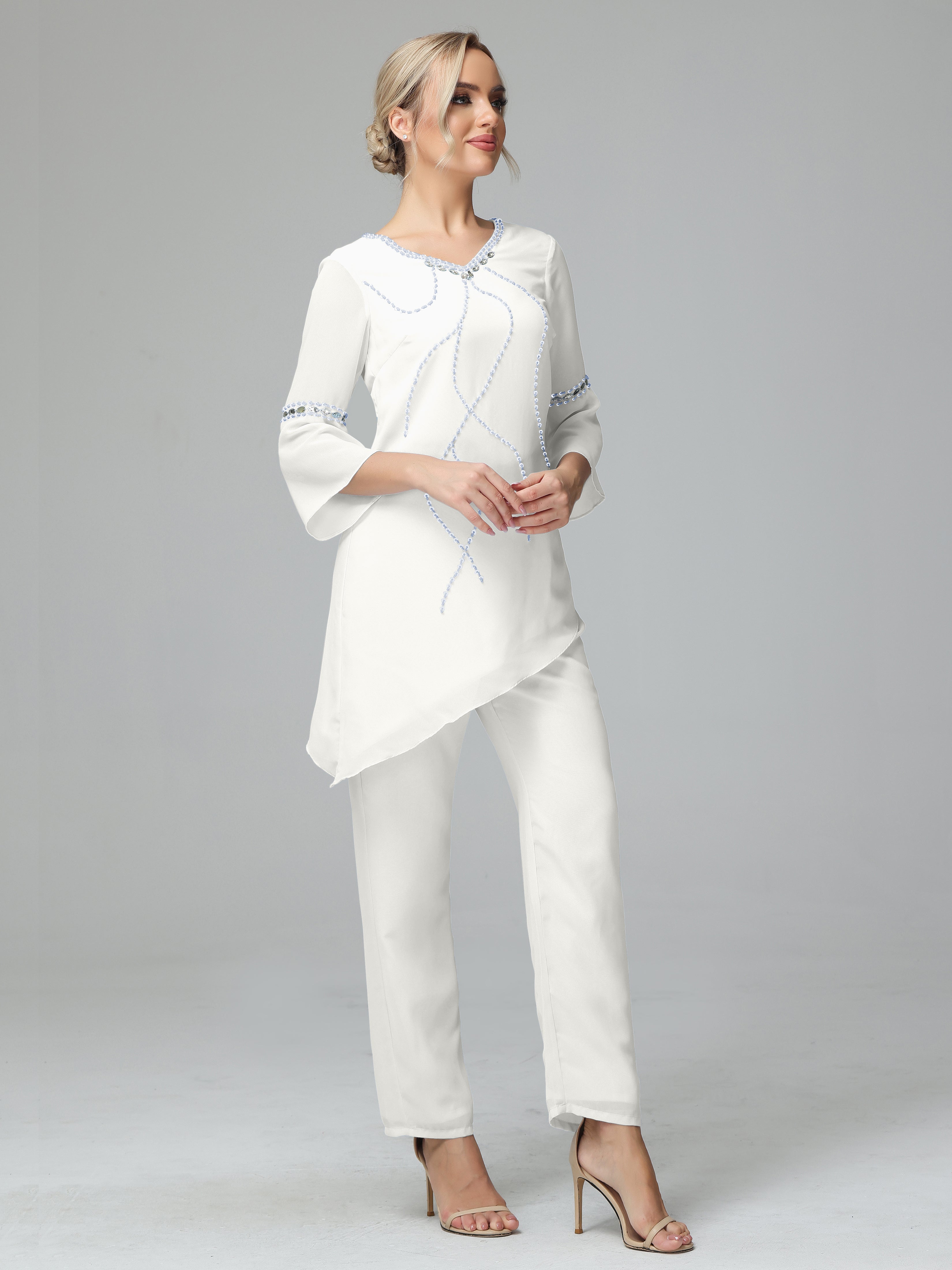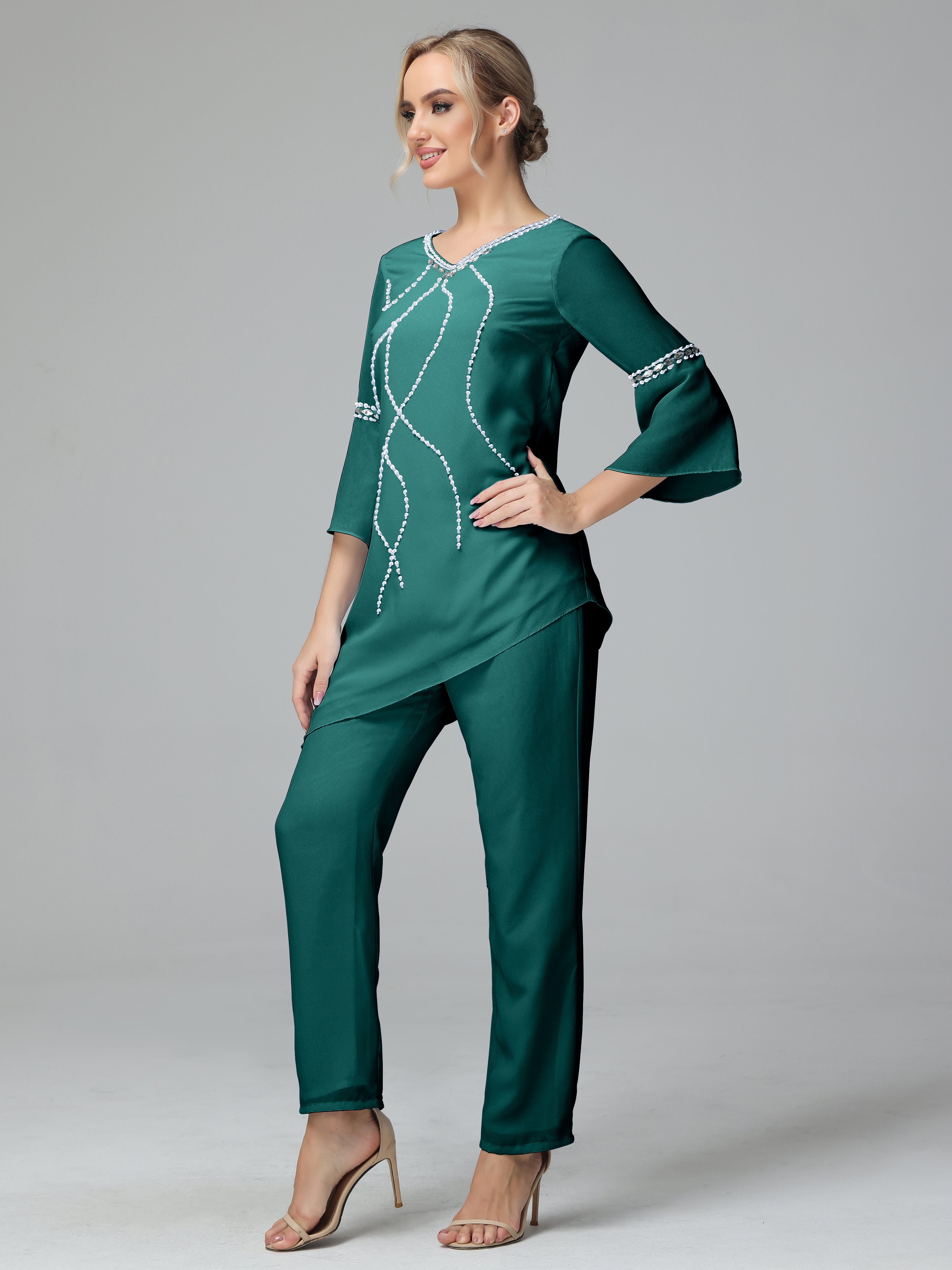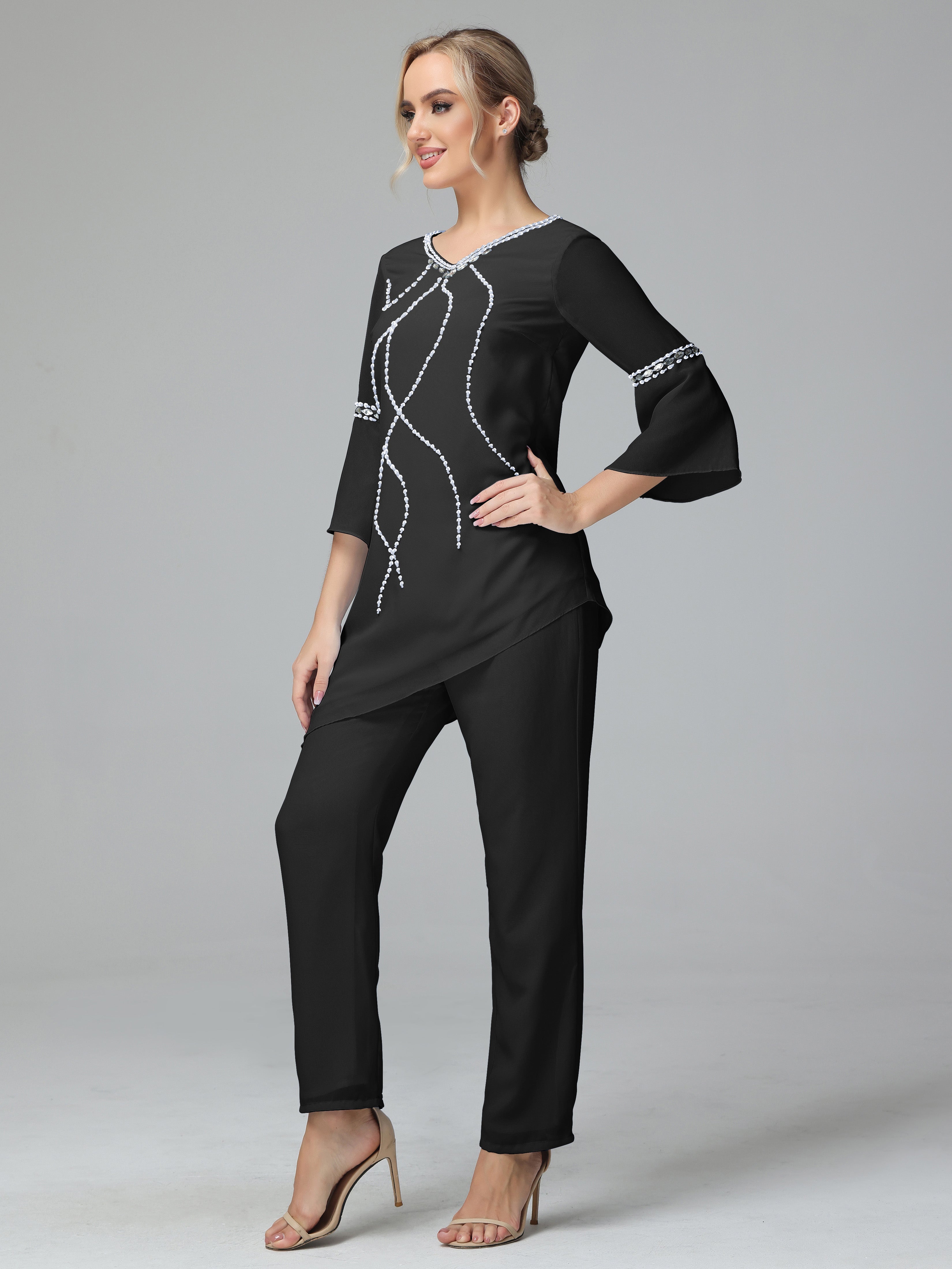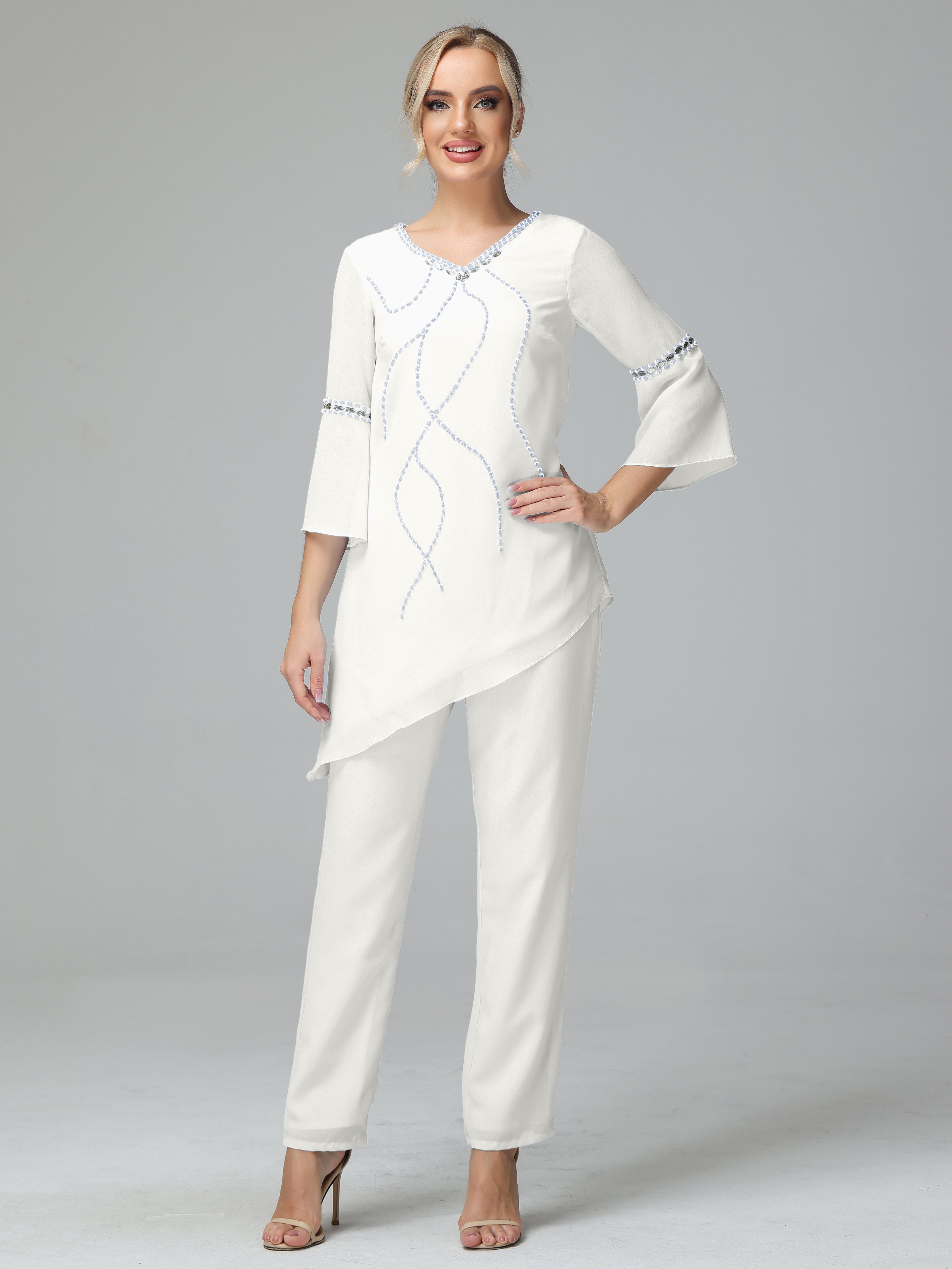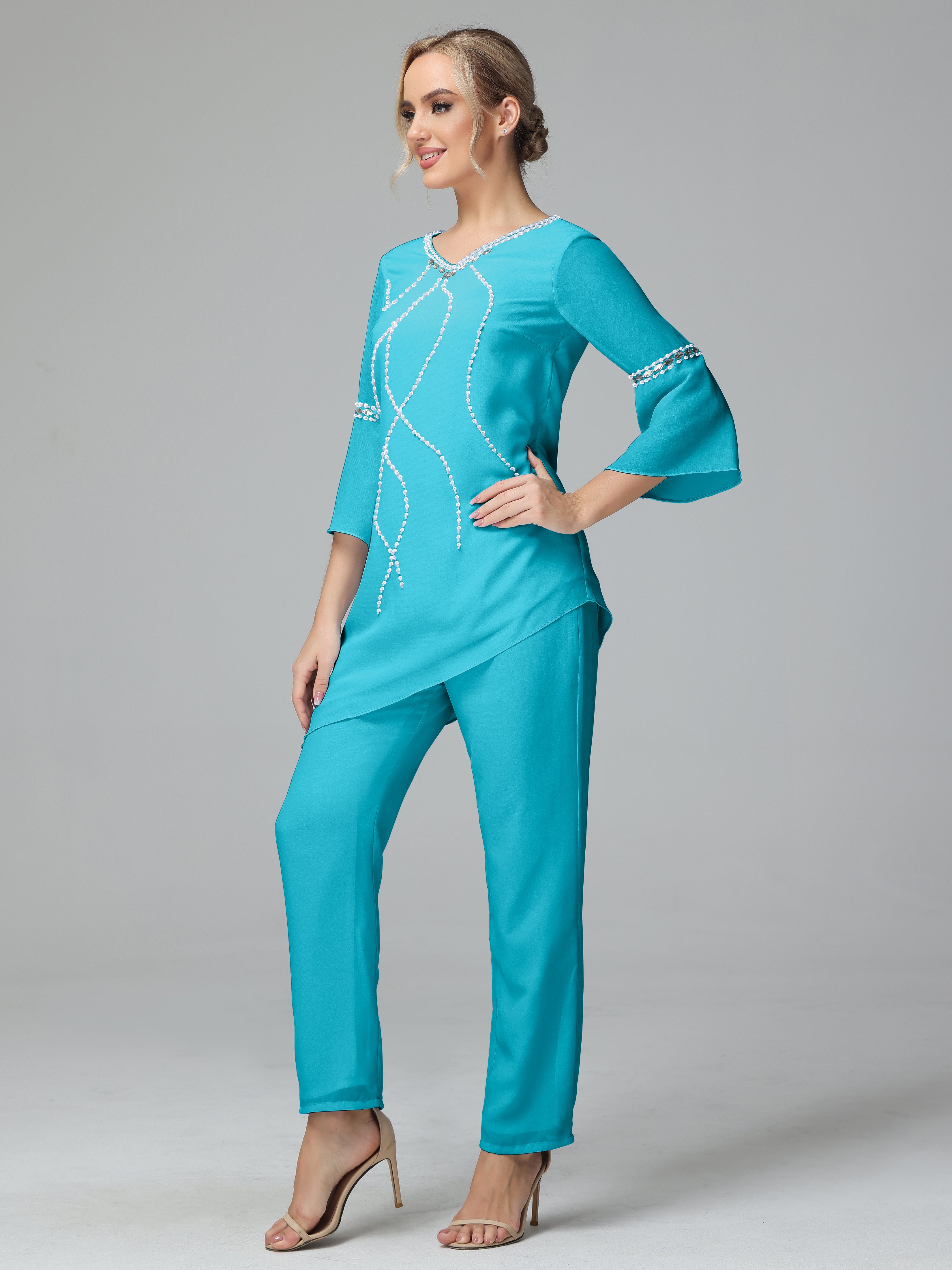 V-Neck Chiffon Mother of the Bride Dress With Beading