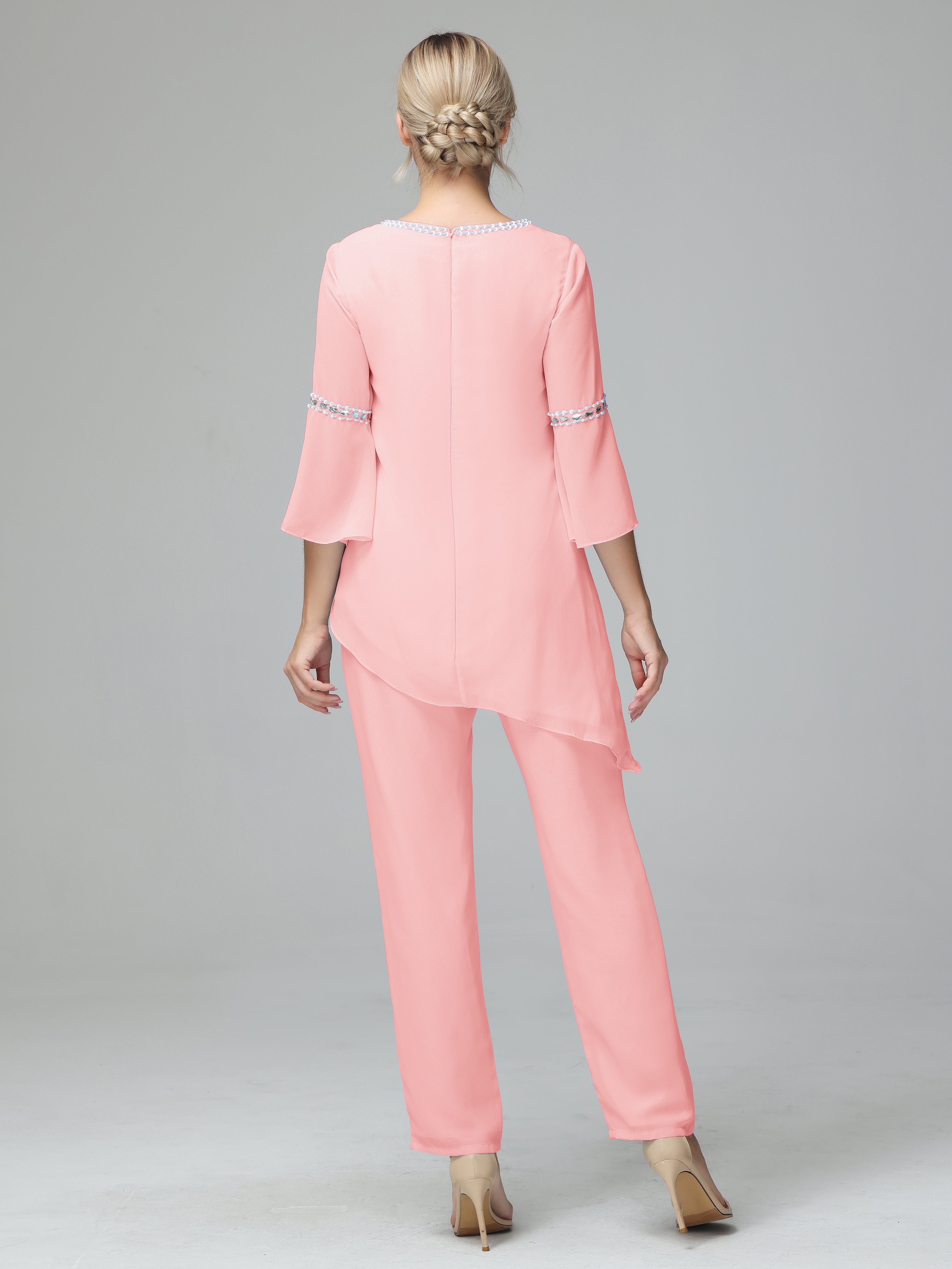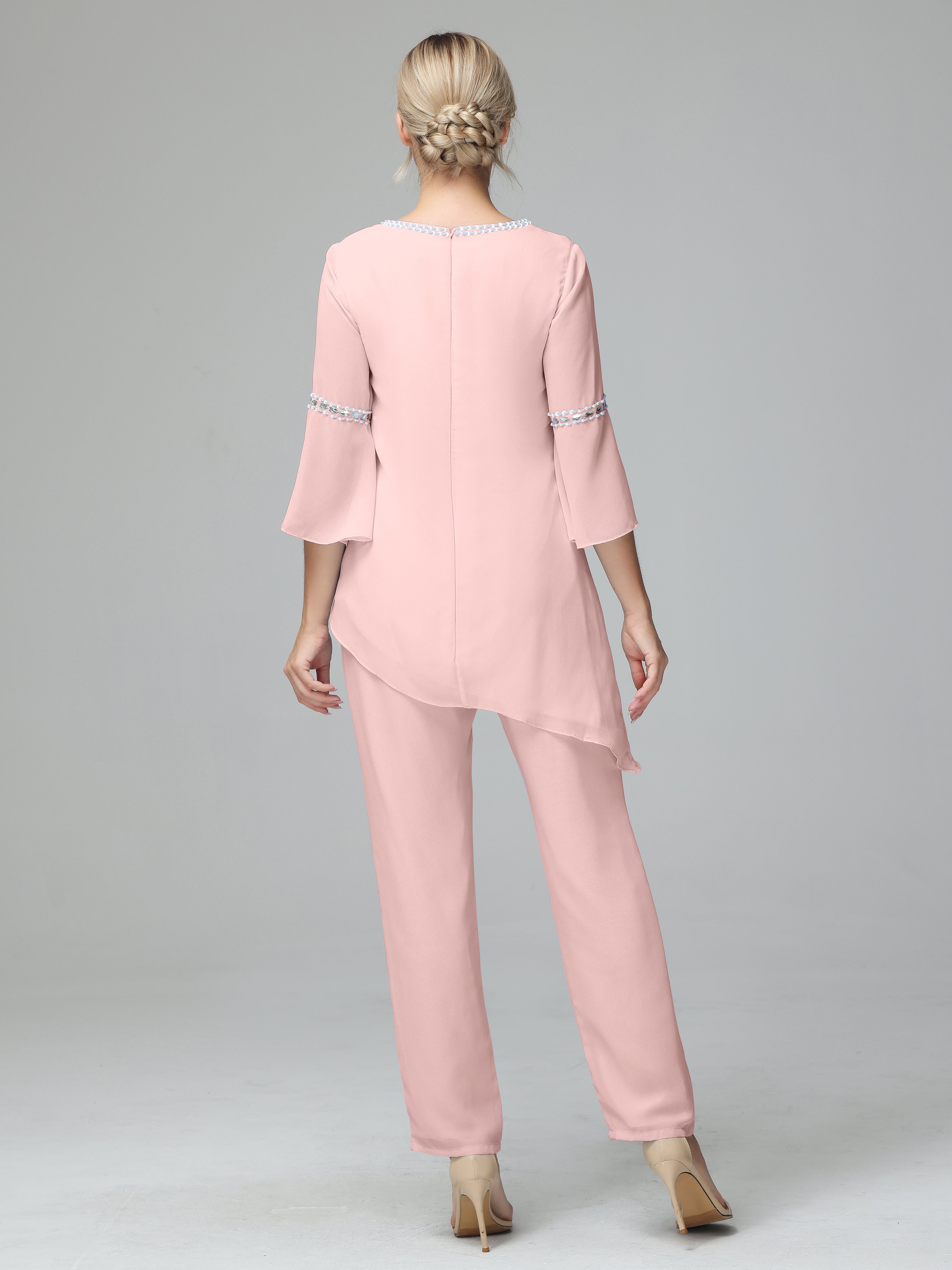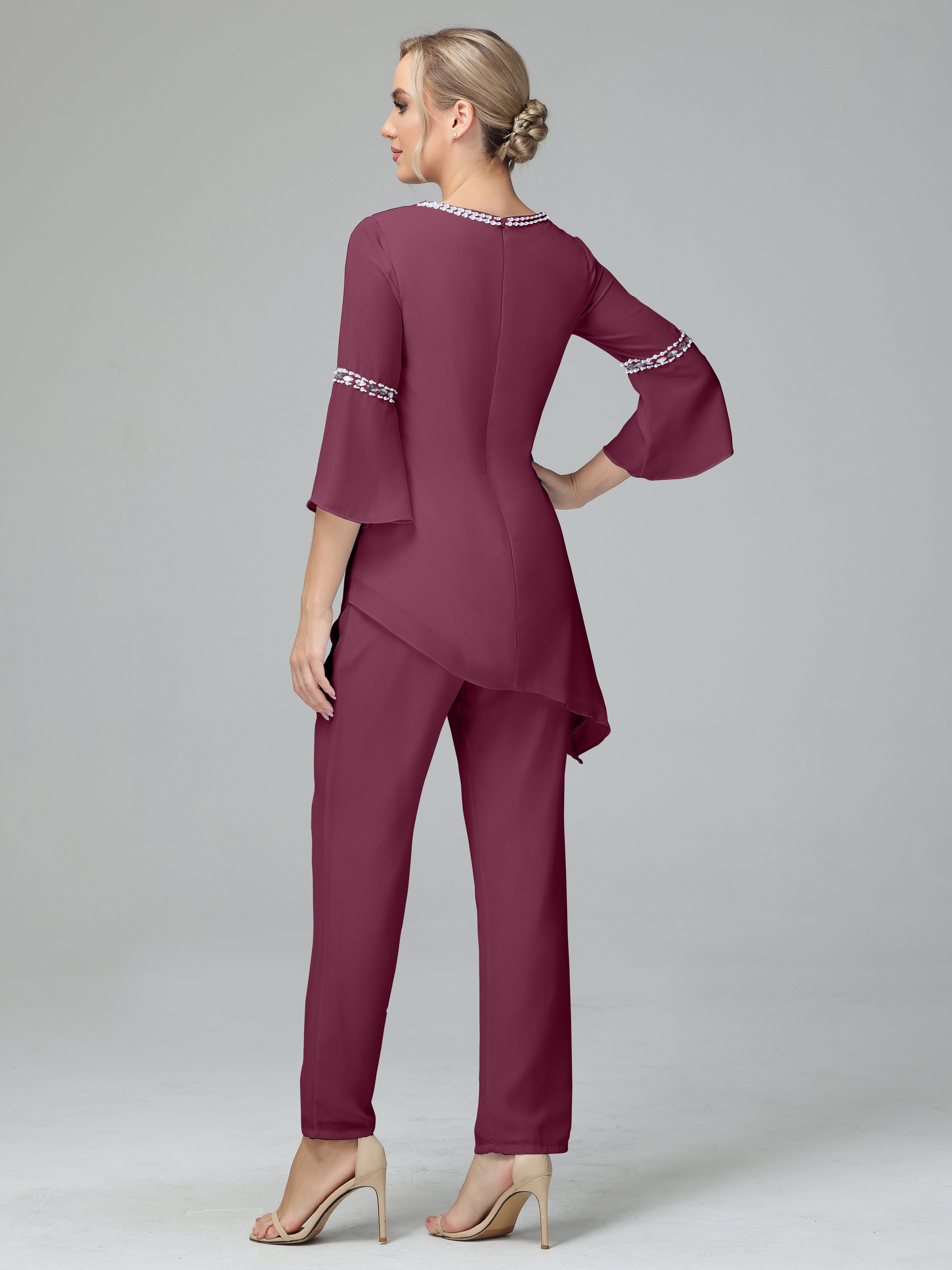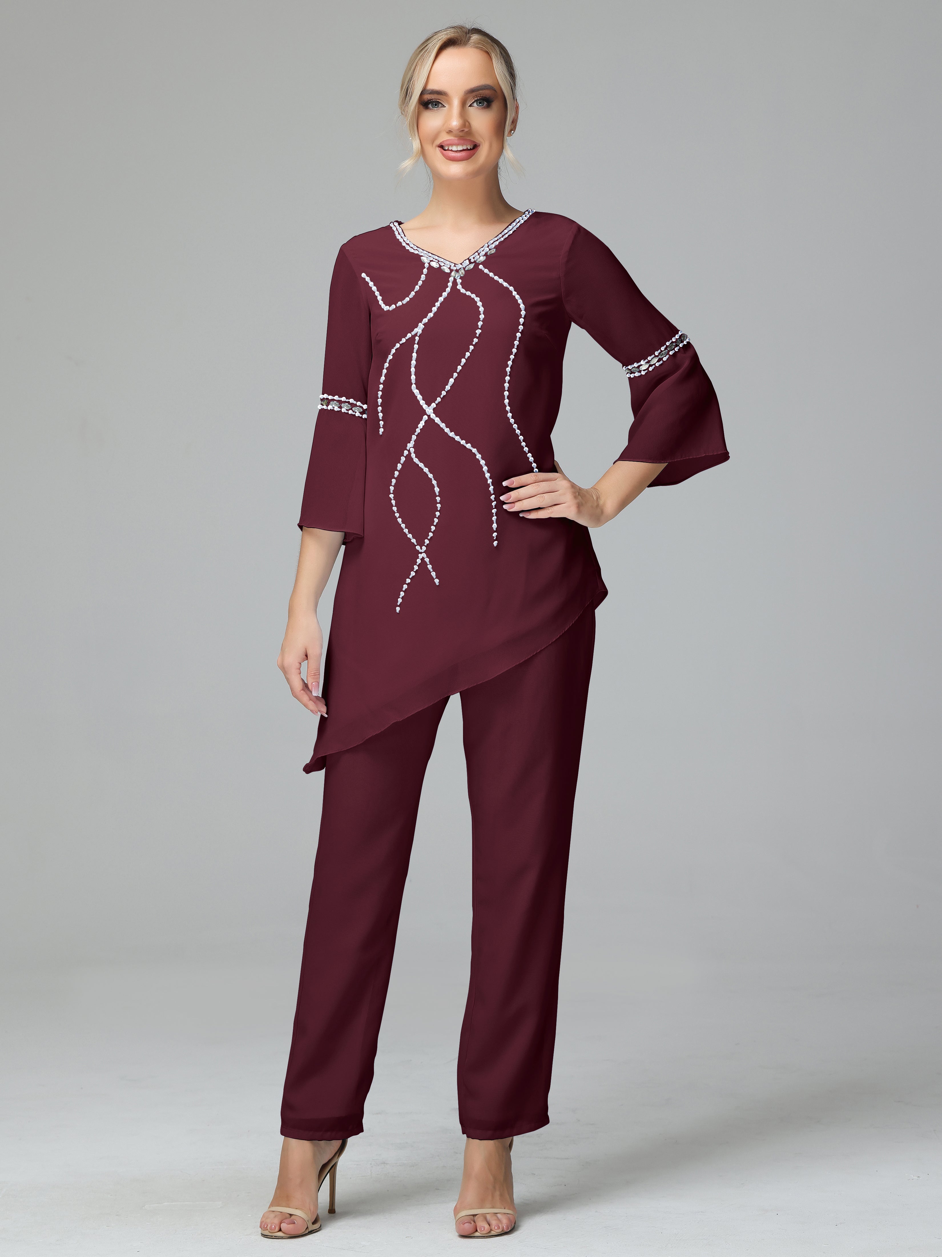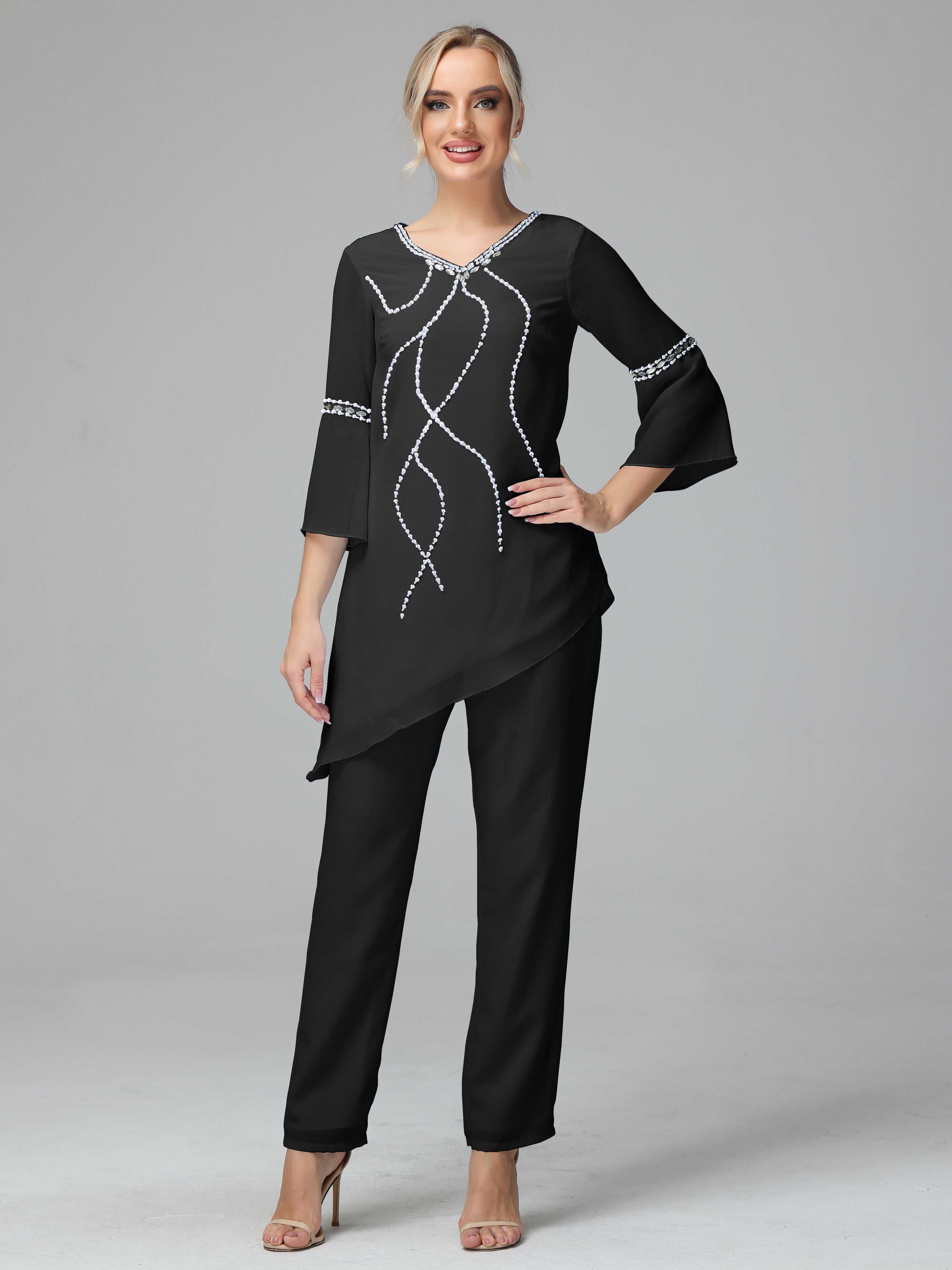 V-Neck Chiffon Mother of the Bride Dress With Beading