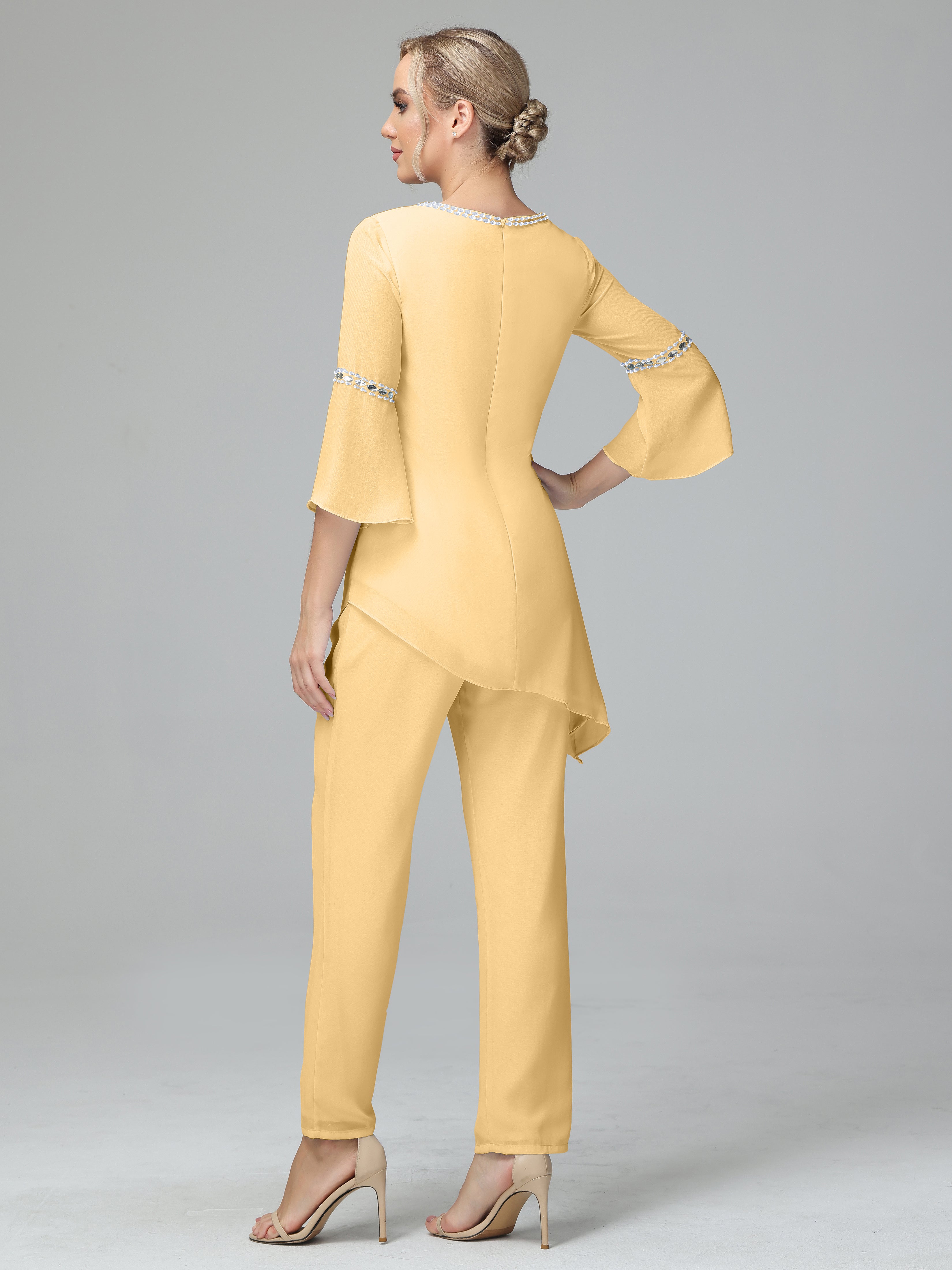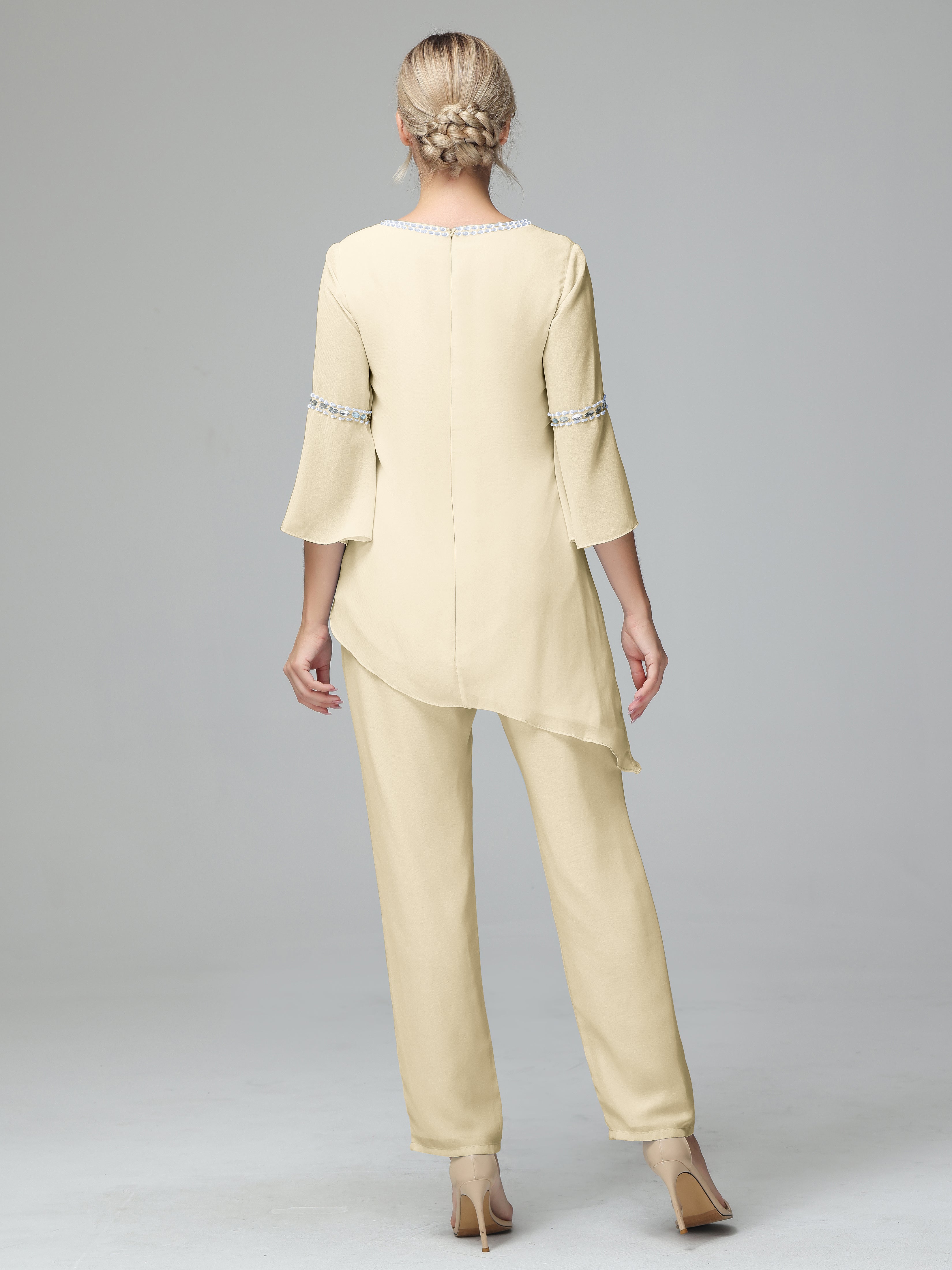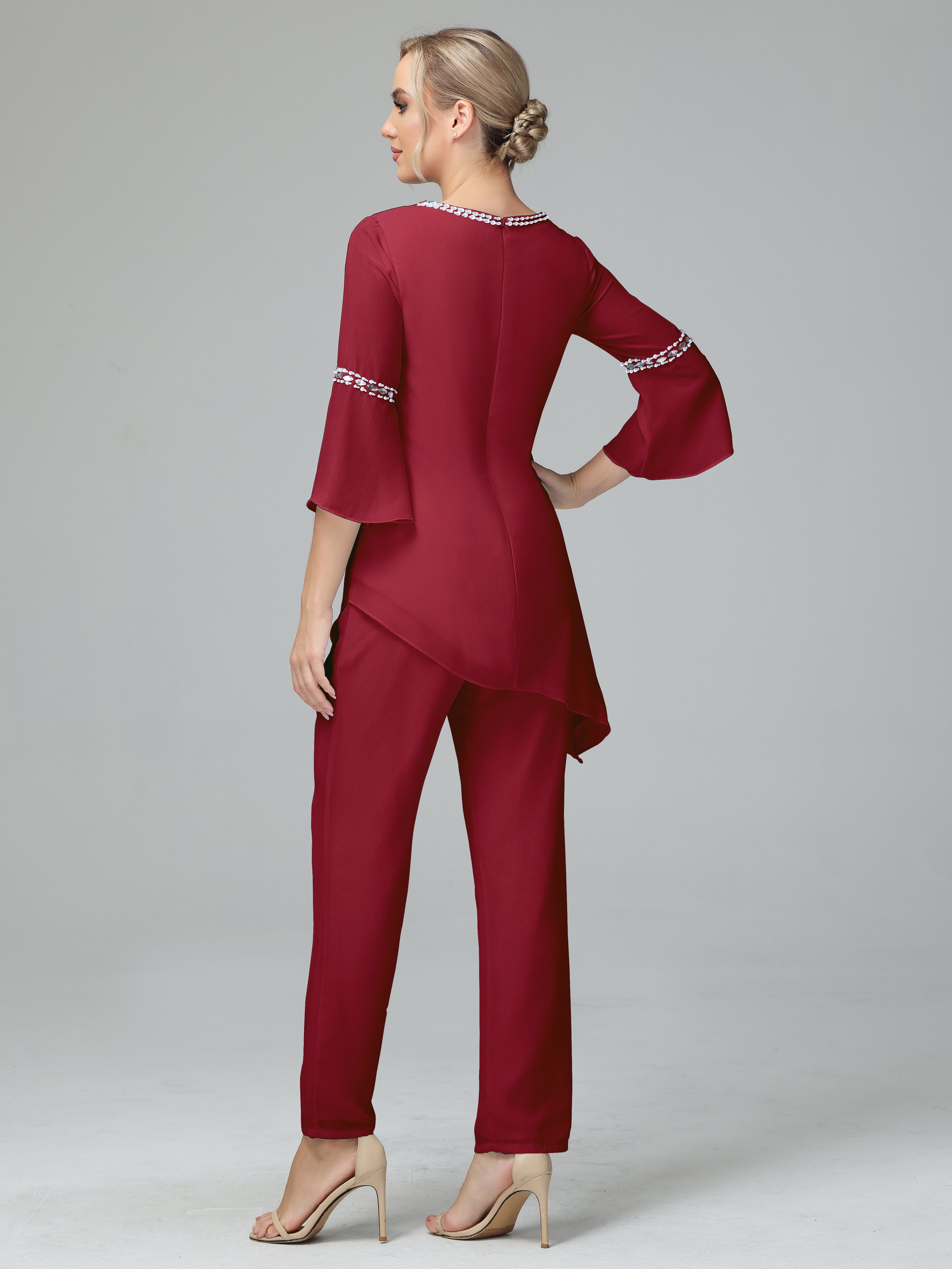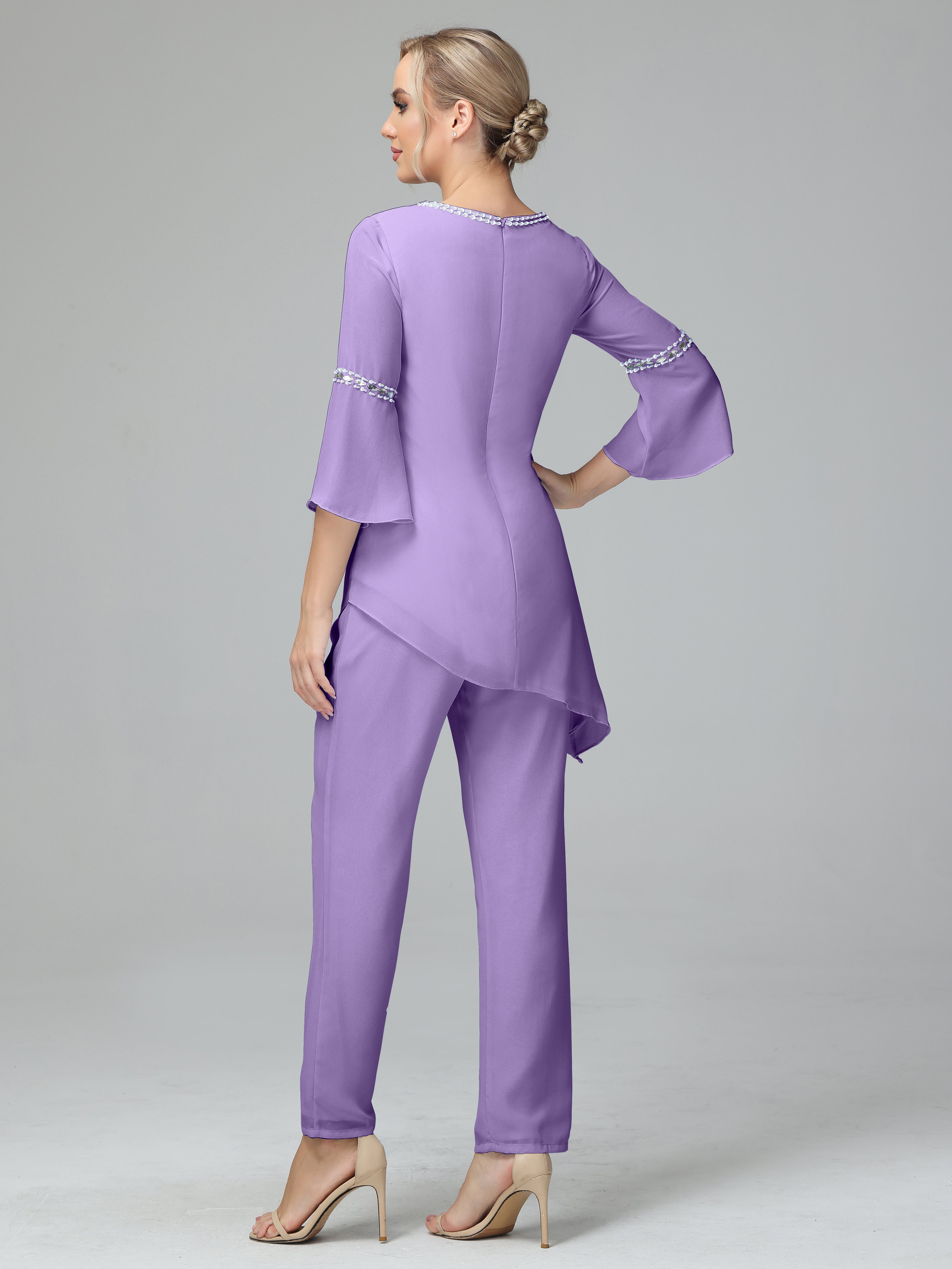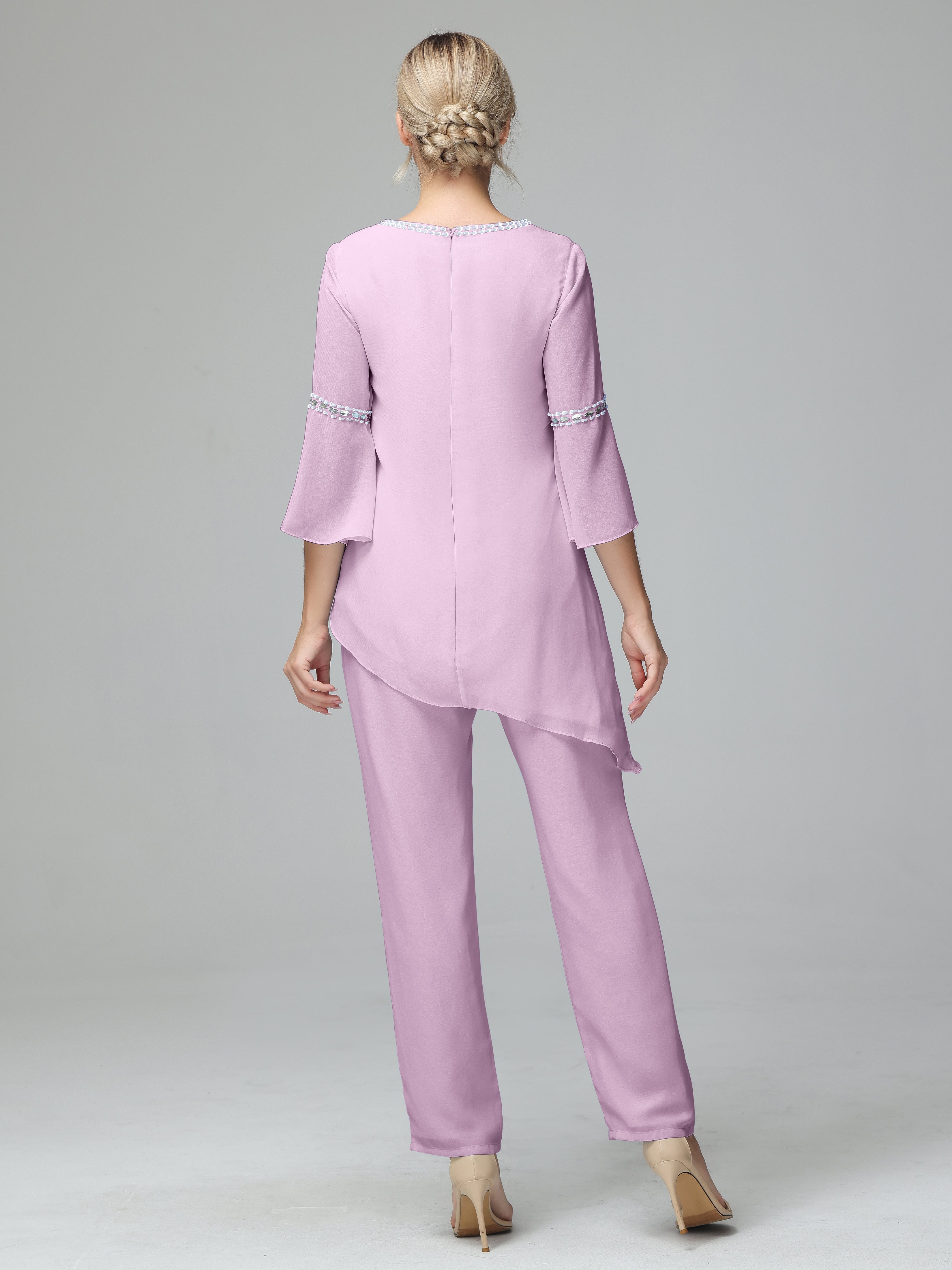 V-Neck Chiffon Mother of the Bride Dress With Beading