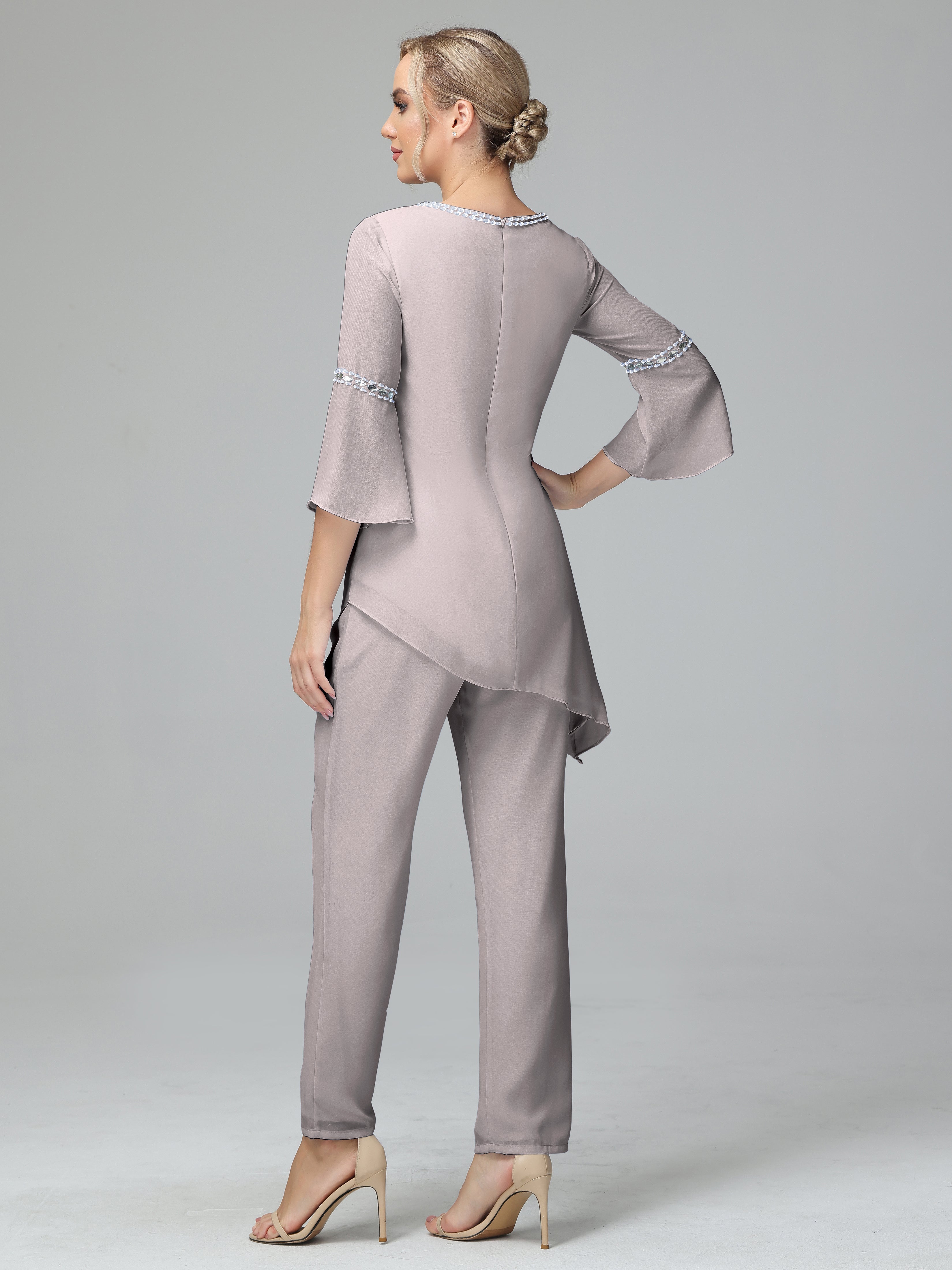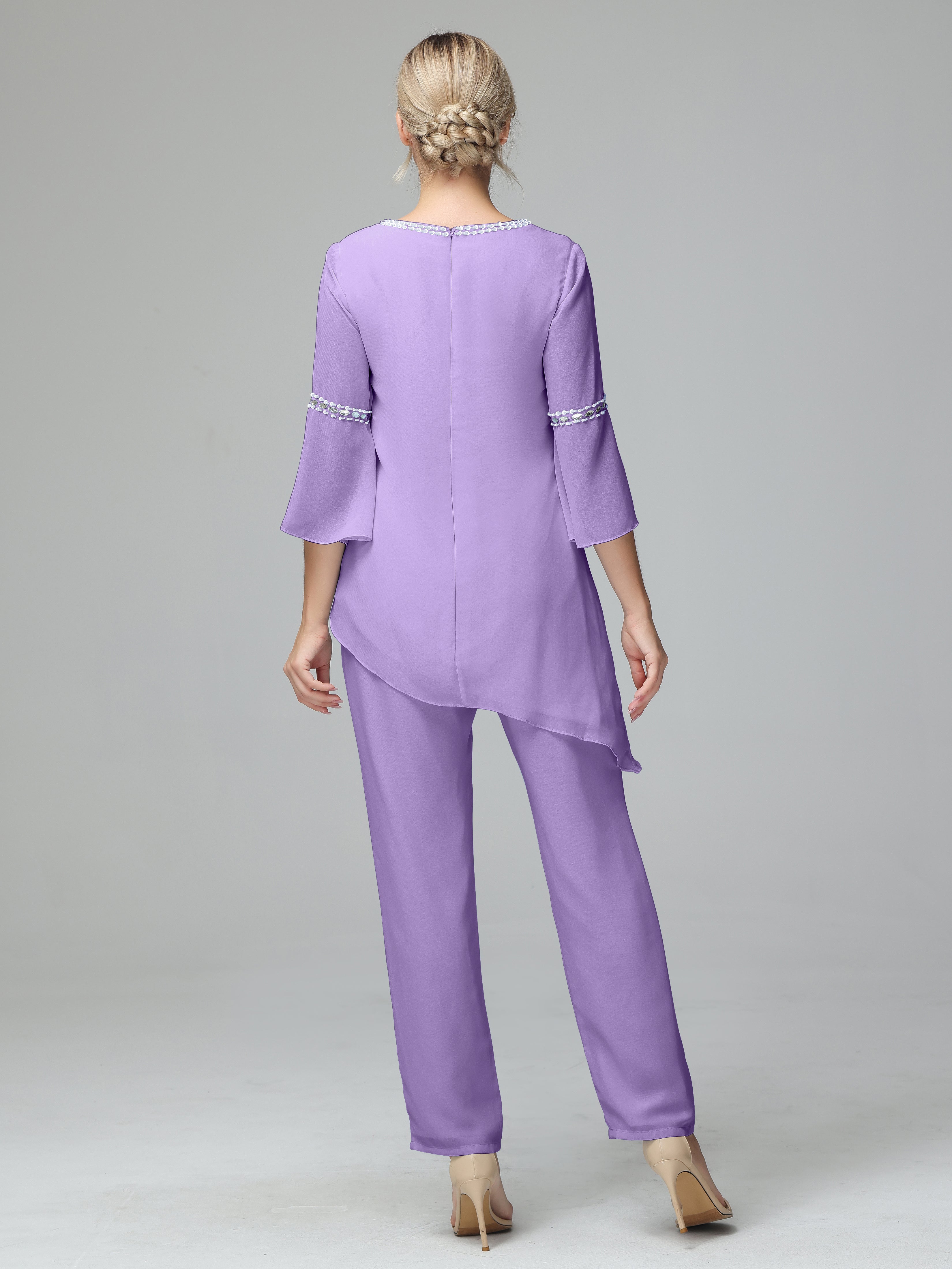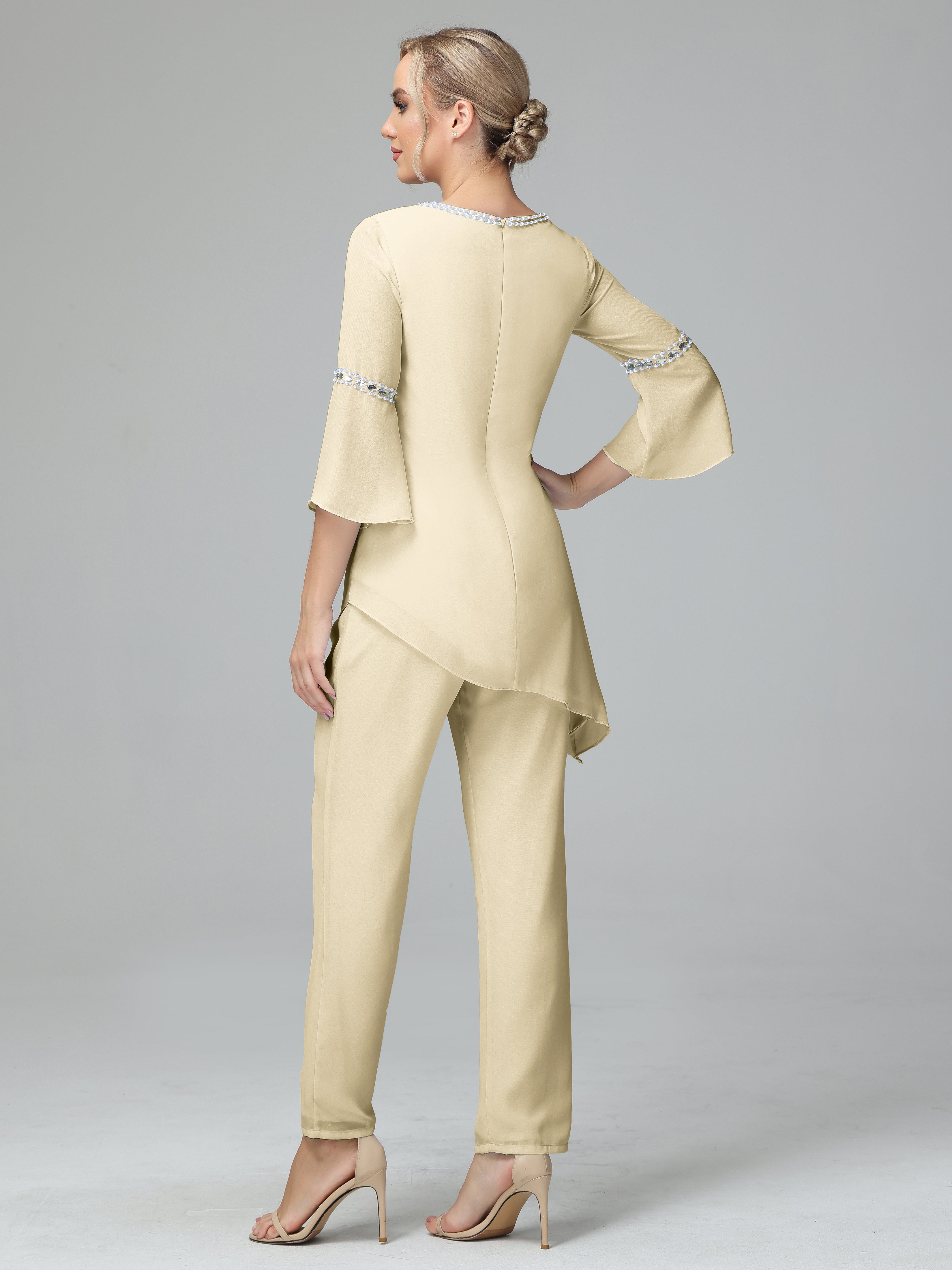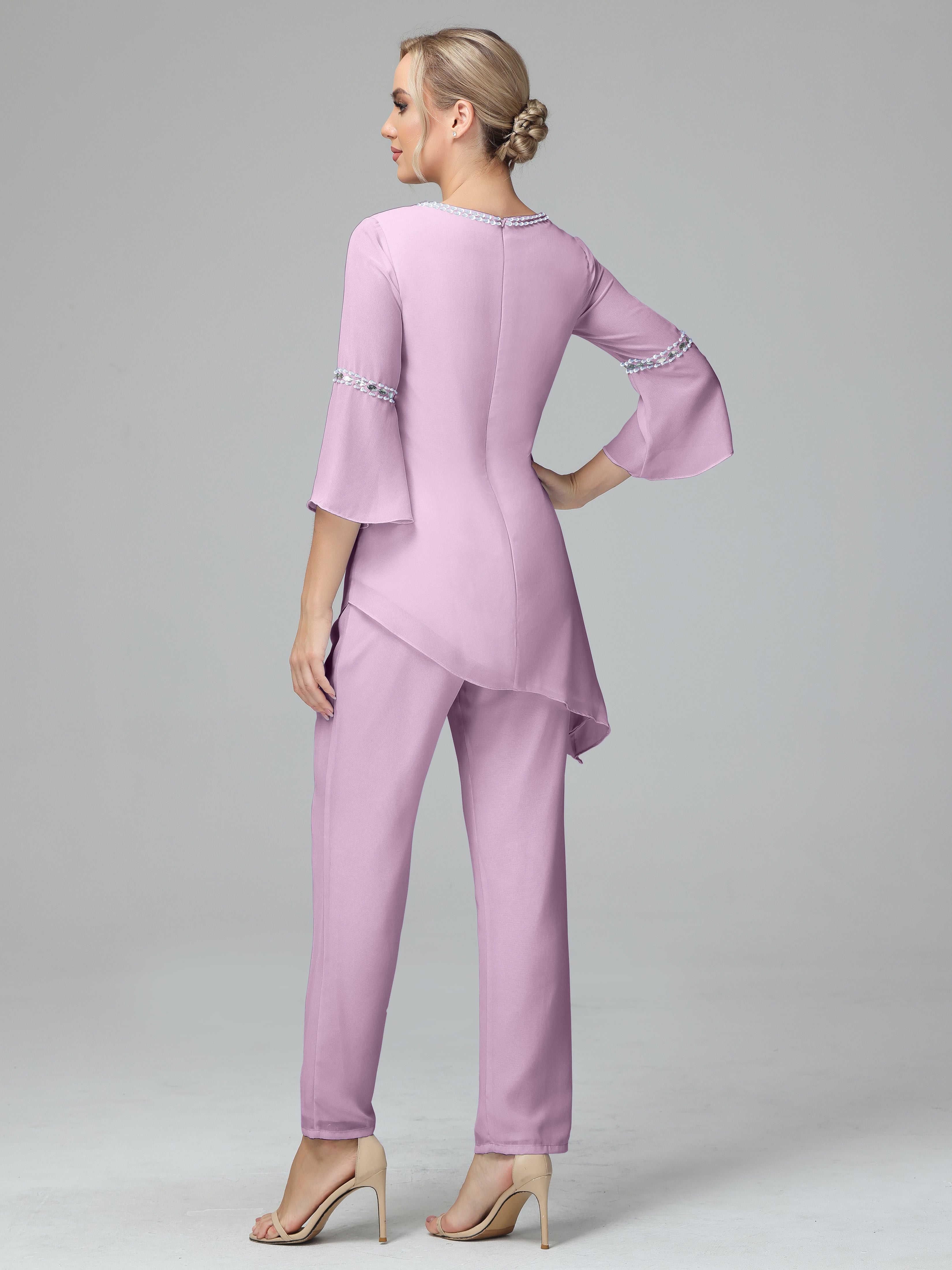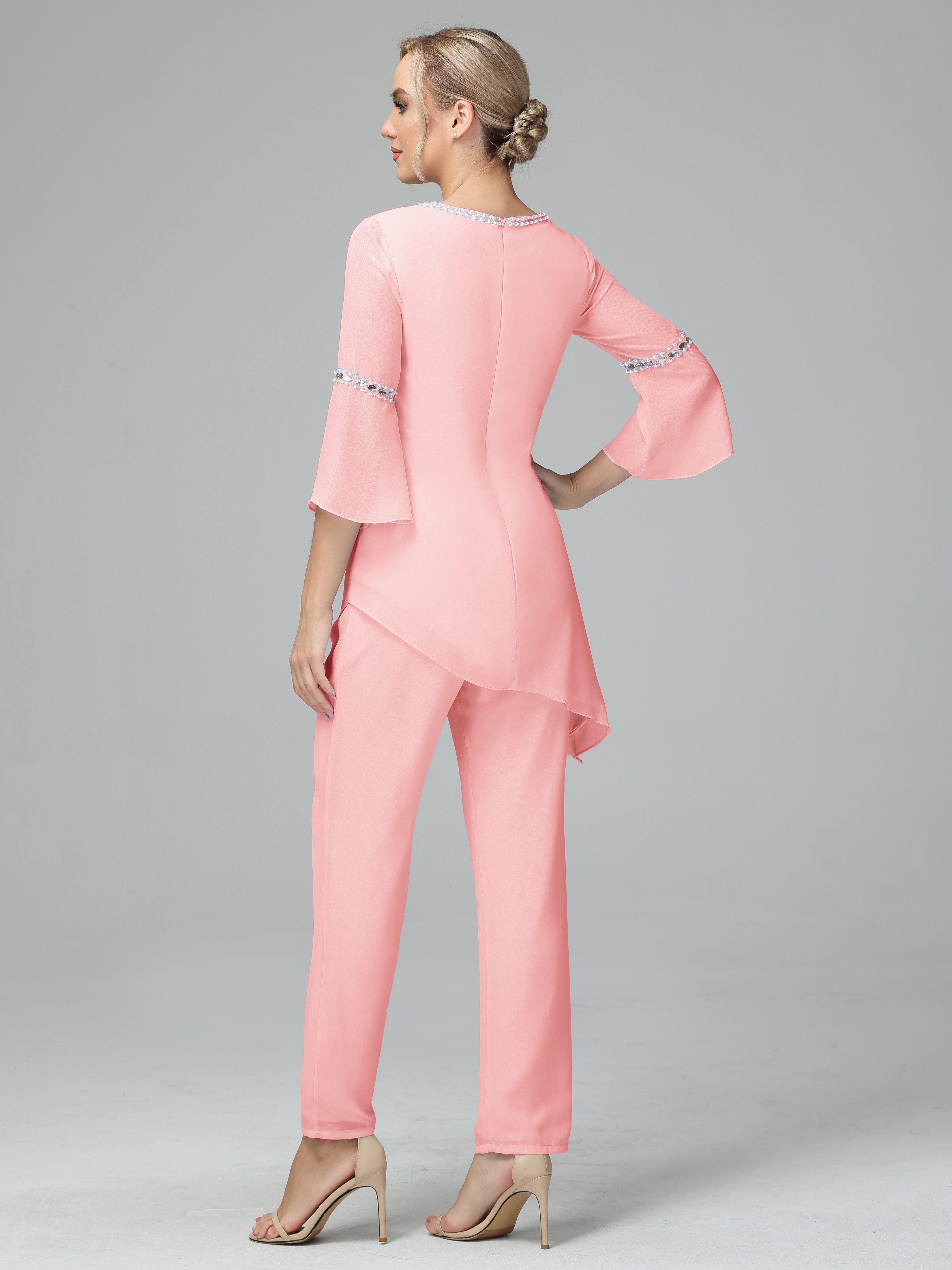 V-Neck Chiffon Mother of the Bride Dress With Beading