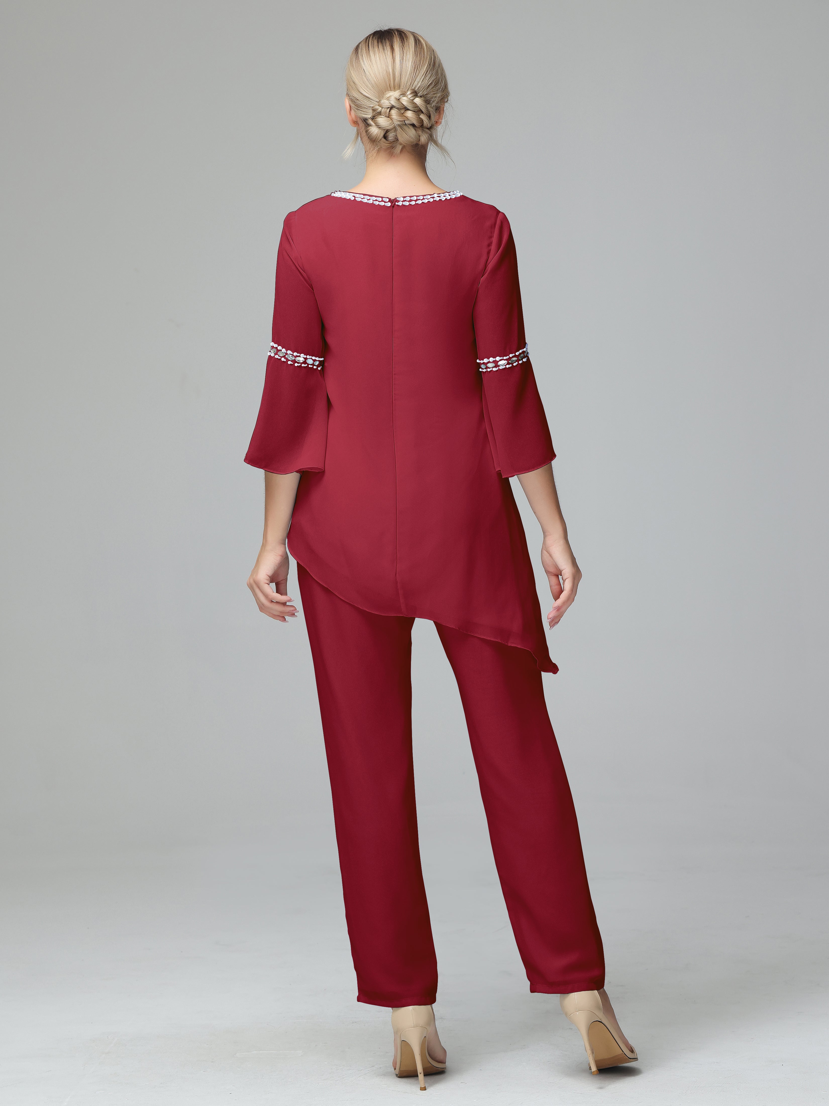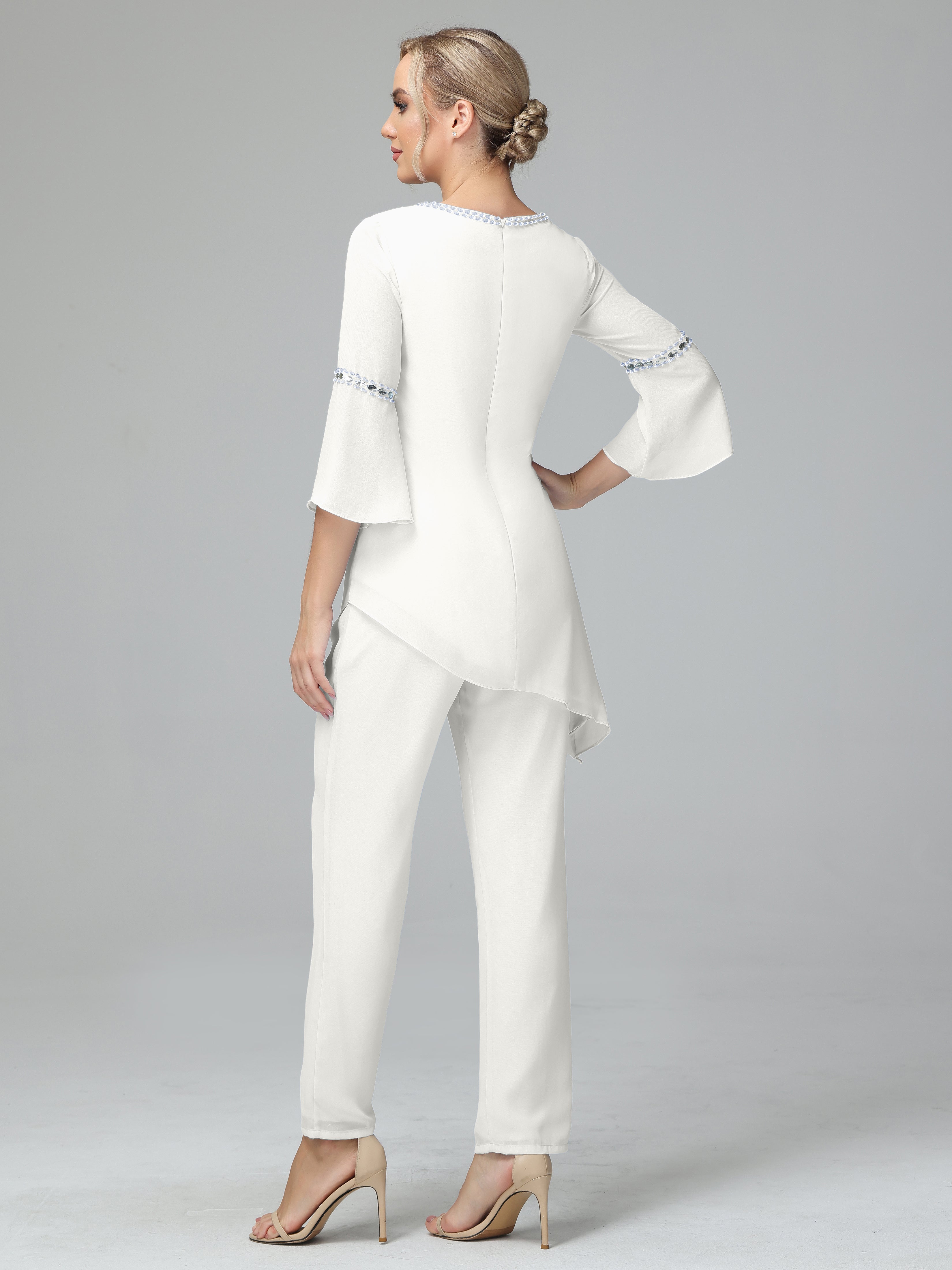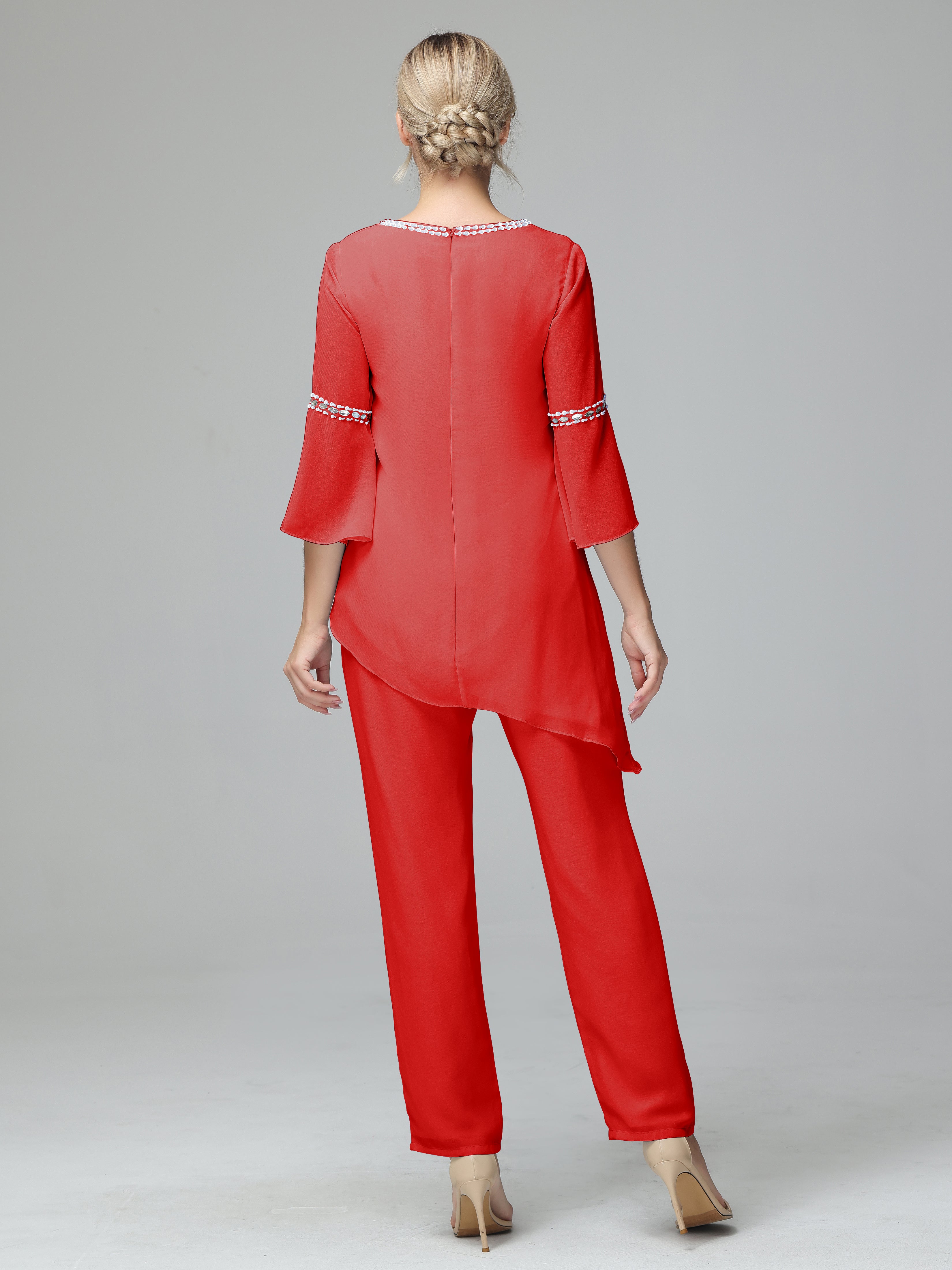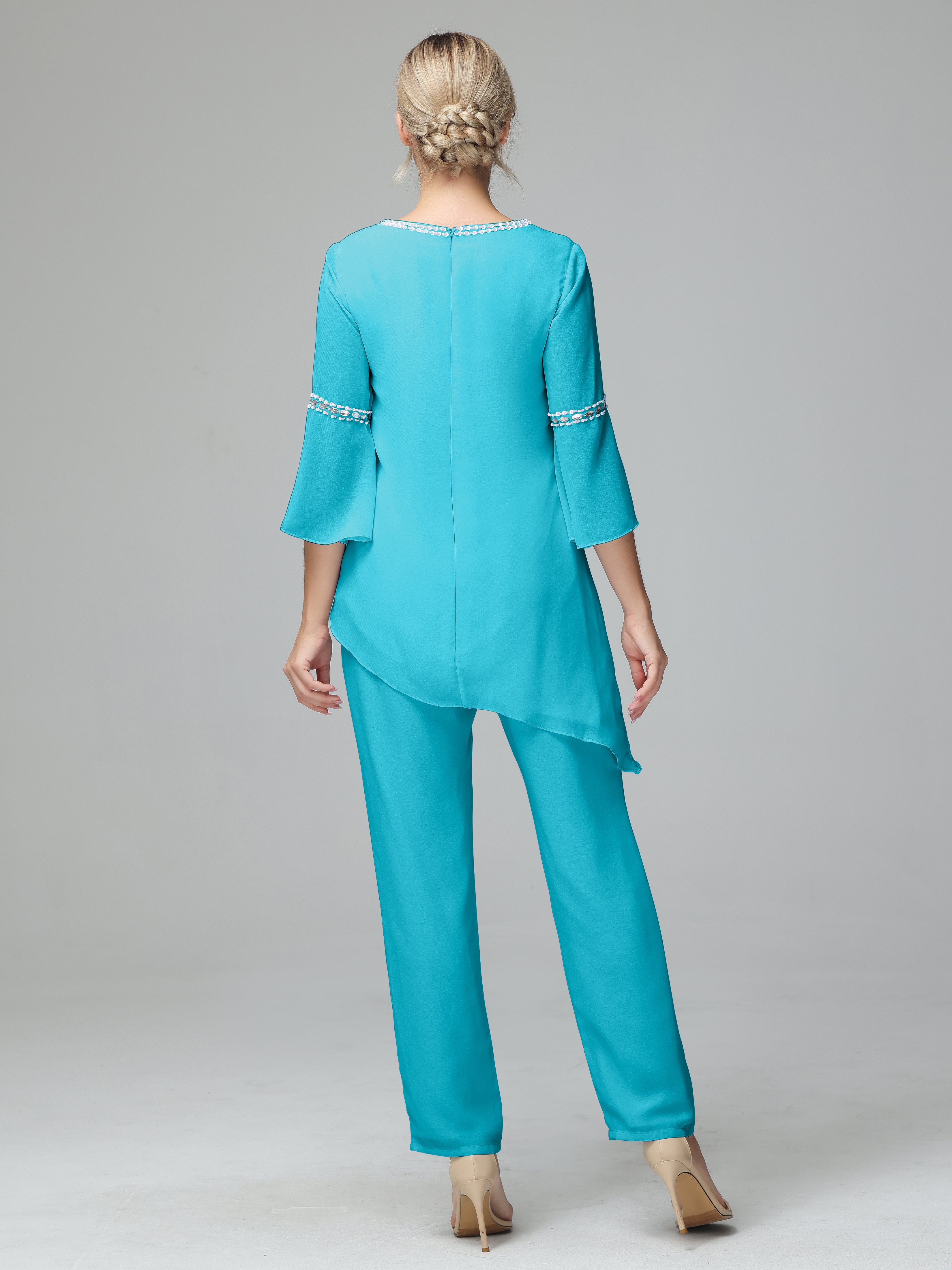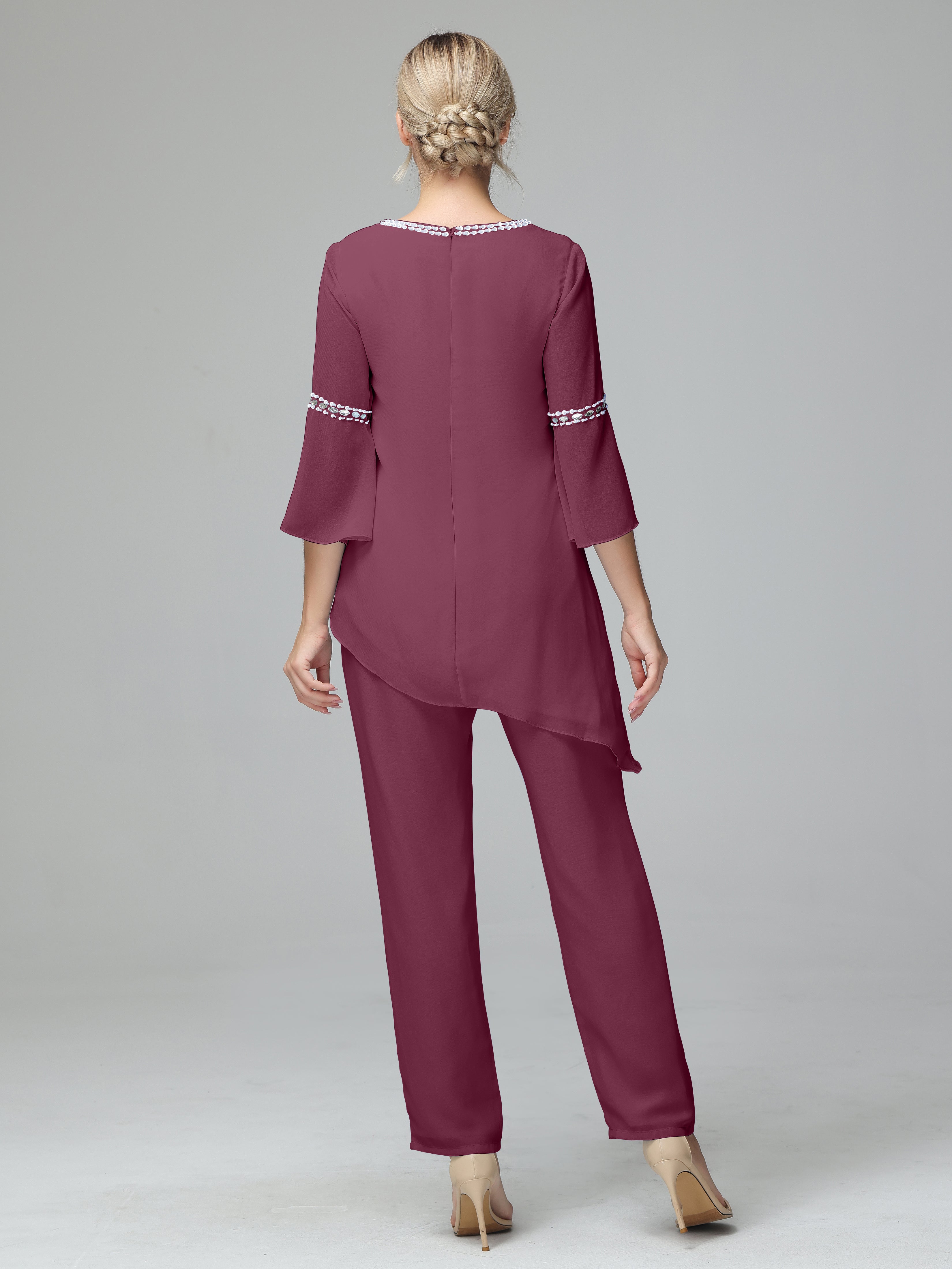V-Neck Chiffon Mother of the Bride Dress With Beading