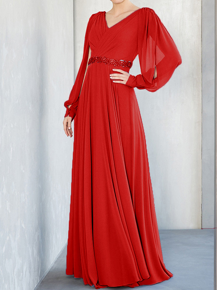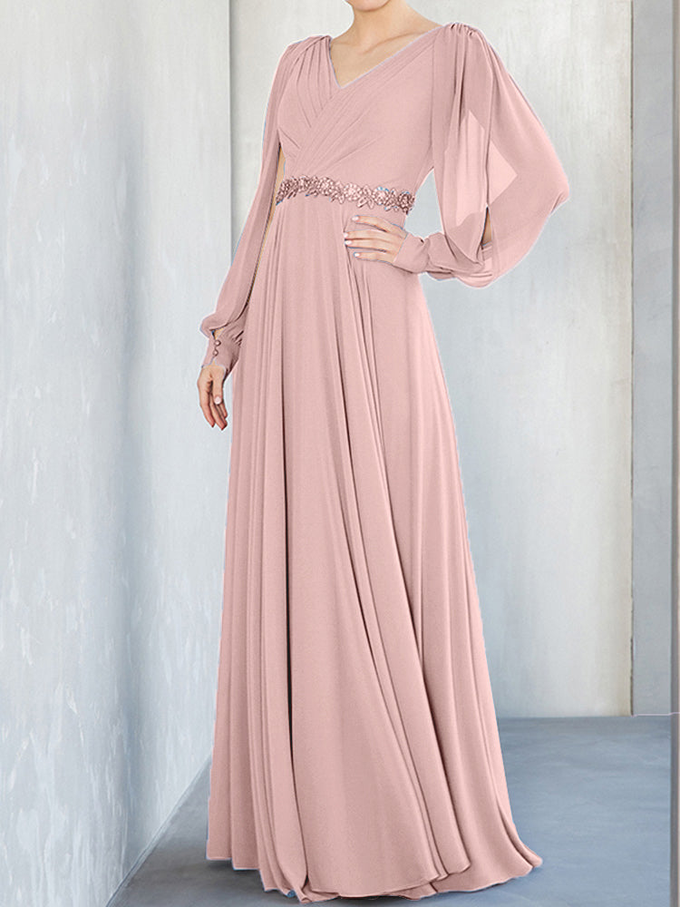 V-Neck Sleeves Chiffon Mother of the Bride Dresses